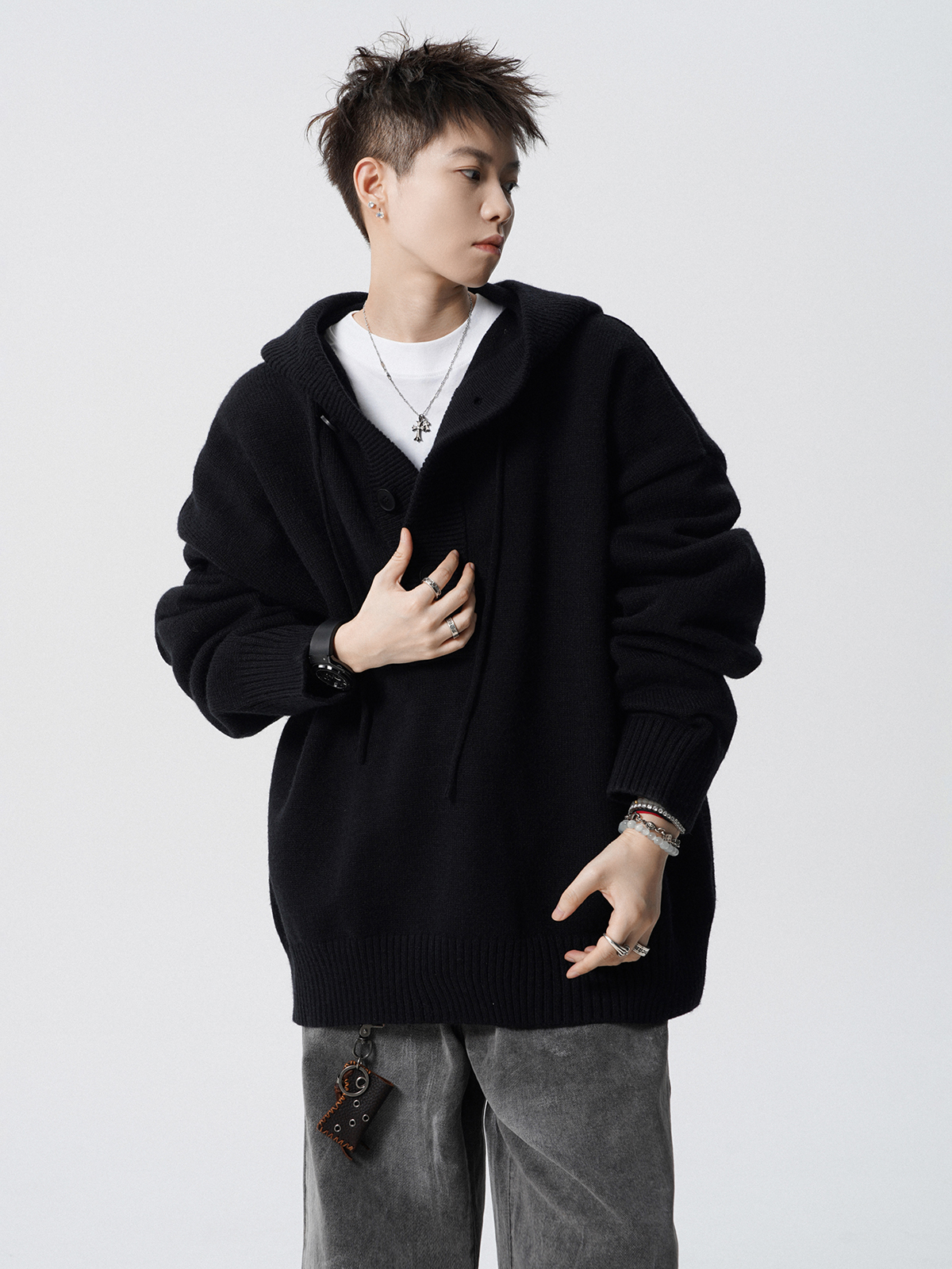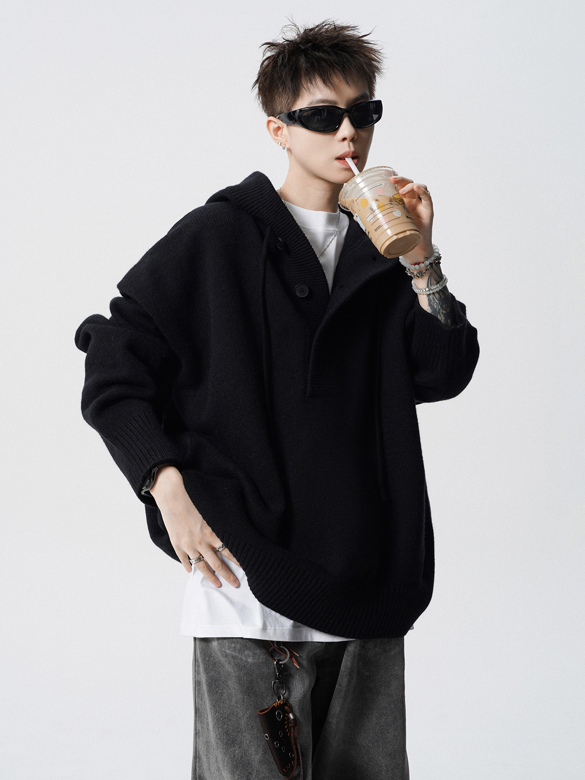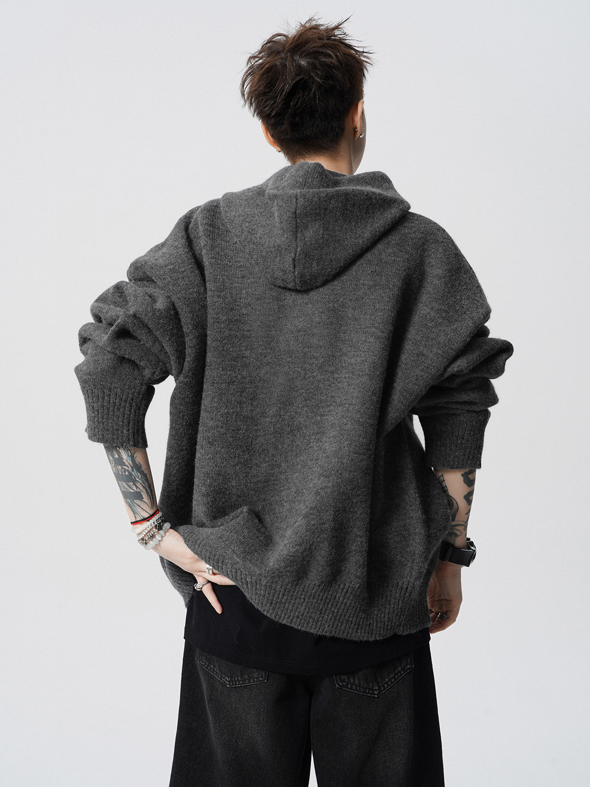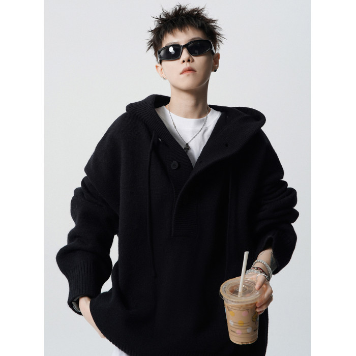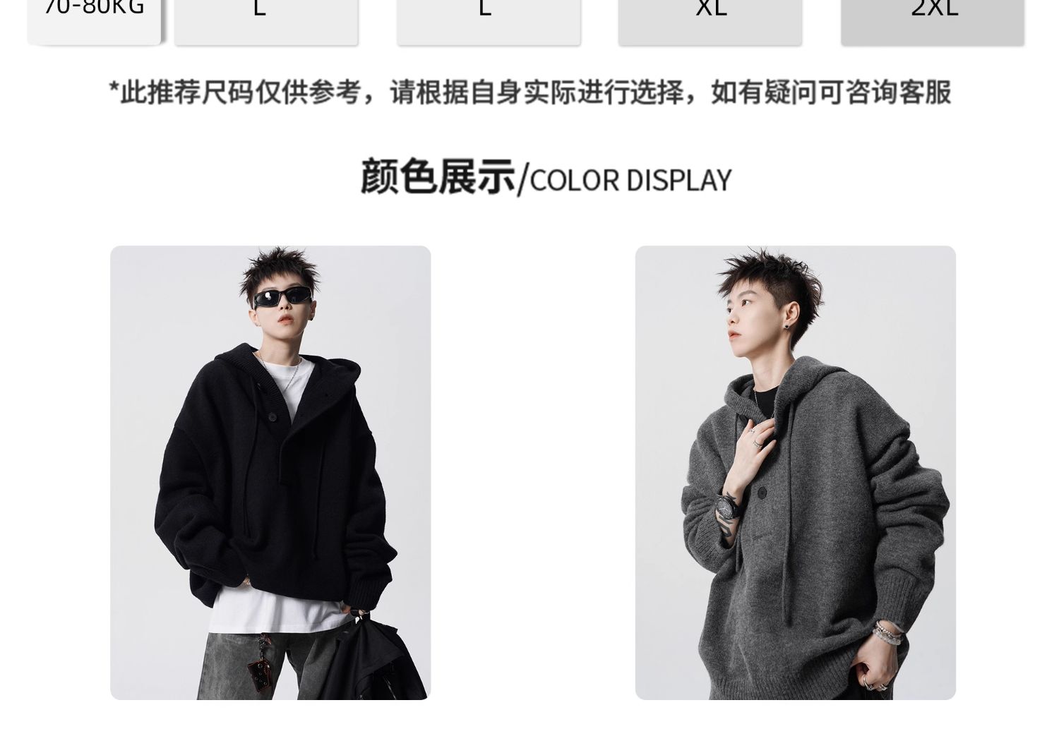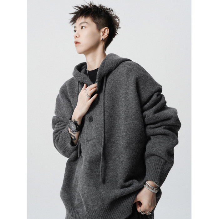 潮牌慵懶風針織衫男冬季美式高級感cleanfit毛衣高街休閒連帽外套