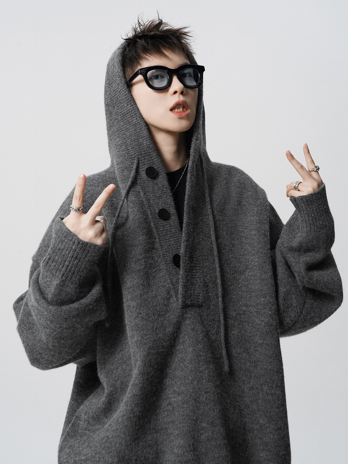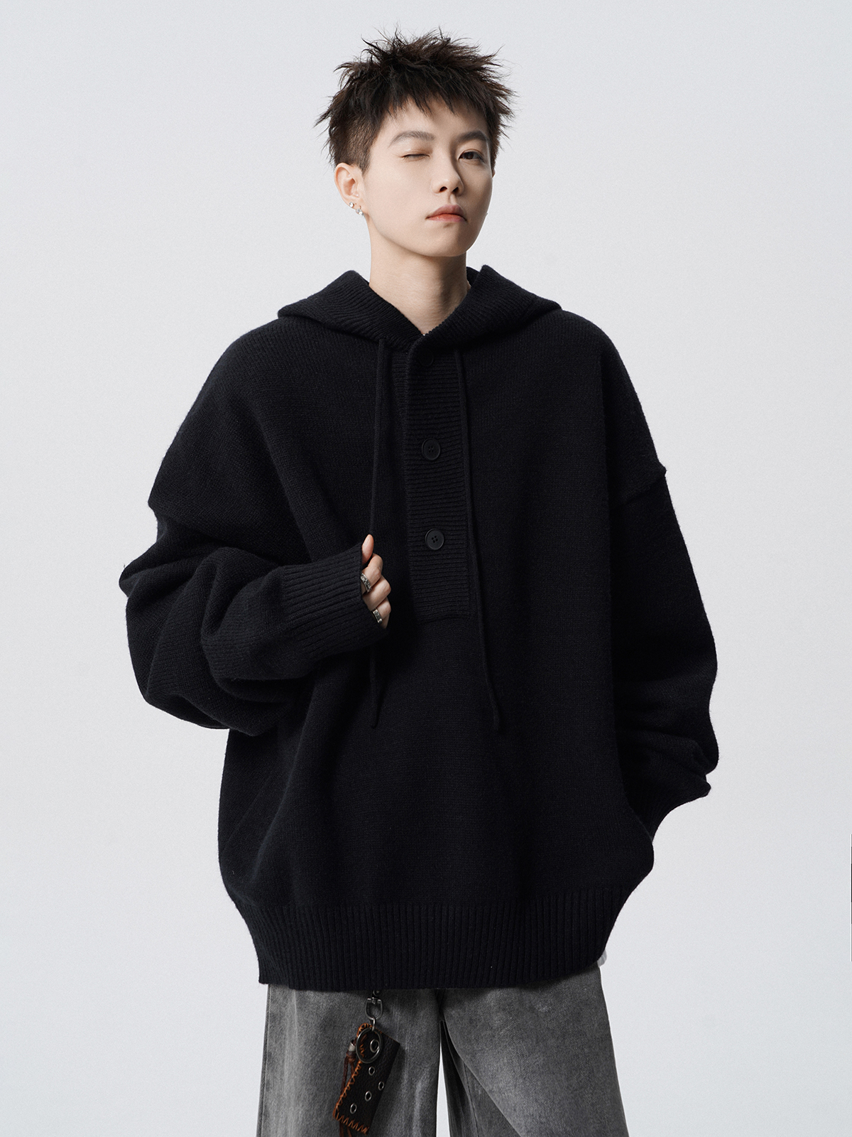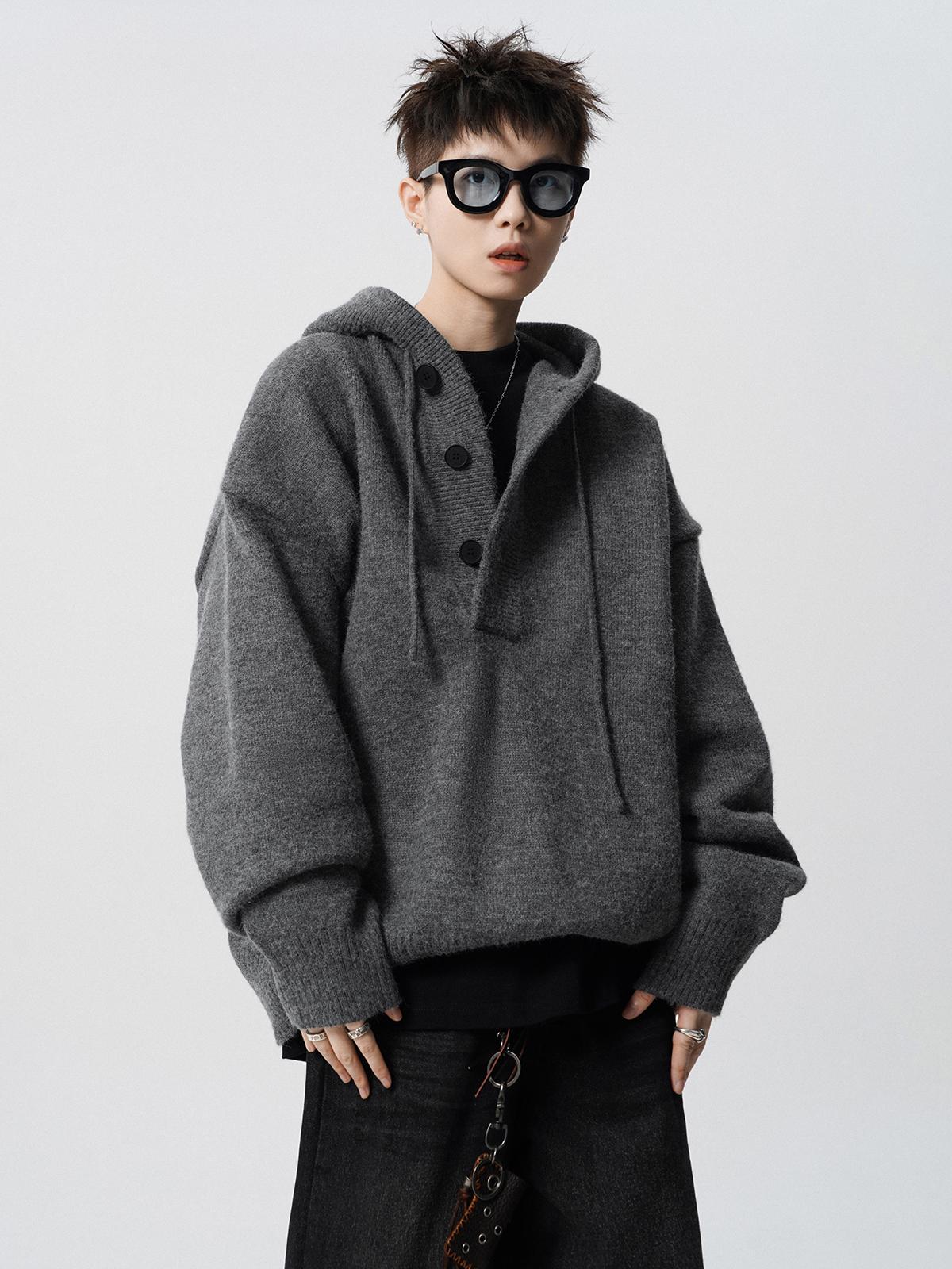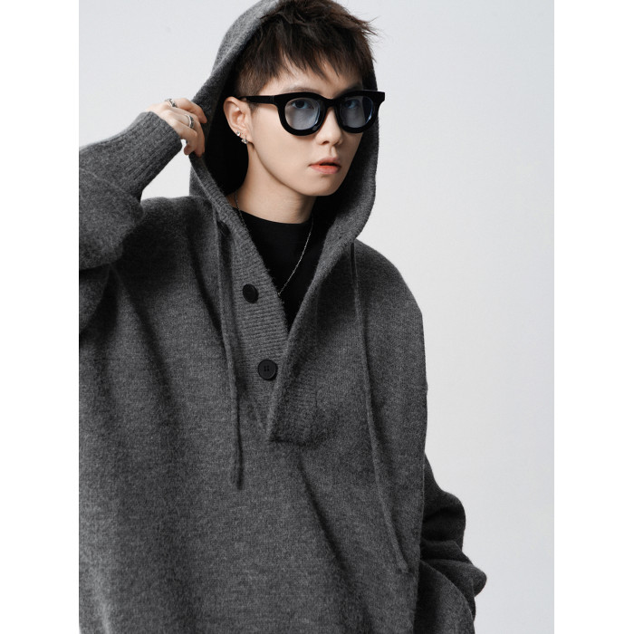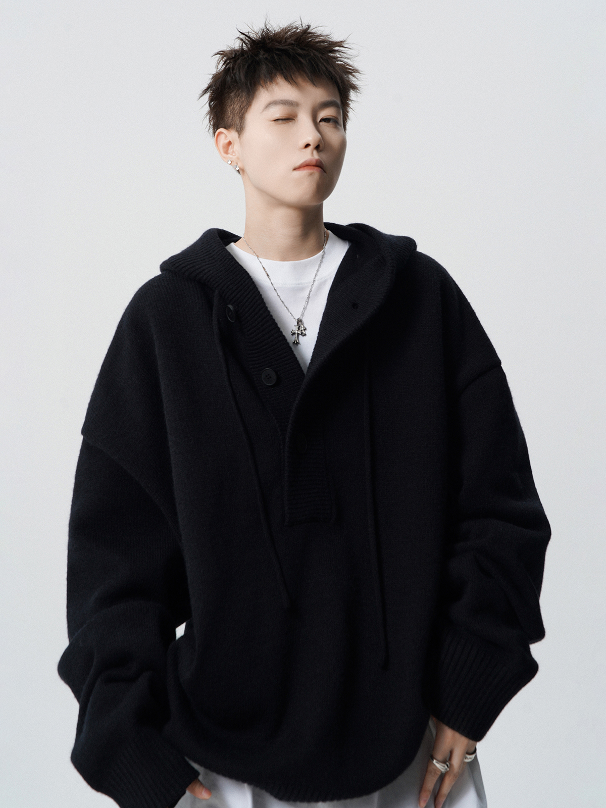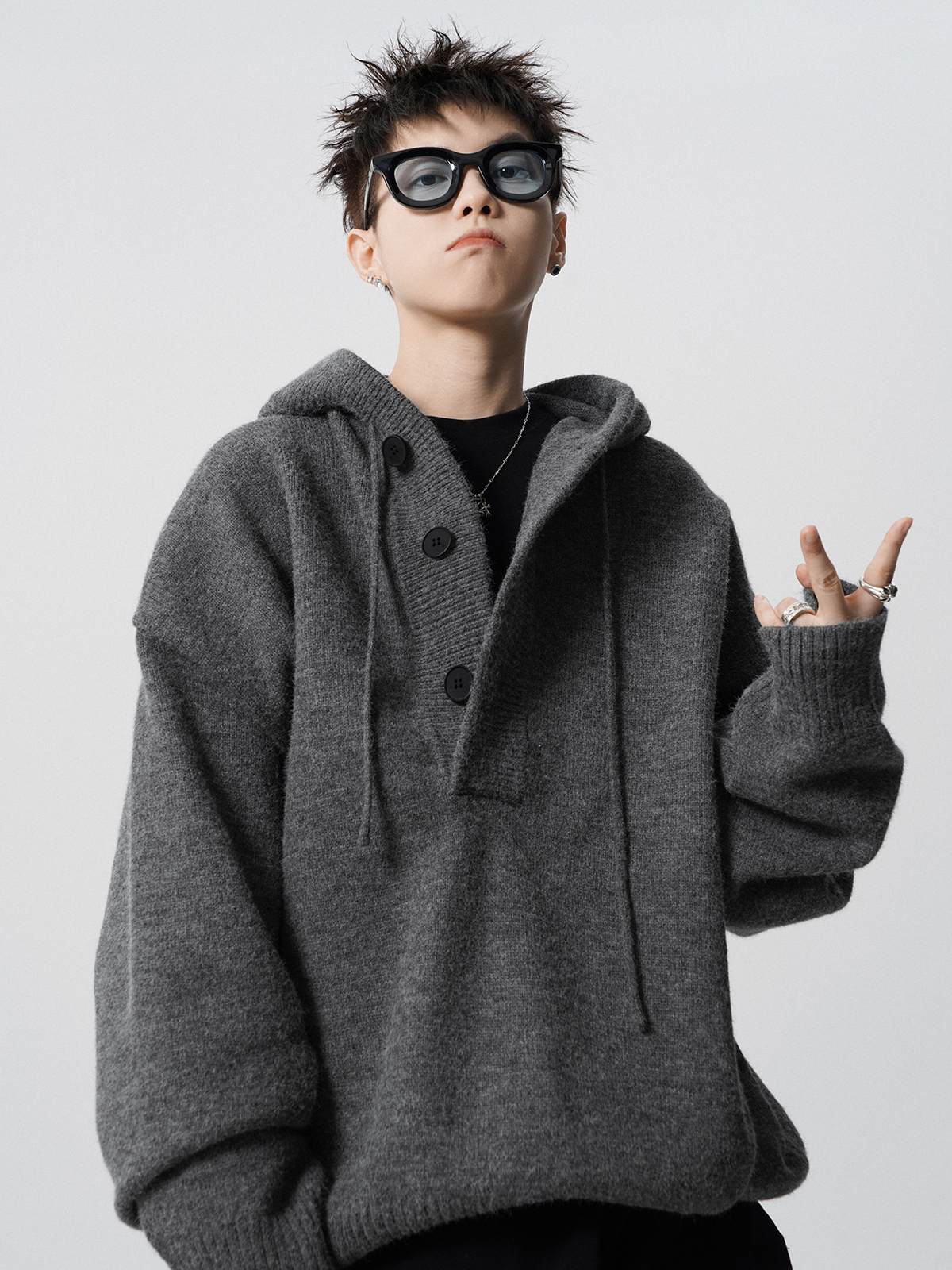 潮牌慵懶風針織衫男冬季美式高級感cleanfit毛衣高街休閒連帽外套