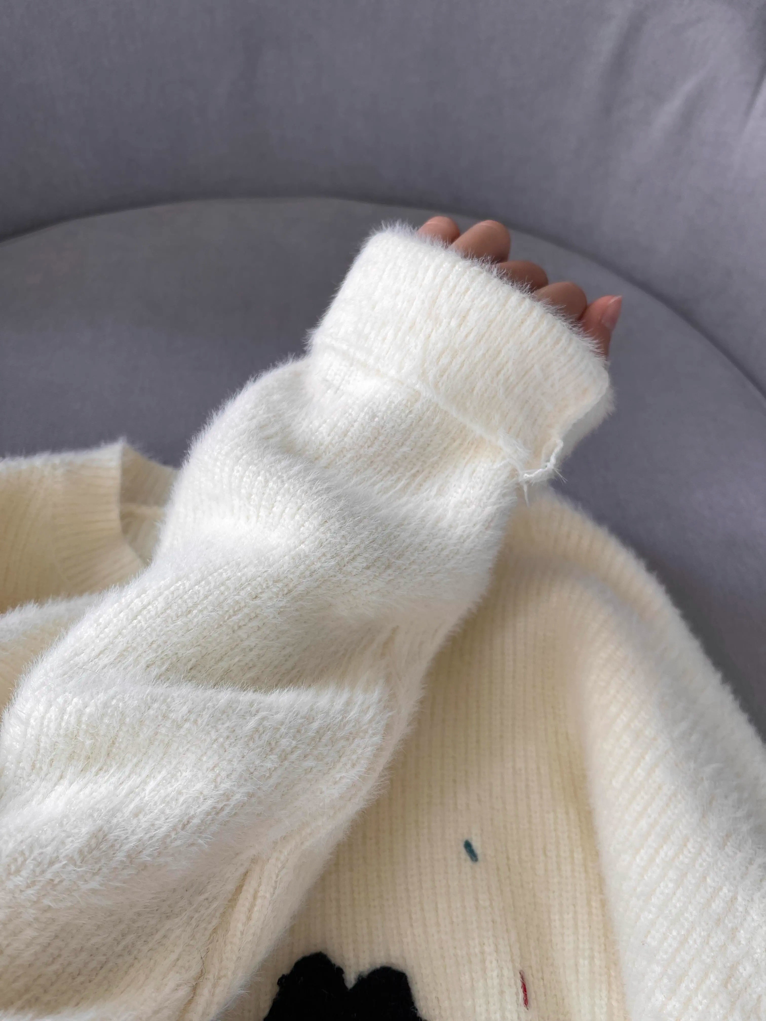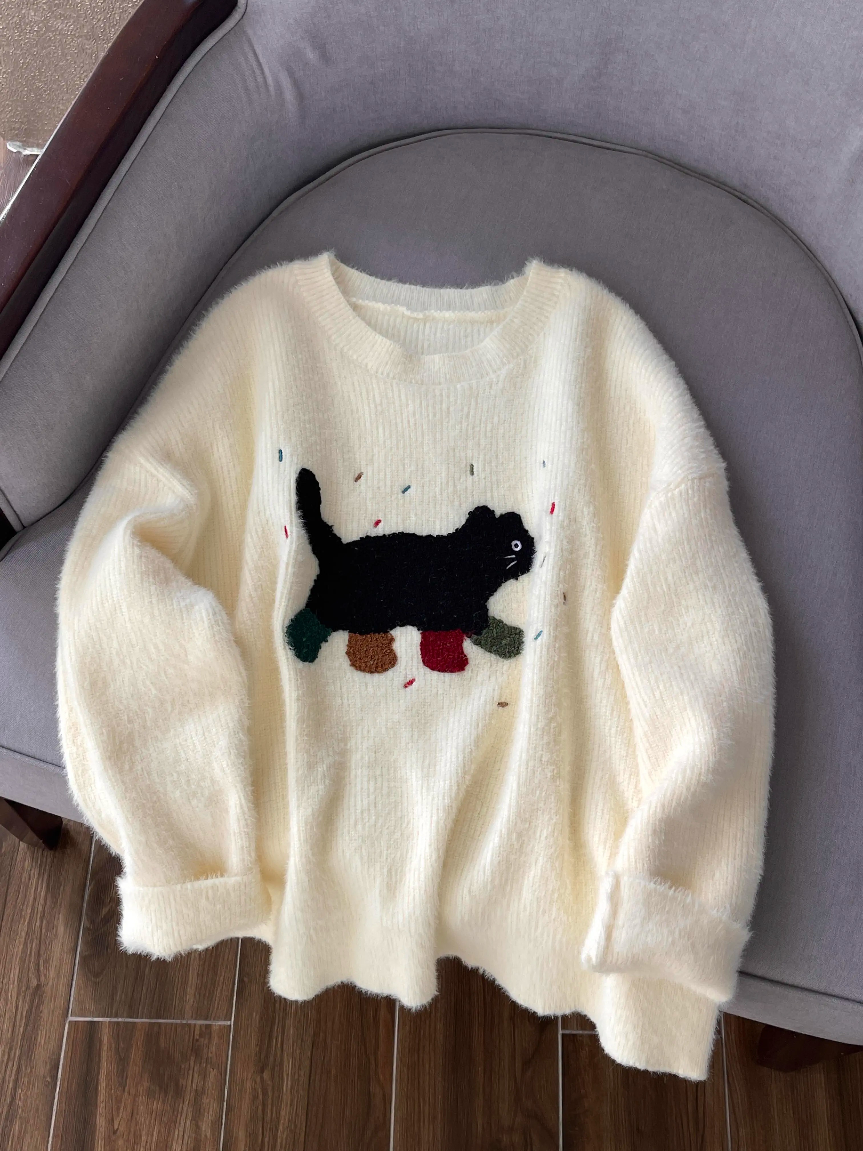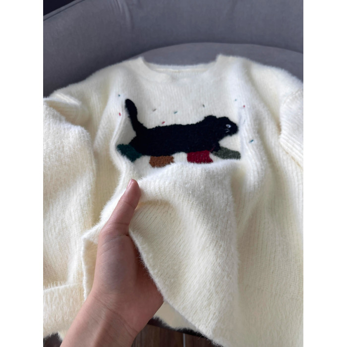 聖誕立體小貓刺綉毛衣2025秋冬季新款女短款針織衫寬松小個子上衣
