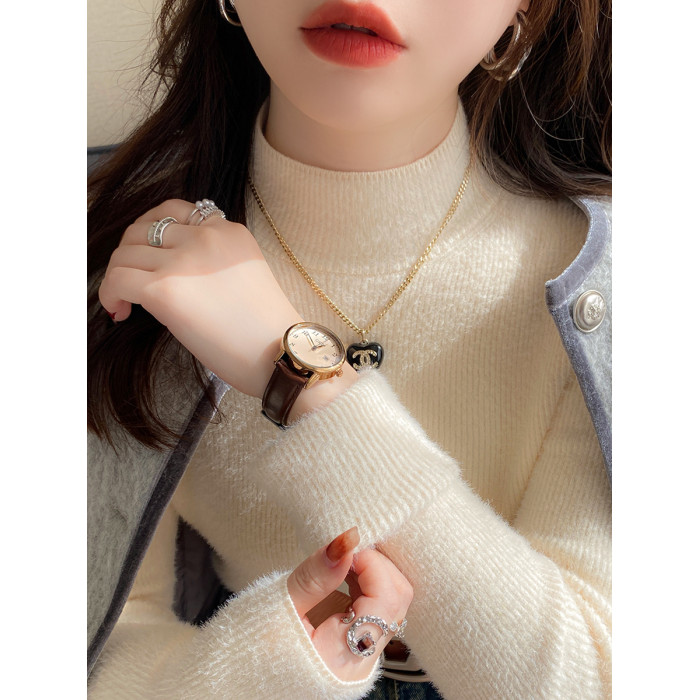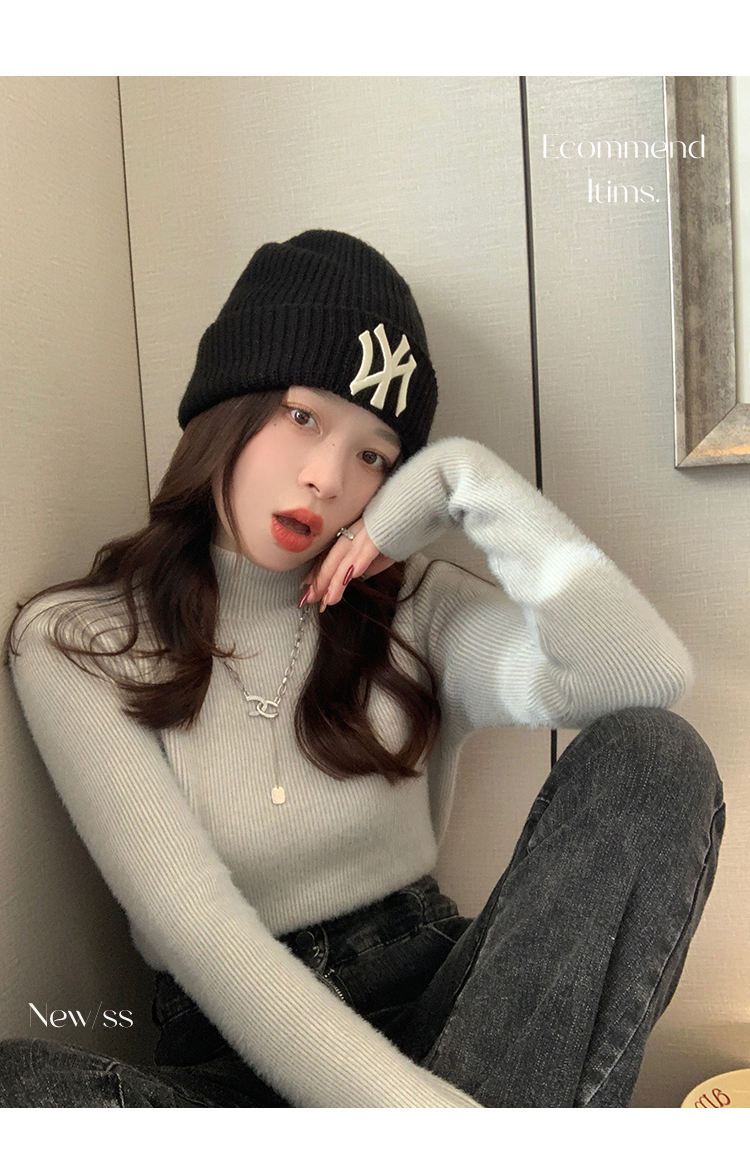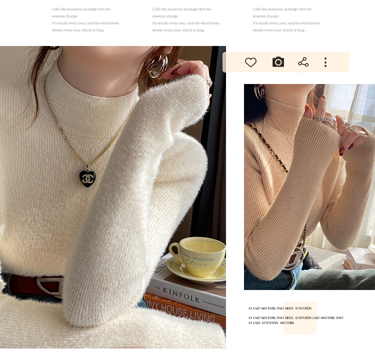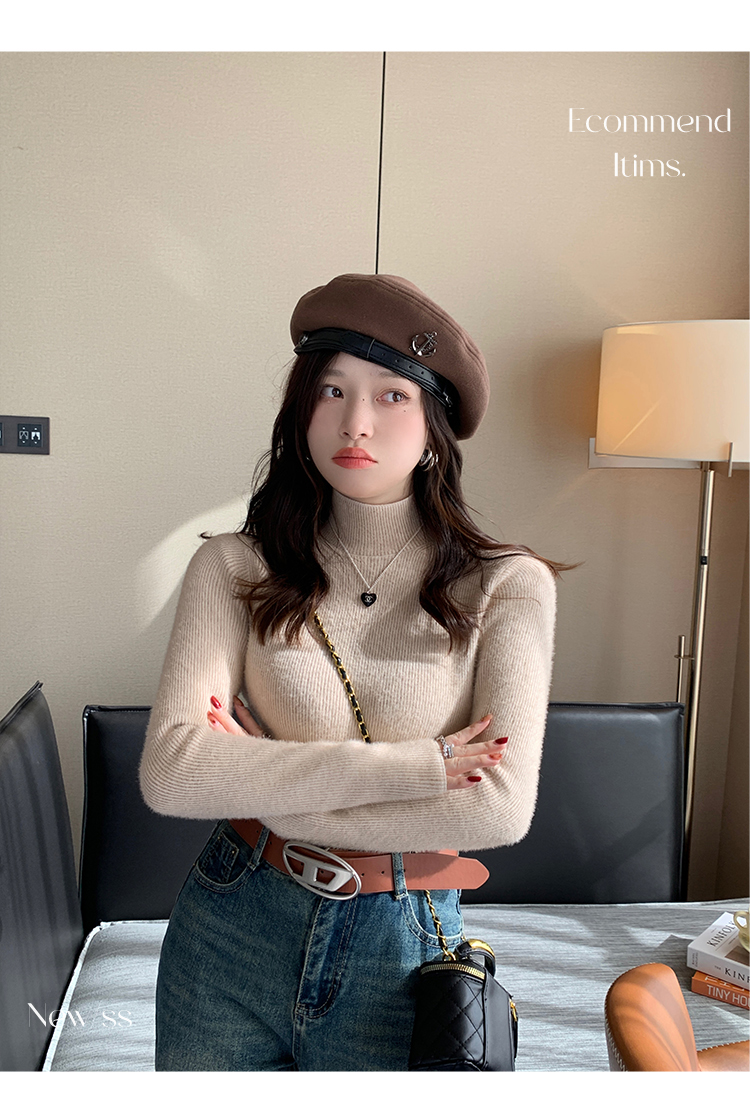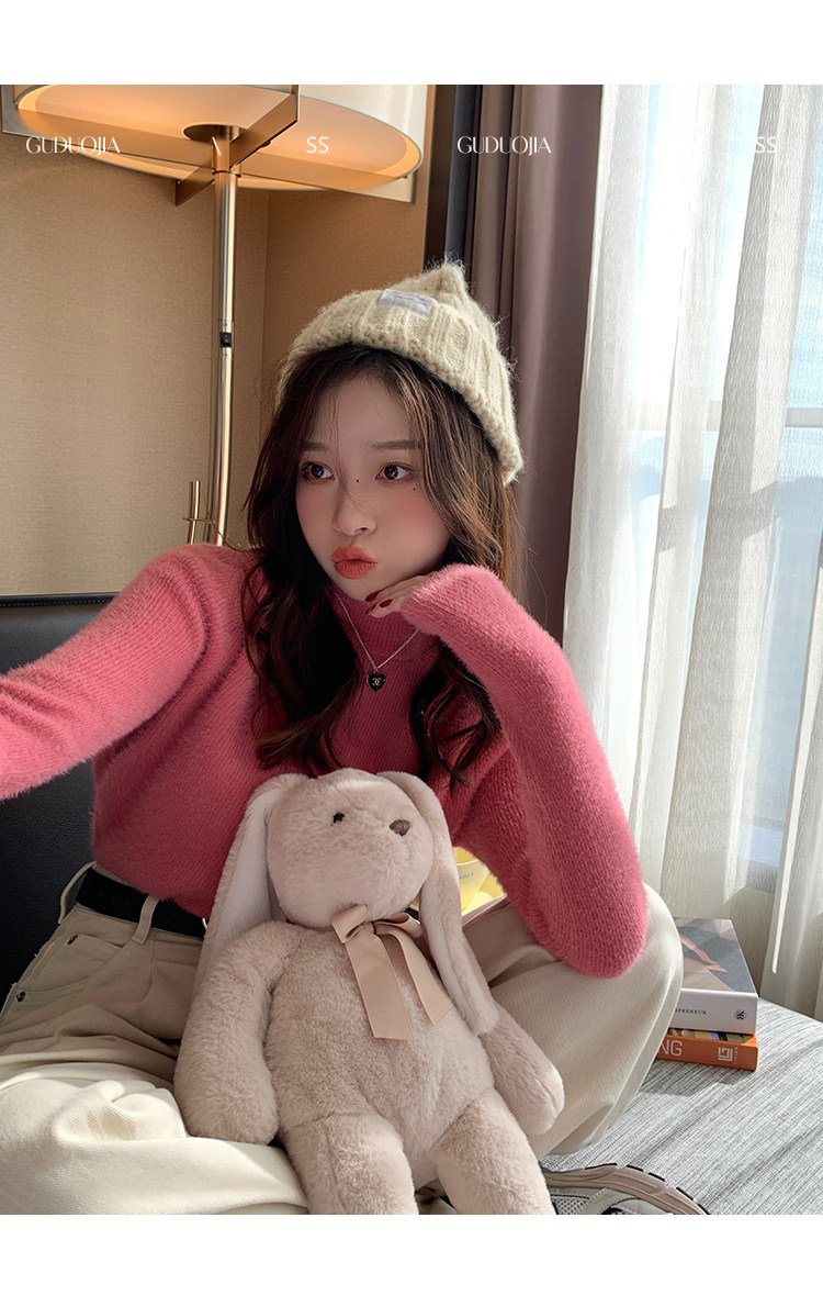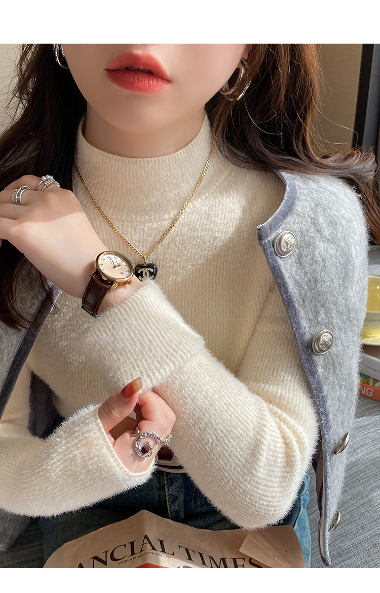 水貂絨毛衣女新款2025秋冬內搭加絨加厚打底衫半高領粉色針織上衣