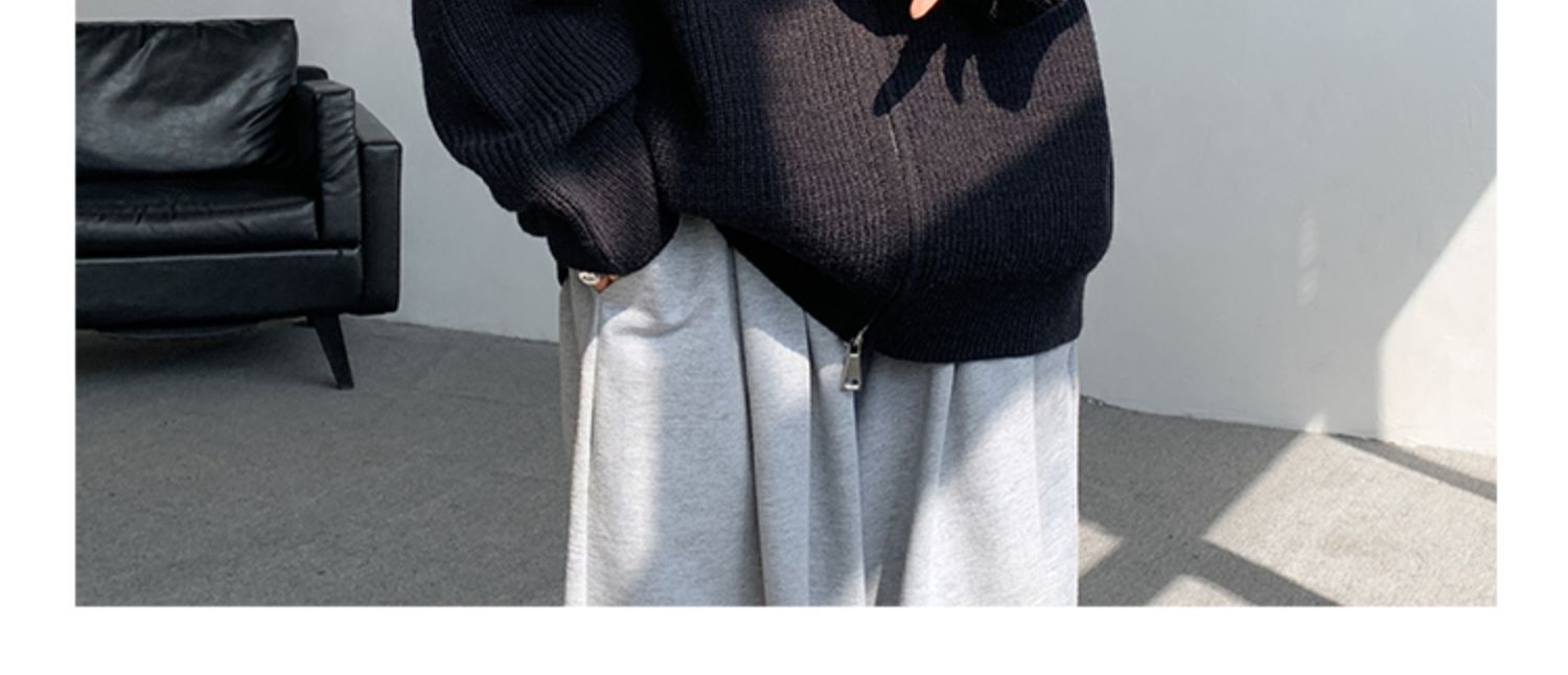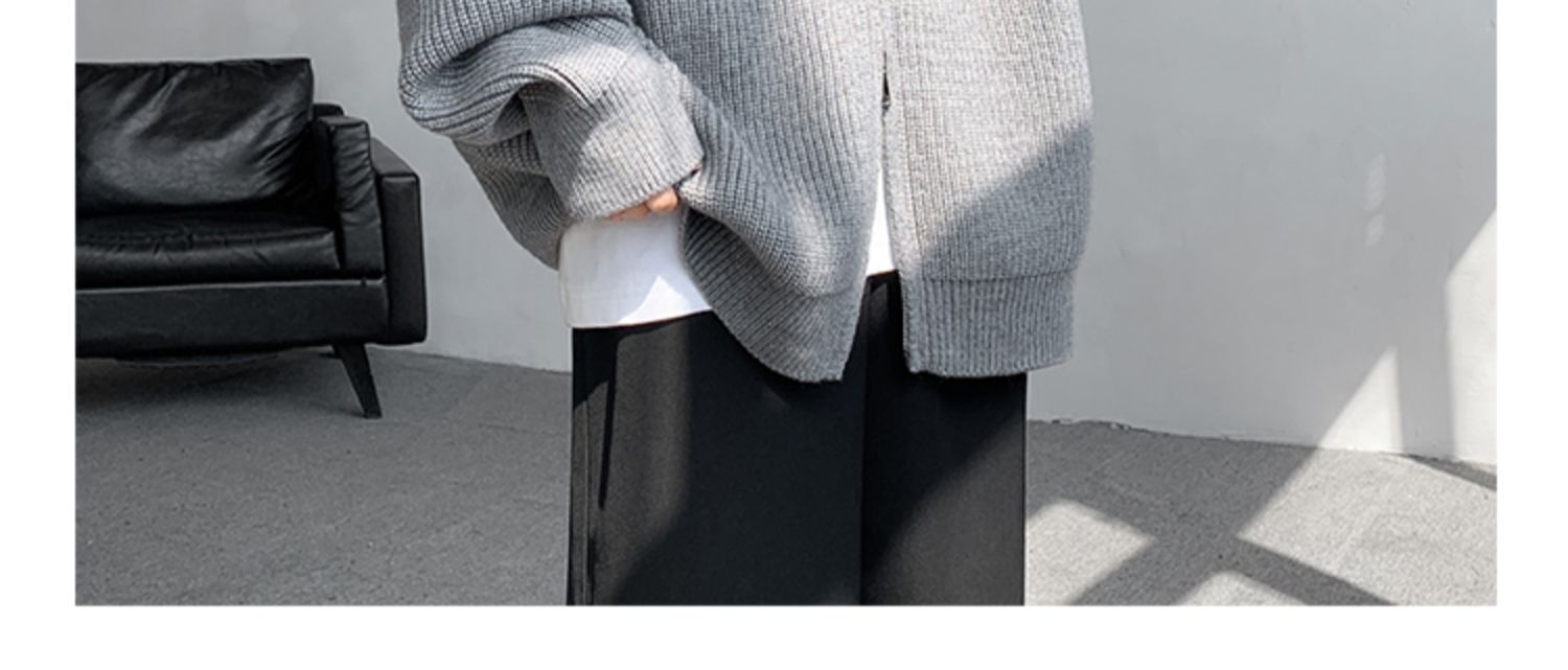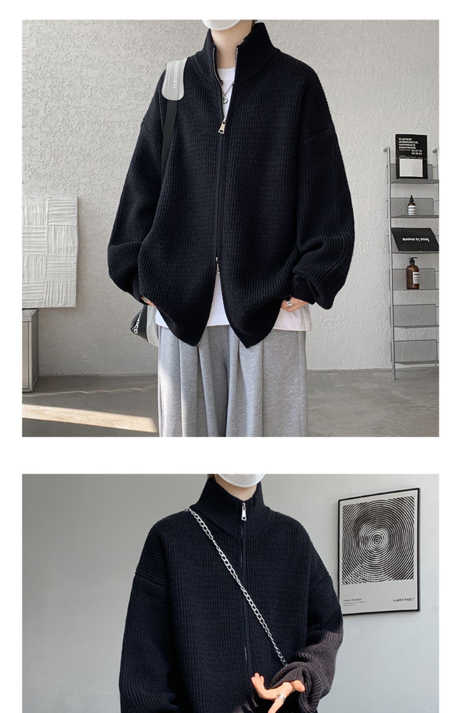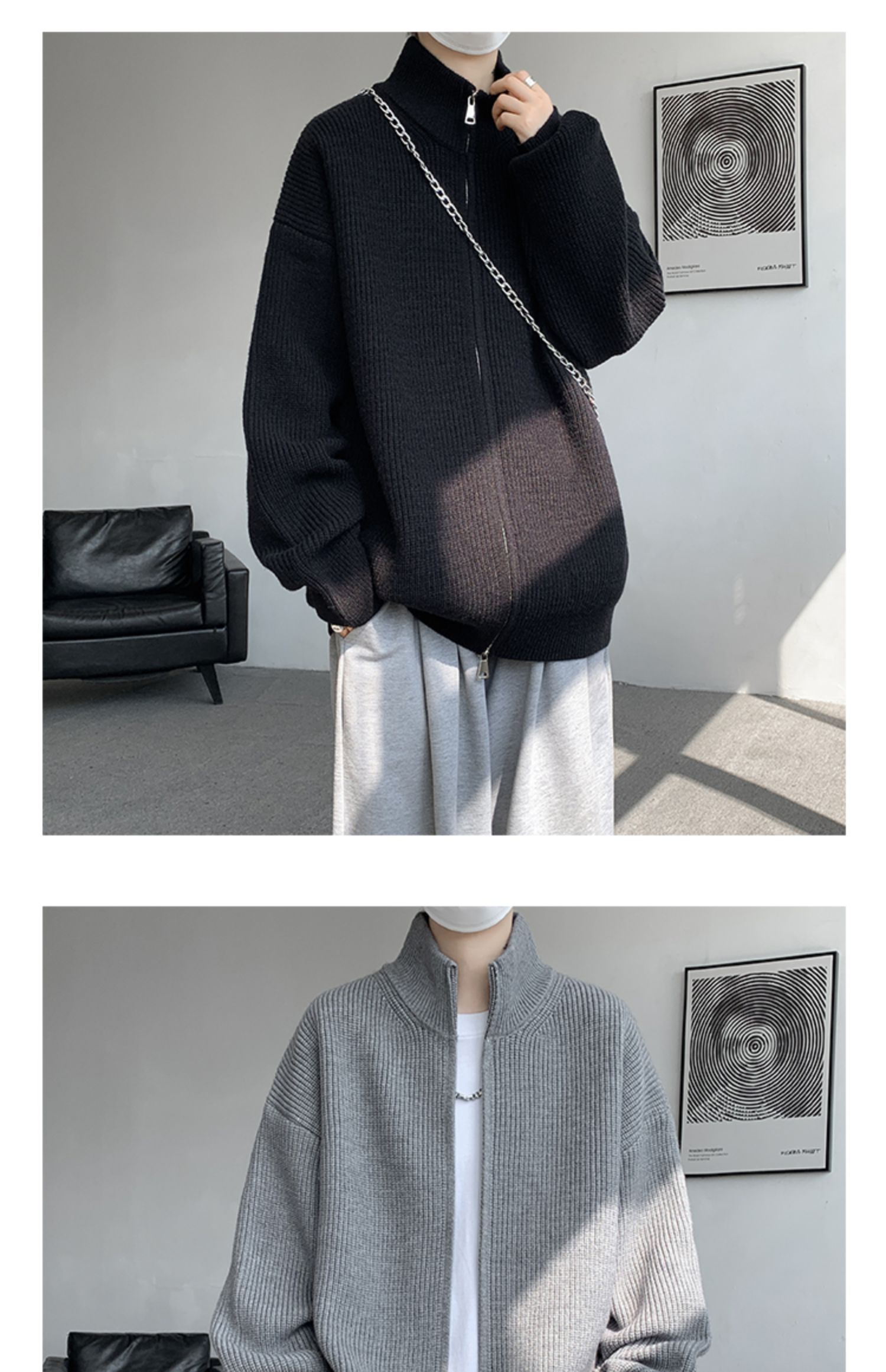 灰色拉鍊開衫毛衣外套男秋冬季潮流寬松痞帥男裝立領針織開衫夾克