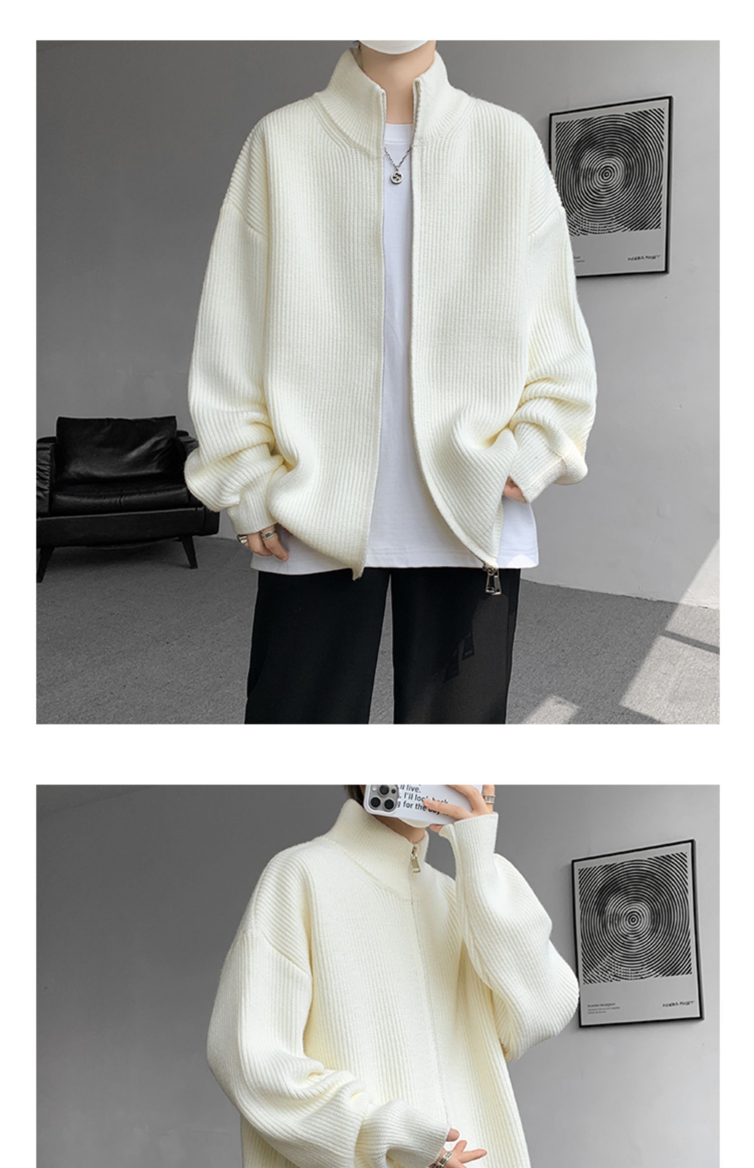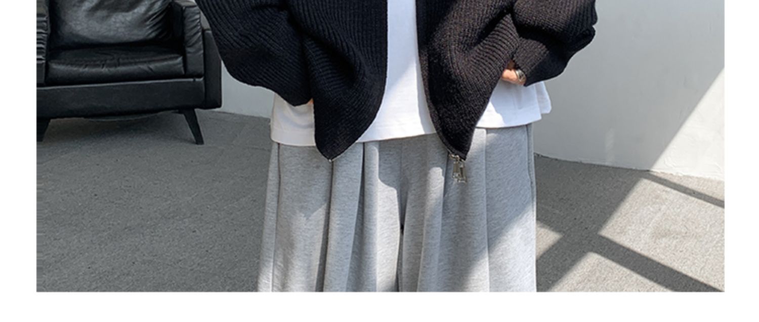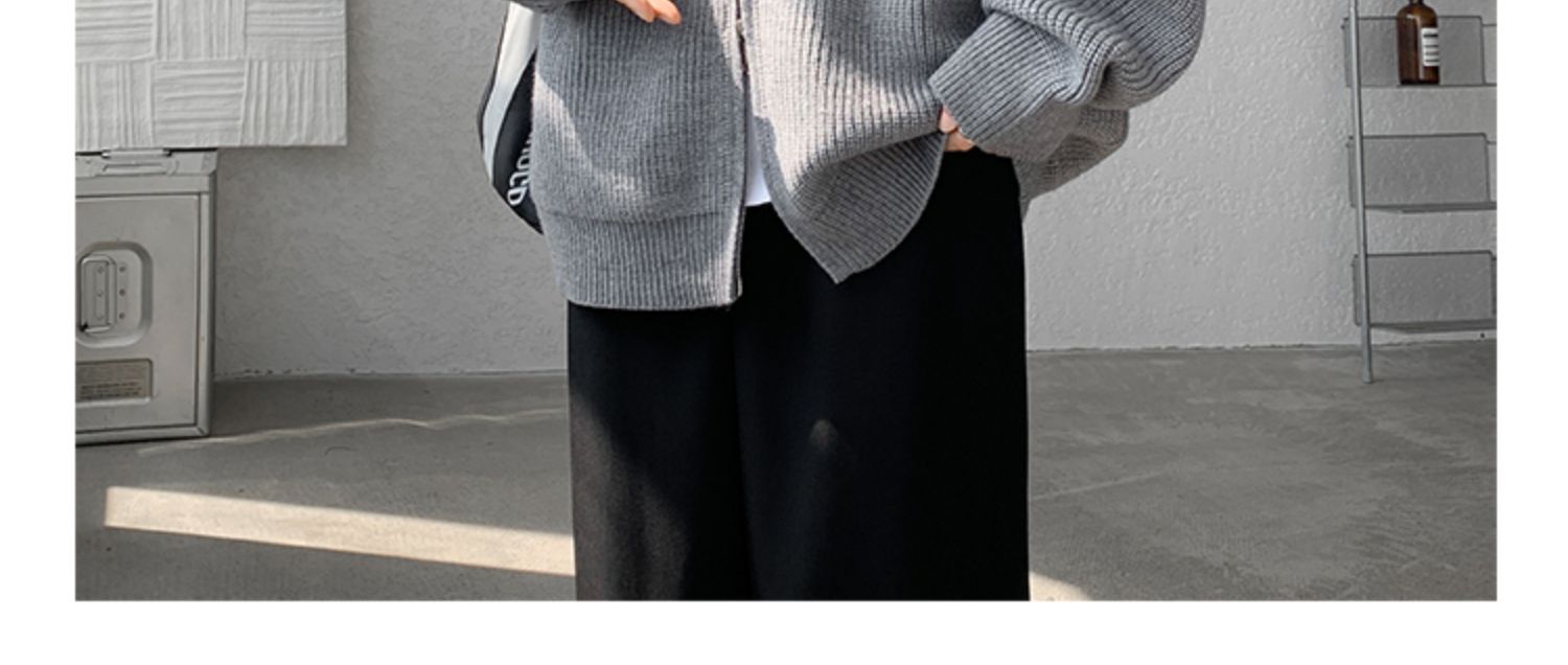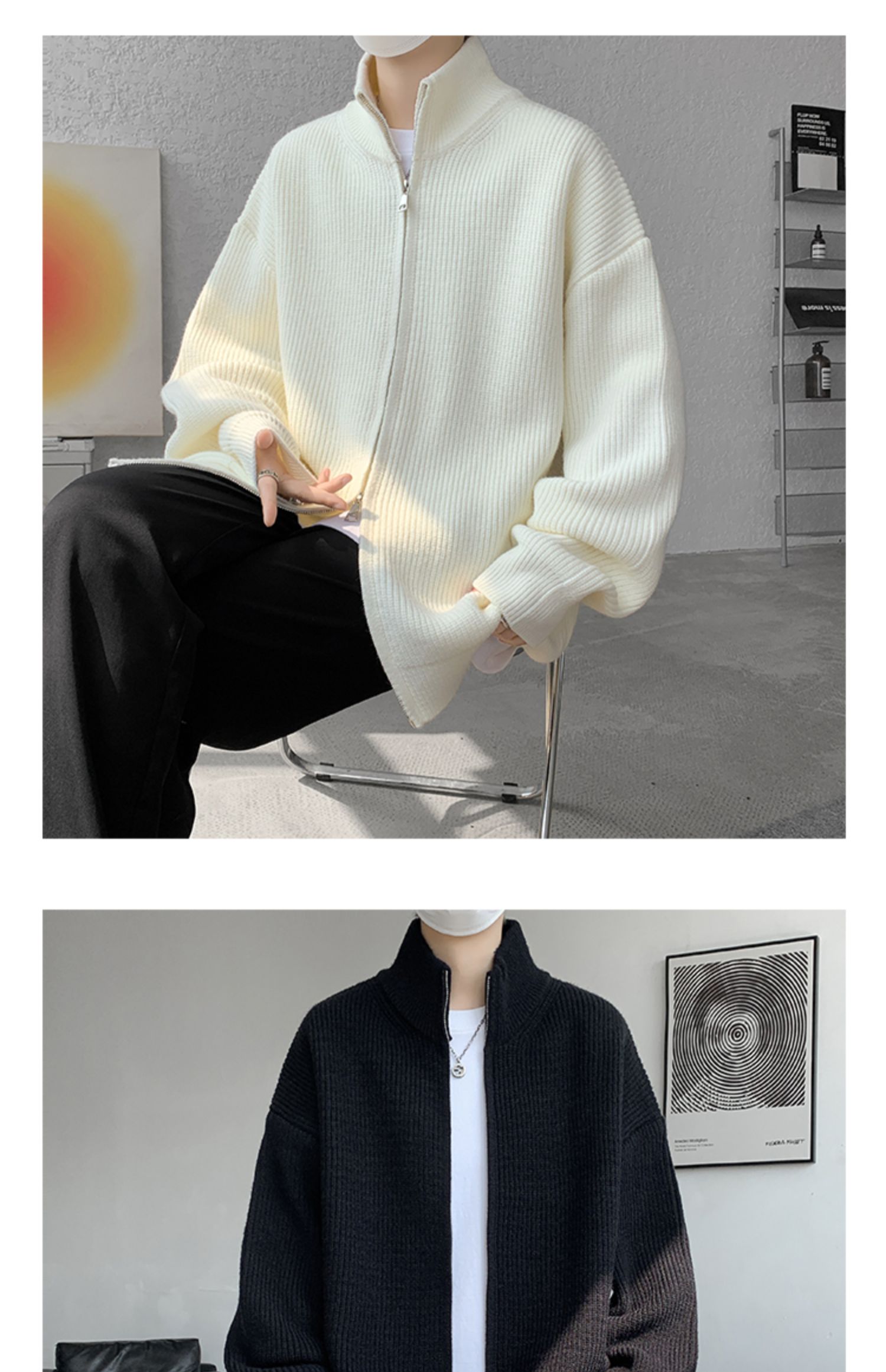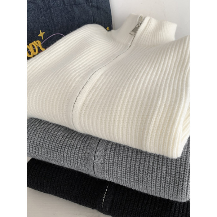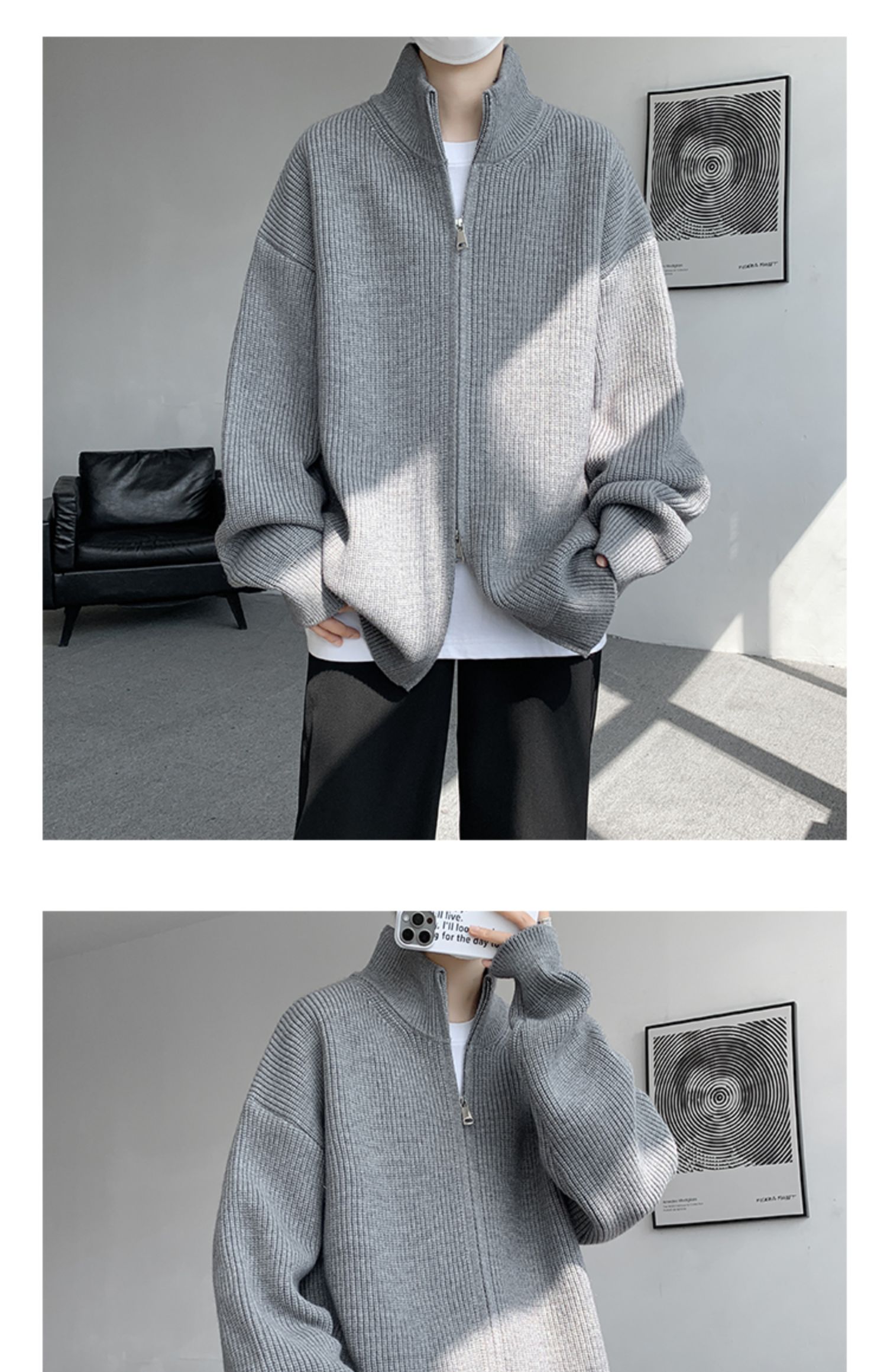 灰色拉鍊開衫毛衣外套男秋冬季潮流寬松痞帥男裝立領針織開衫夾克
