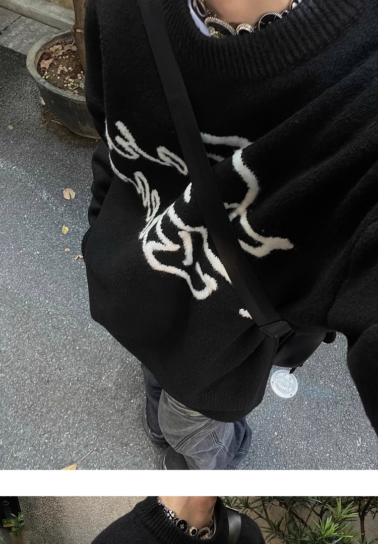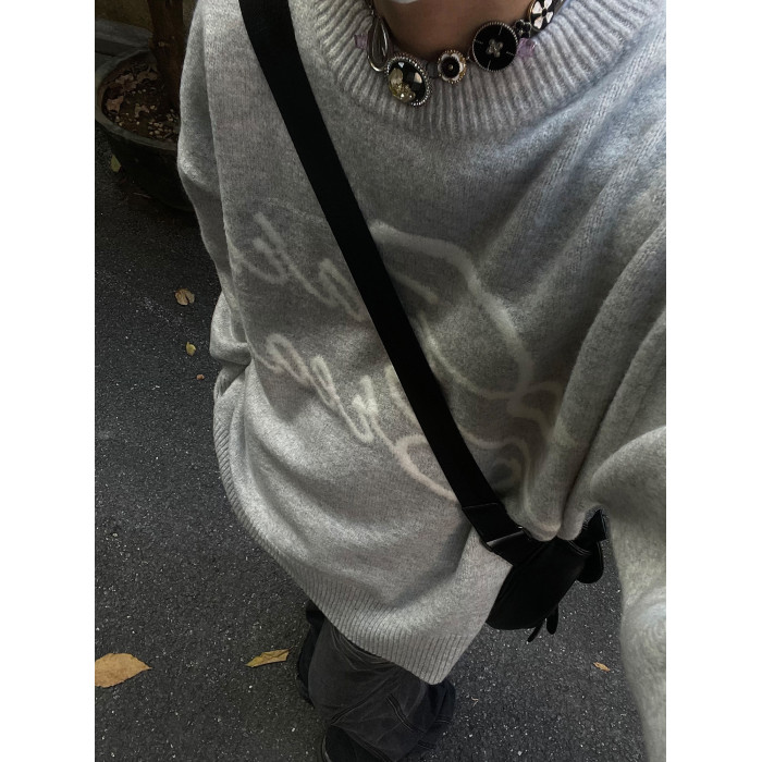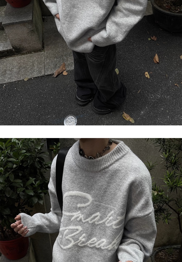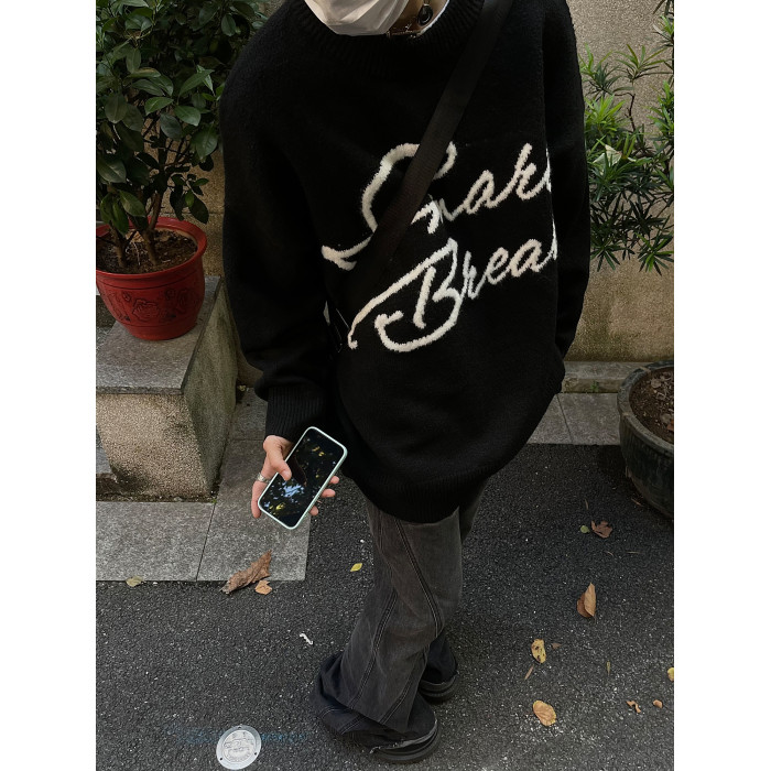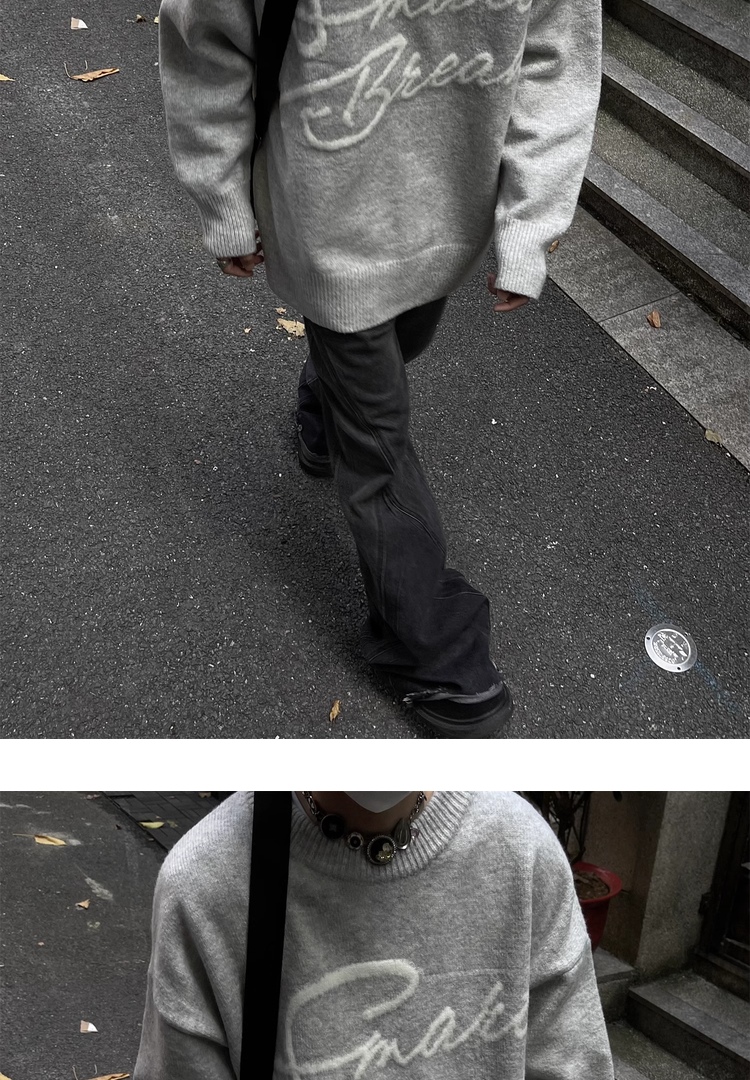 MaxDstr 美式復古哥特字母毛衣針織衫男女寬松慵懶風潮牌秋冬外套