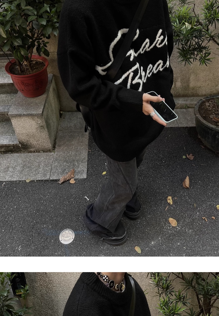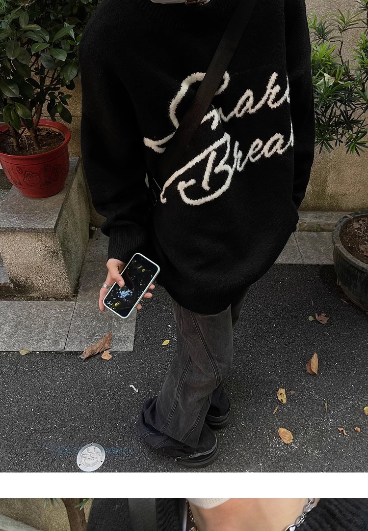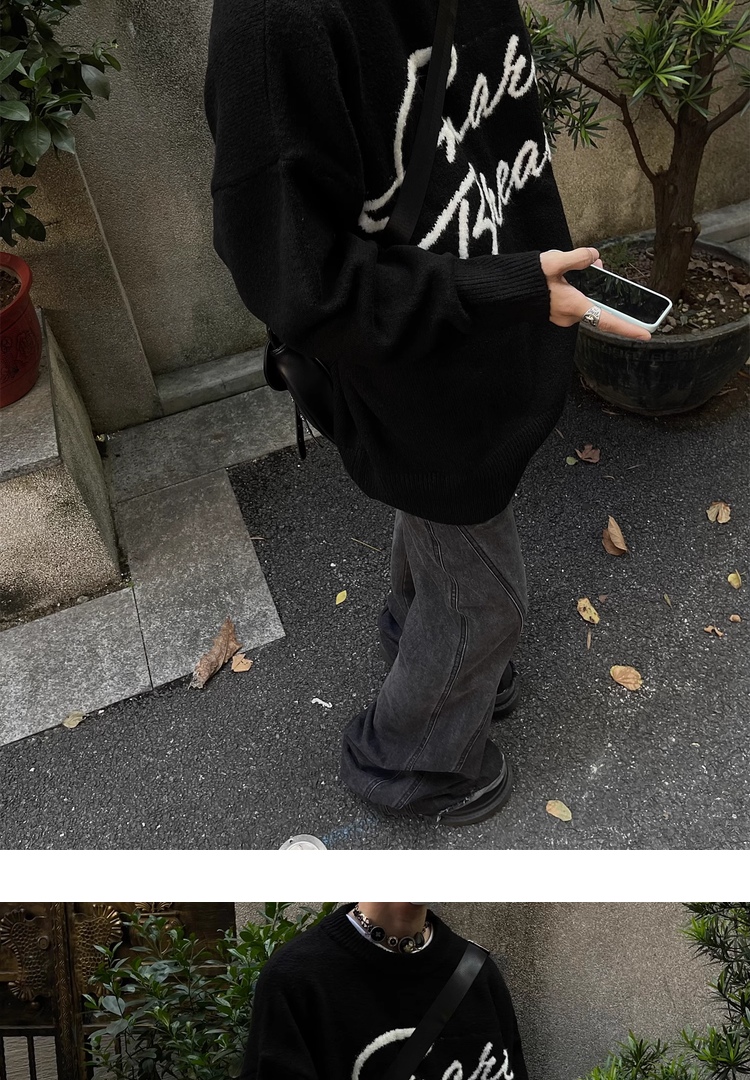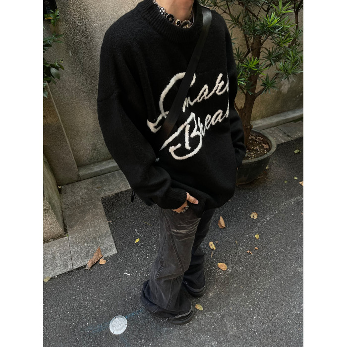 MaxDstr 美式復古哥特字母毛衣針織衫男女寬松慵懶風潮牌秋冬外套