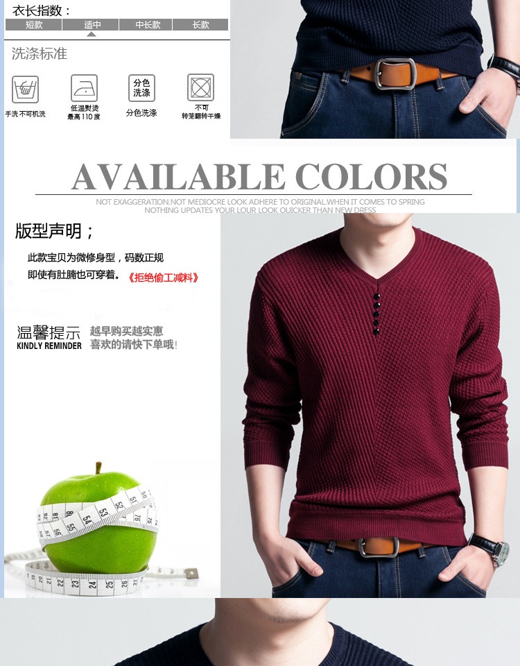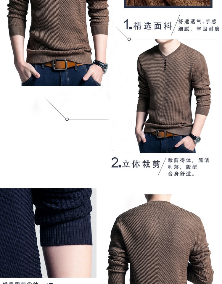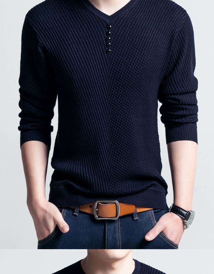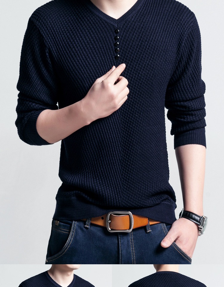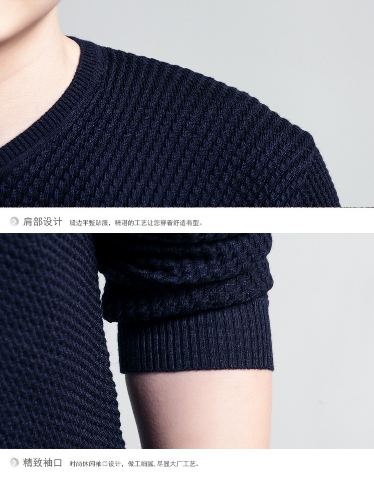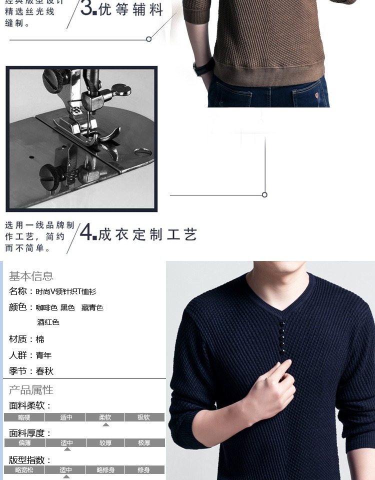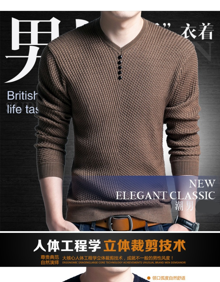 秋裝男士收身針織衫三角領打底衫毛衣彈力薄款內穿瘦高款長袖外衣