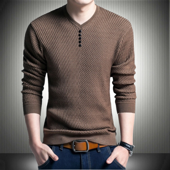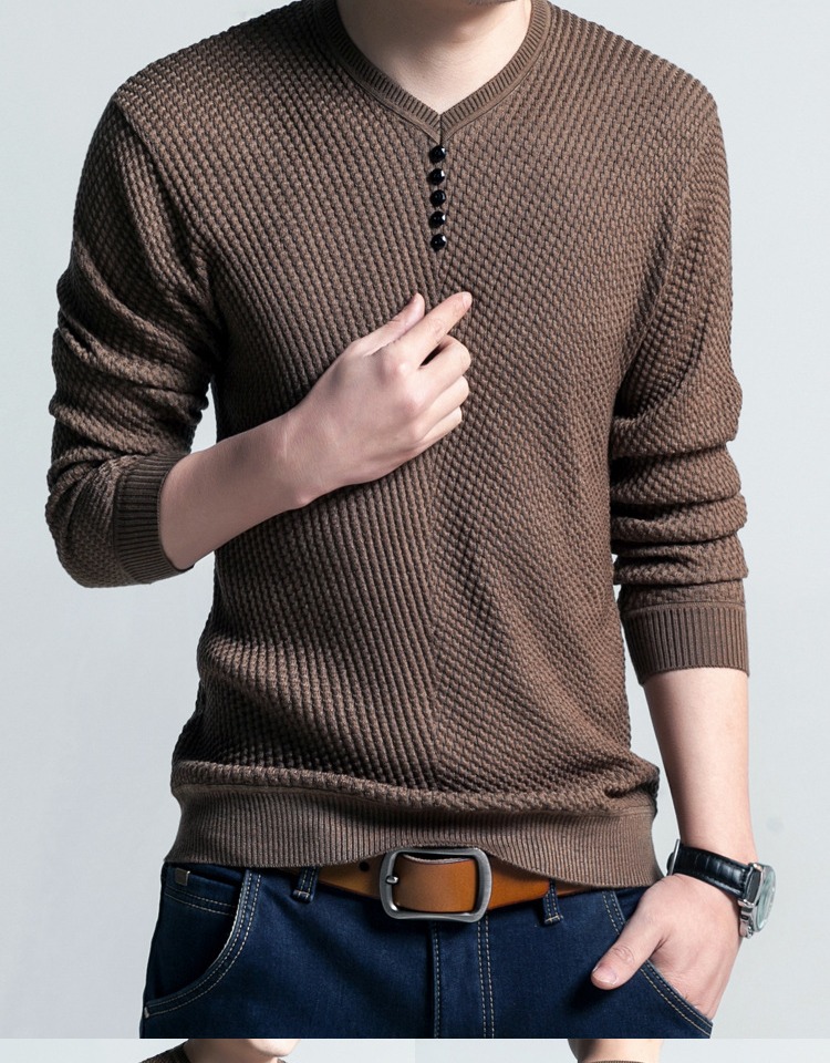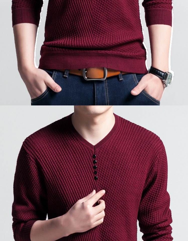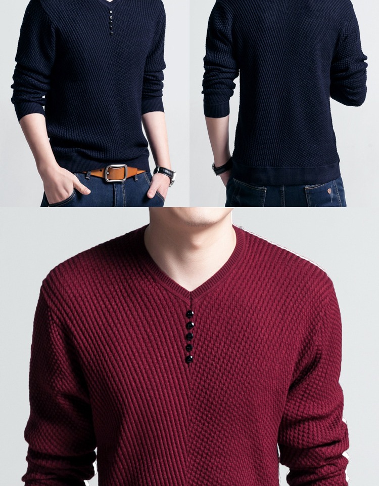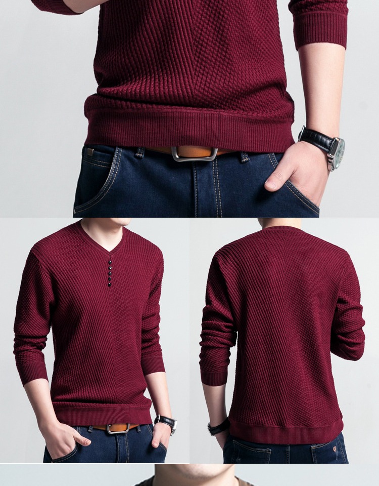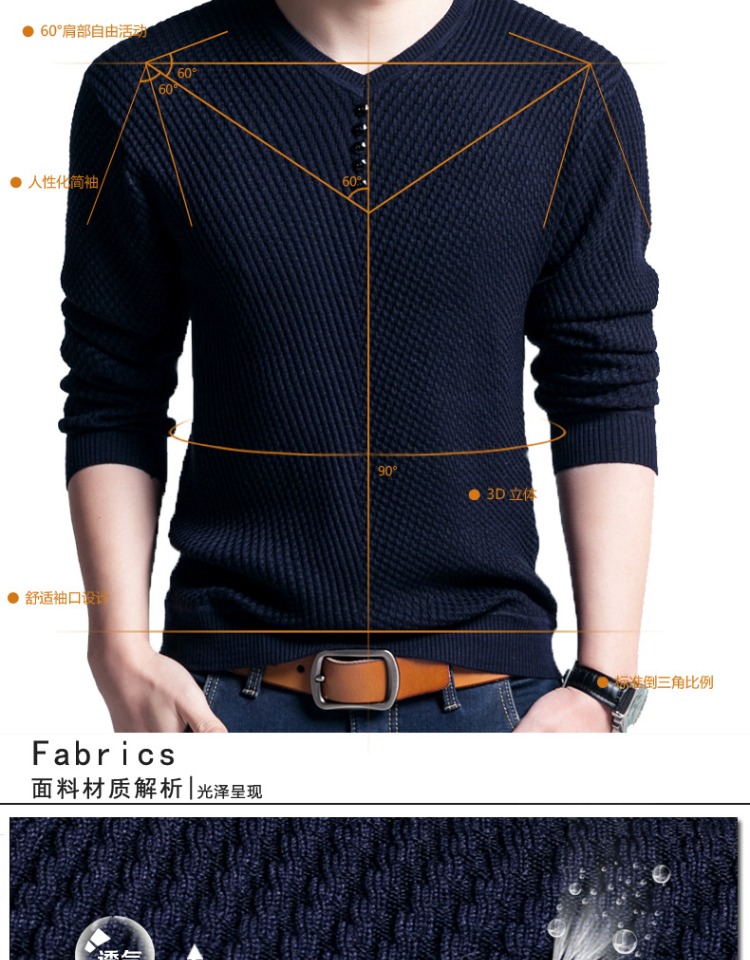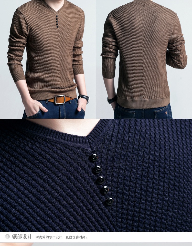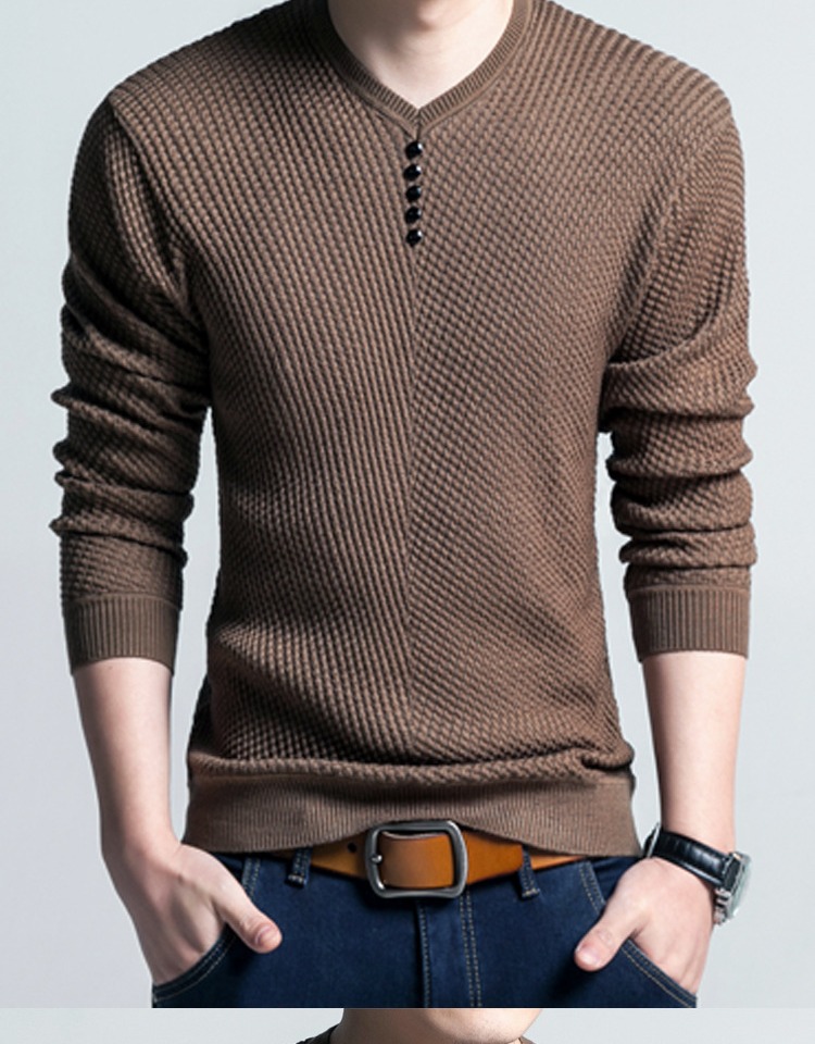 秋裝男士收身針織衫三角領打底衫毛衣彈力薄款內穿瘦高款長袖外衣