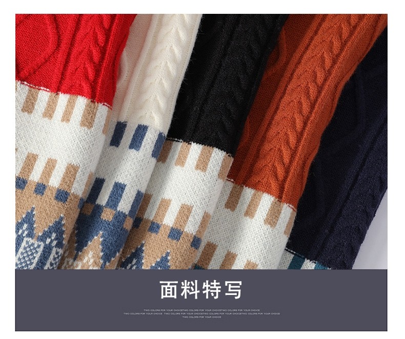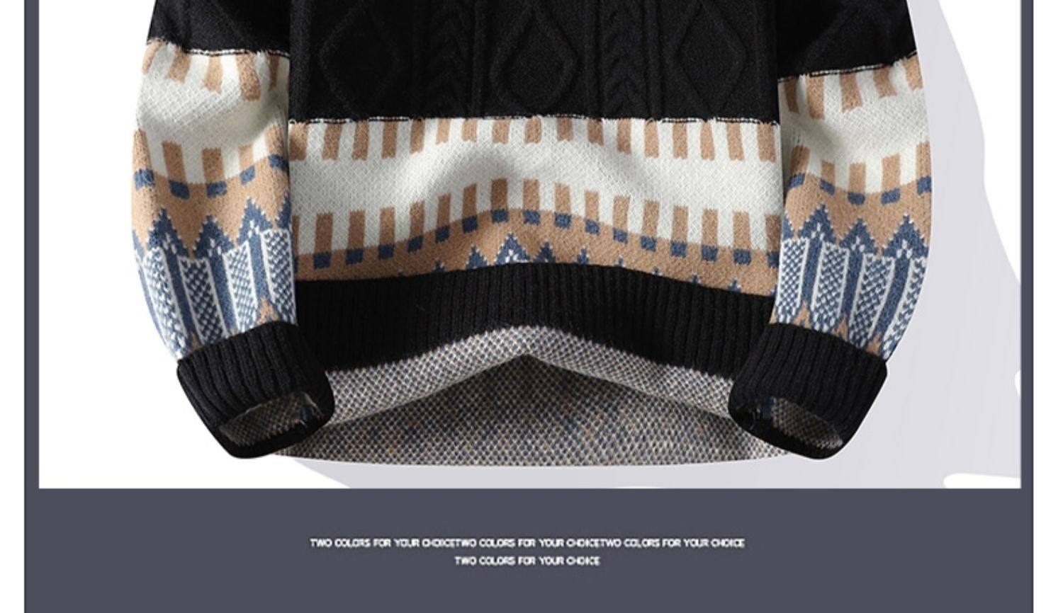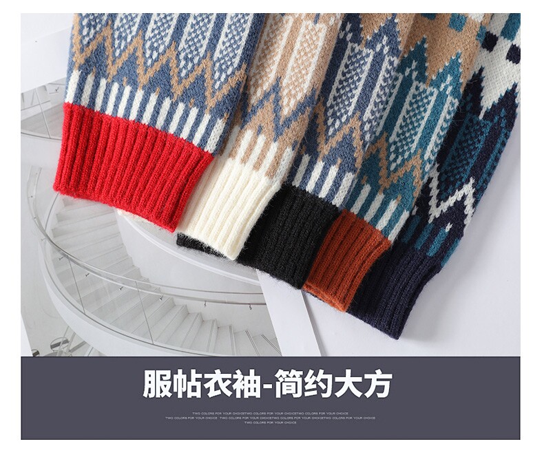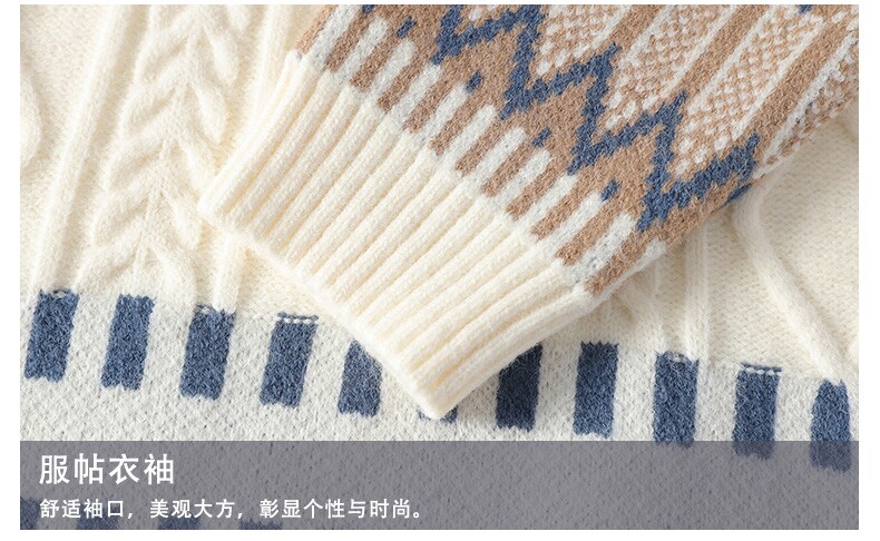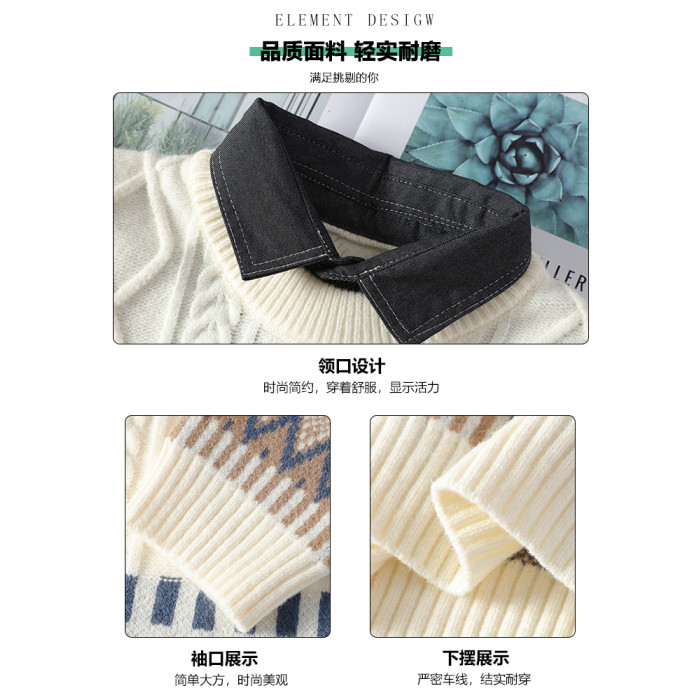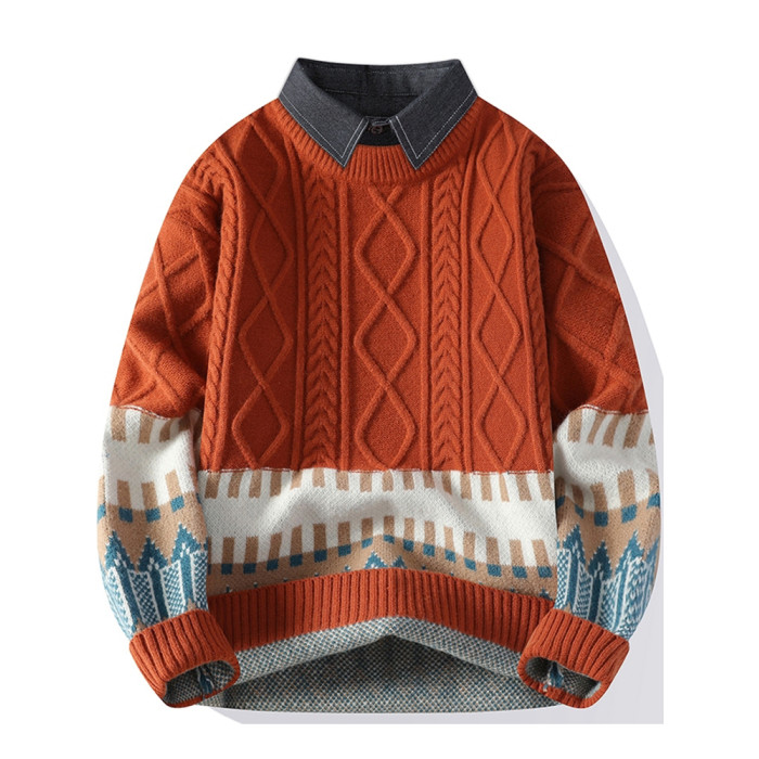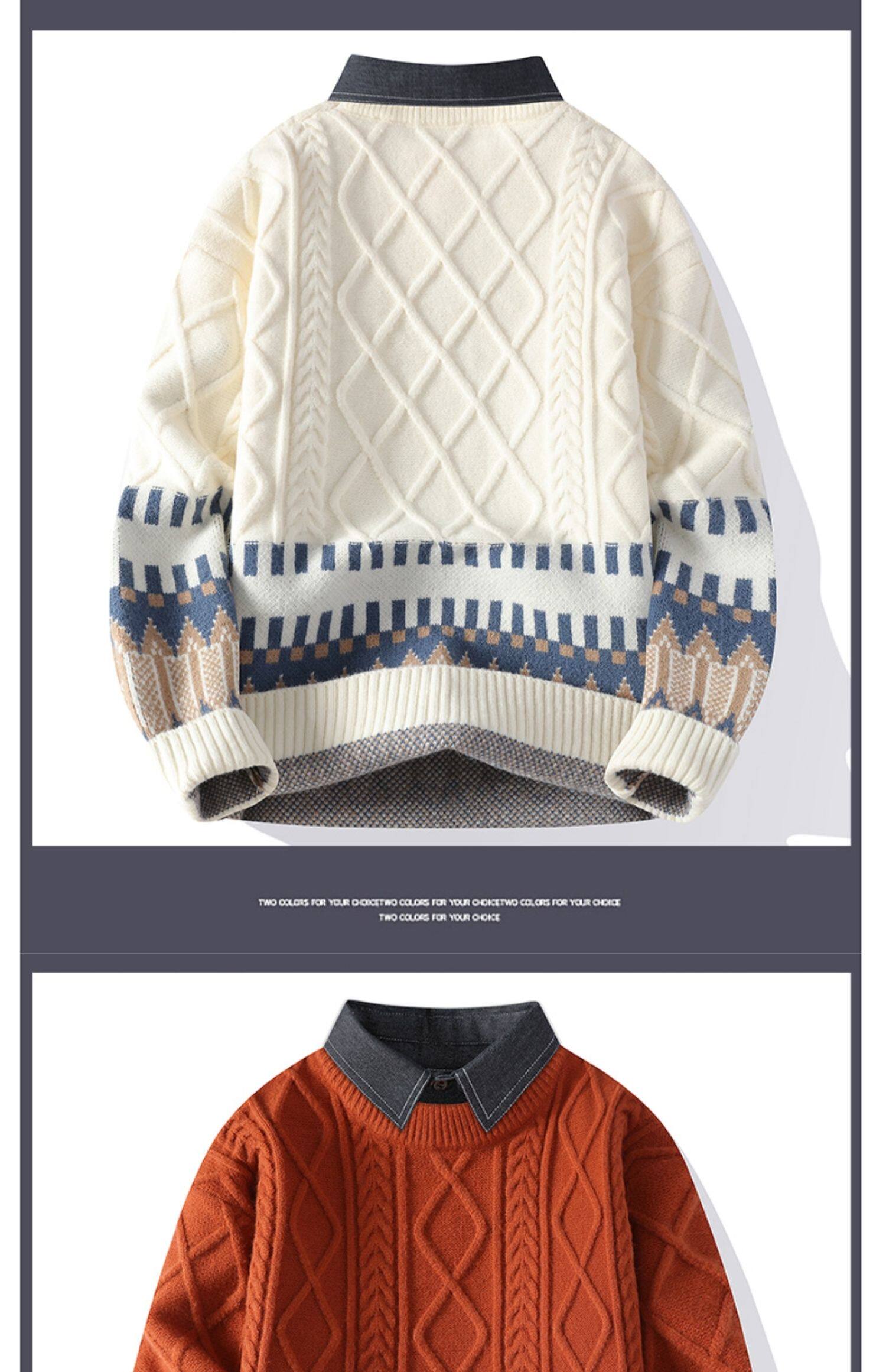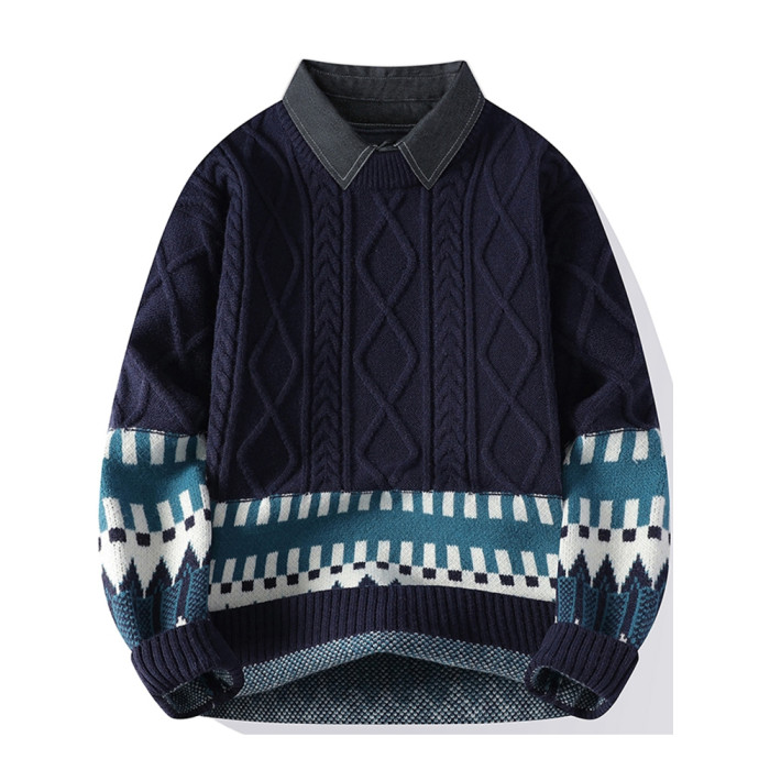 假兩件毛衣男冬季菱格撞色打底針織衫男青少年聖誕節保暖毛線衣服