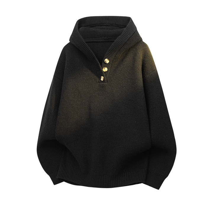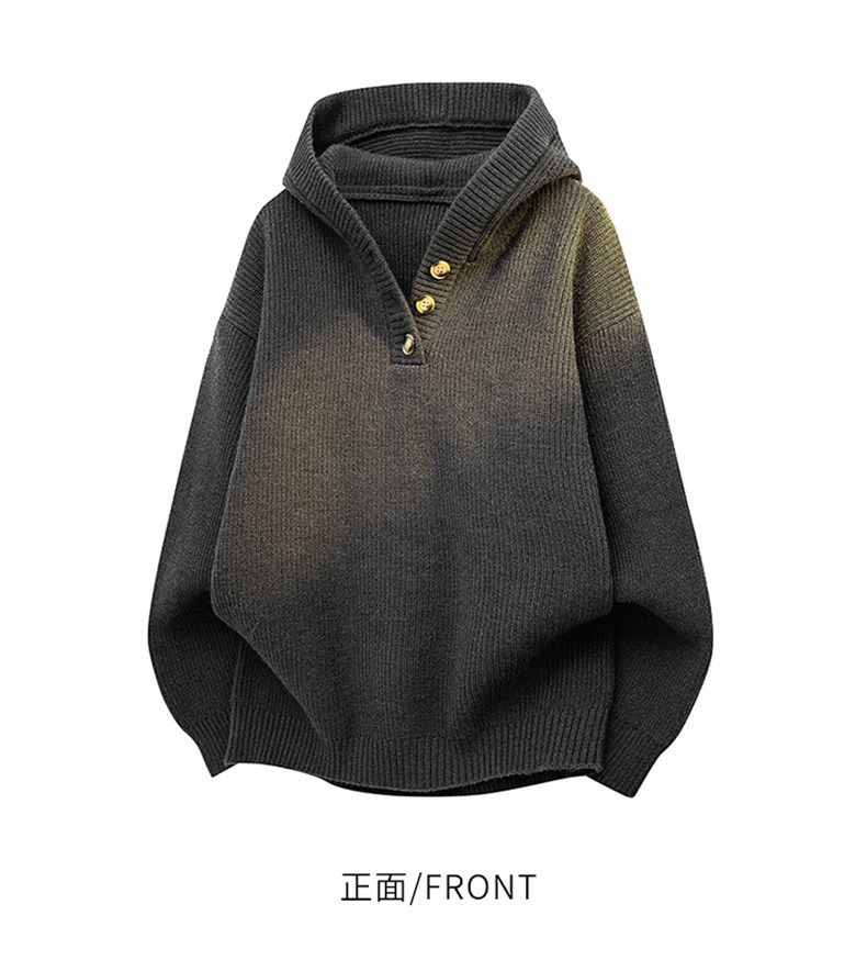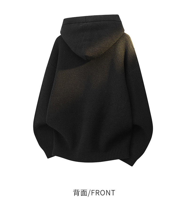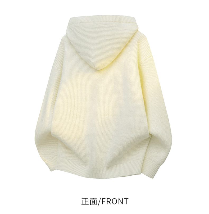連帽針織開衫男士秋冬季高品質雙拉鍊衫寬松日系純色簡約休閒線衣