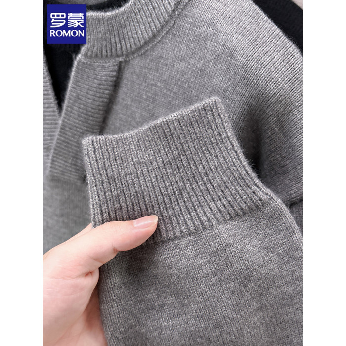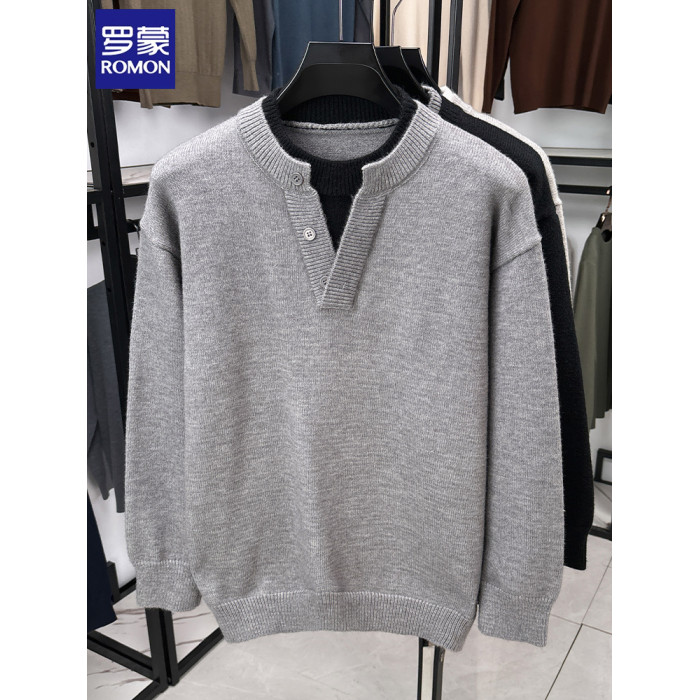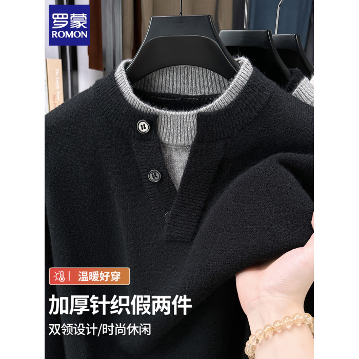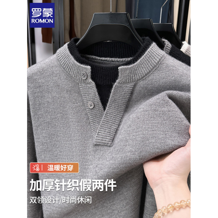 羅矇毛衣男款時尚寬松假兩件領秋冬季休閒加厚針織衫男裝外套潮流