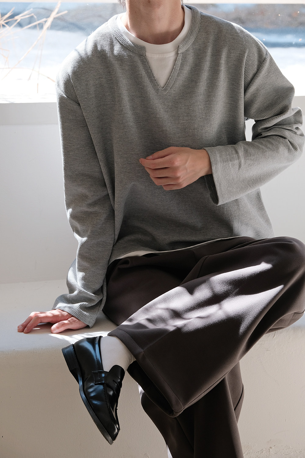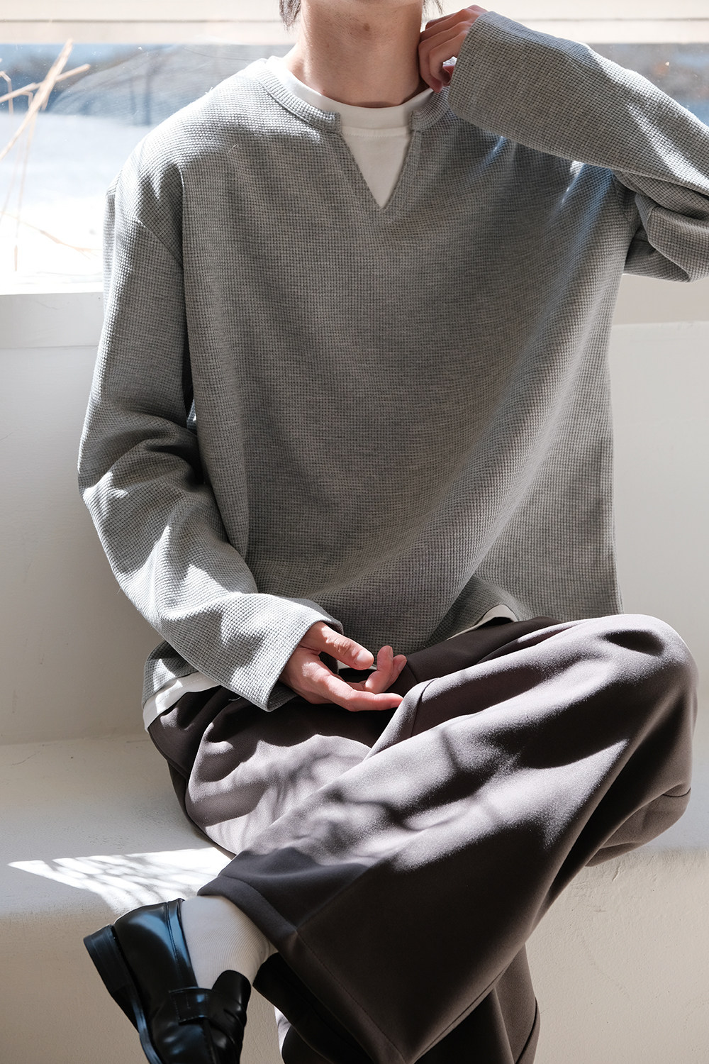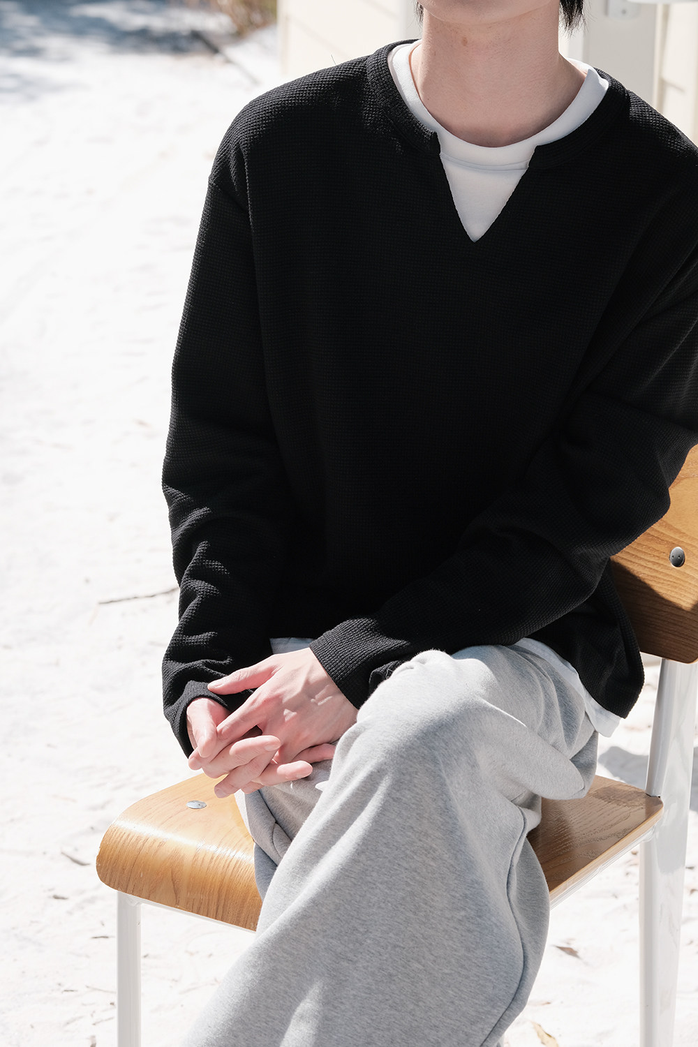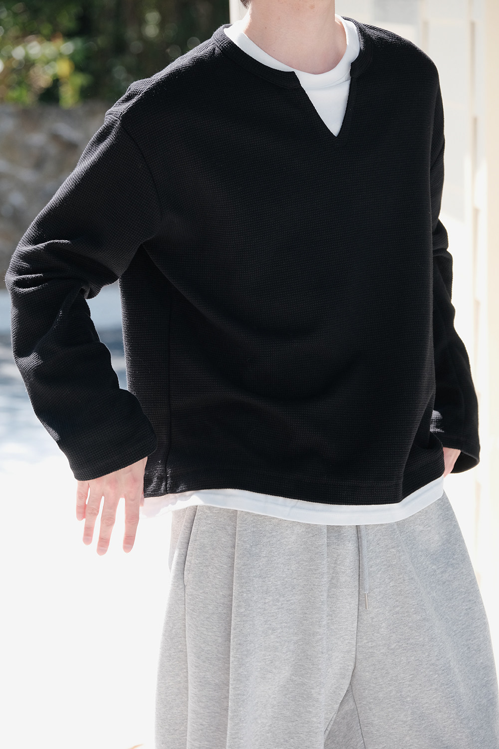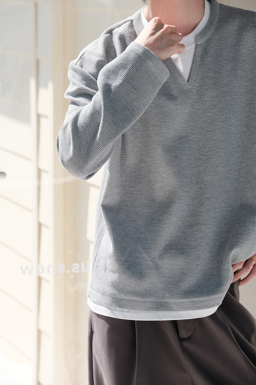 可樂生活自製 秋季慵嬾風華夫格假兩件日系寬鬆長袖打底T恤男女
