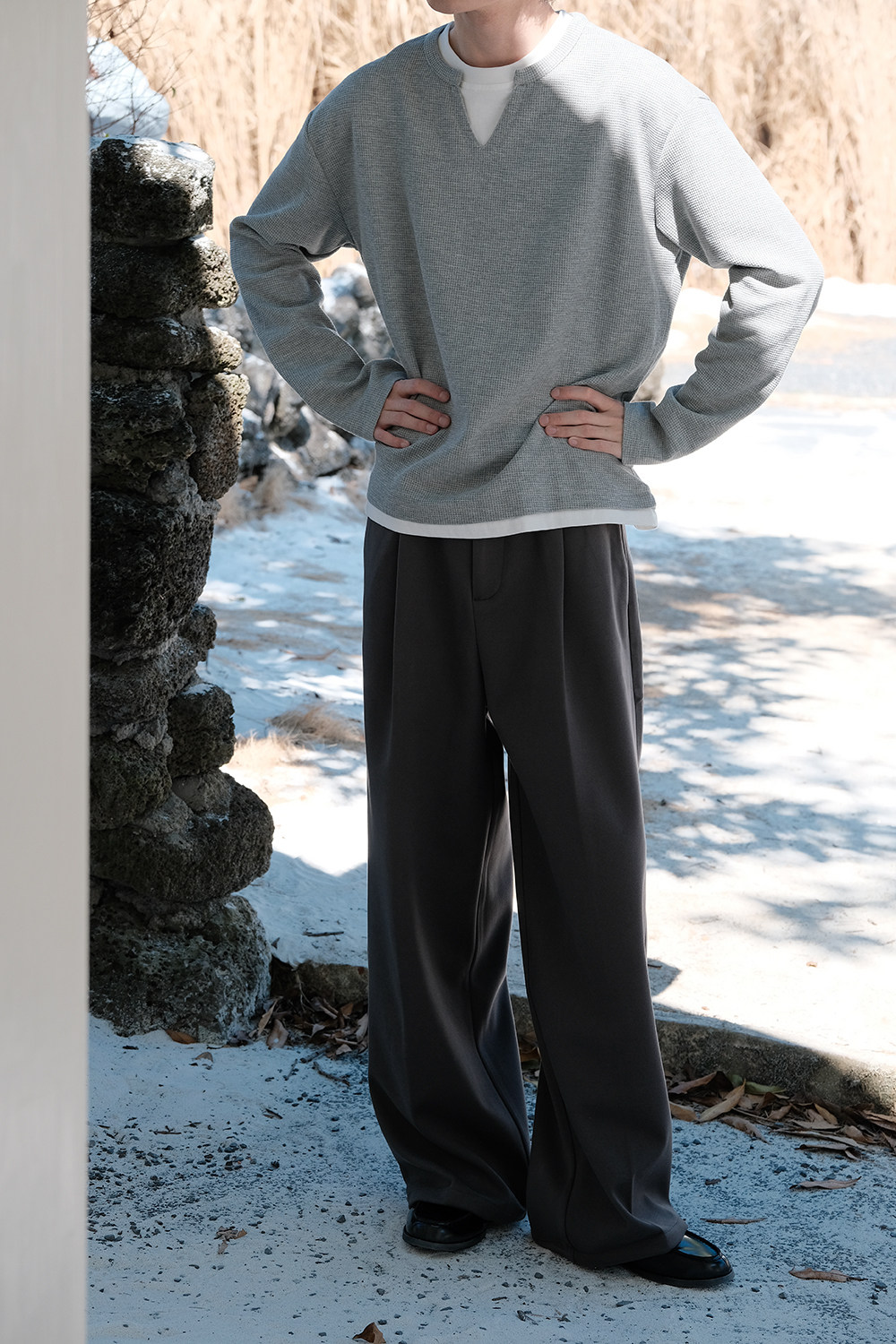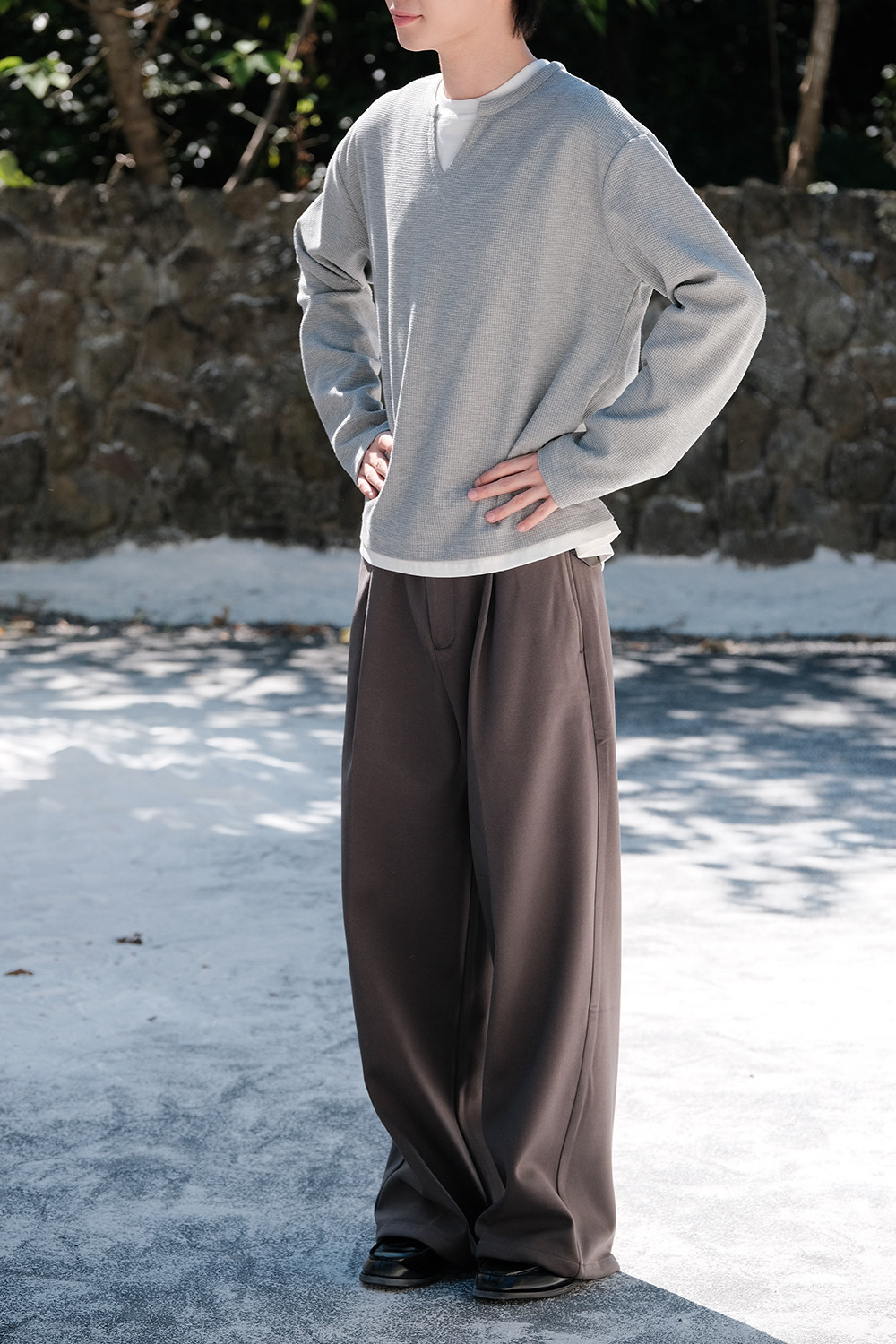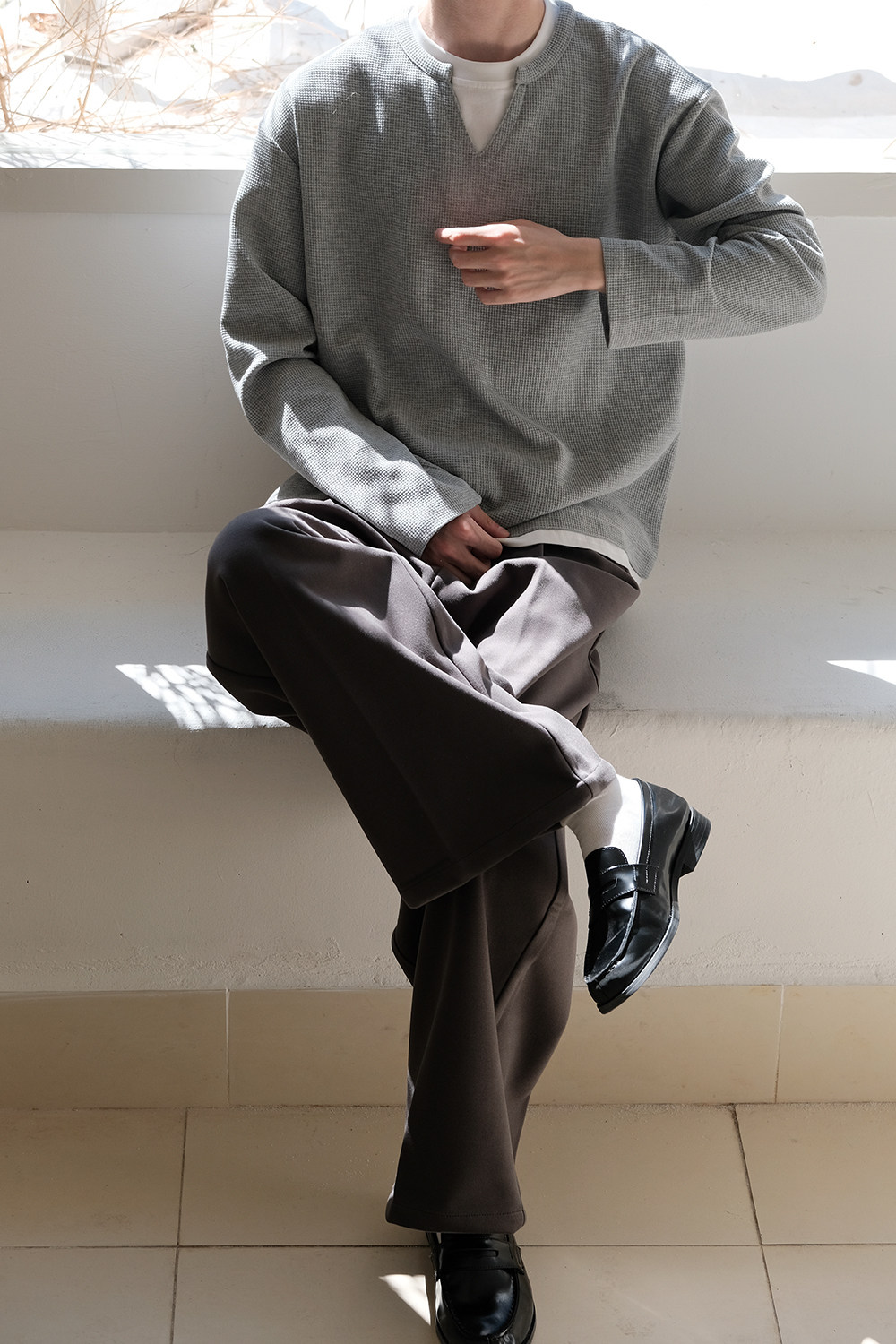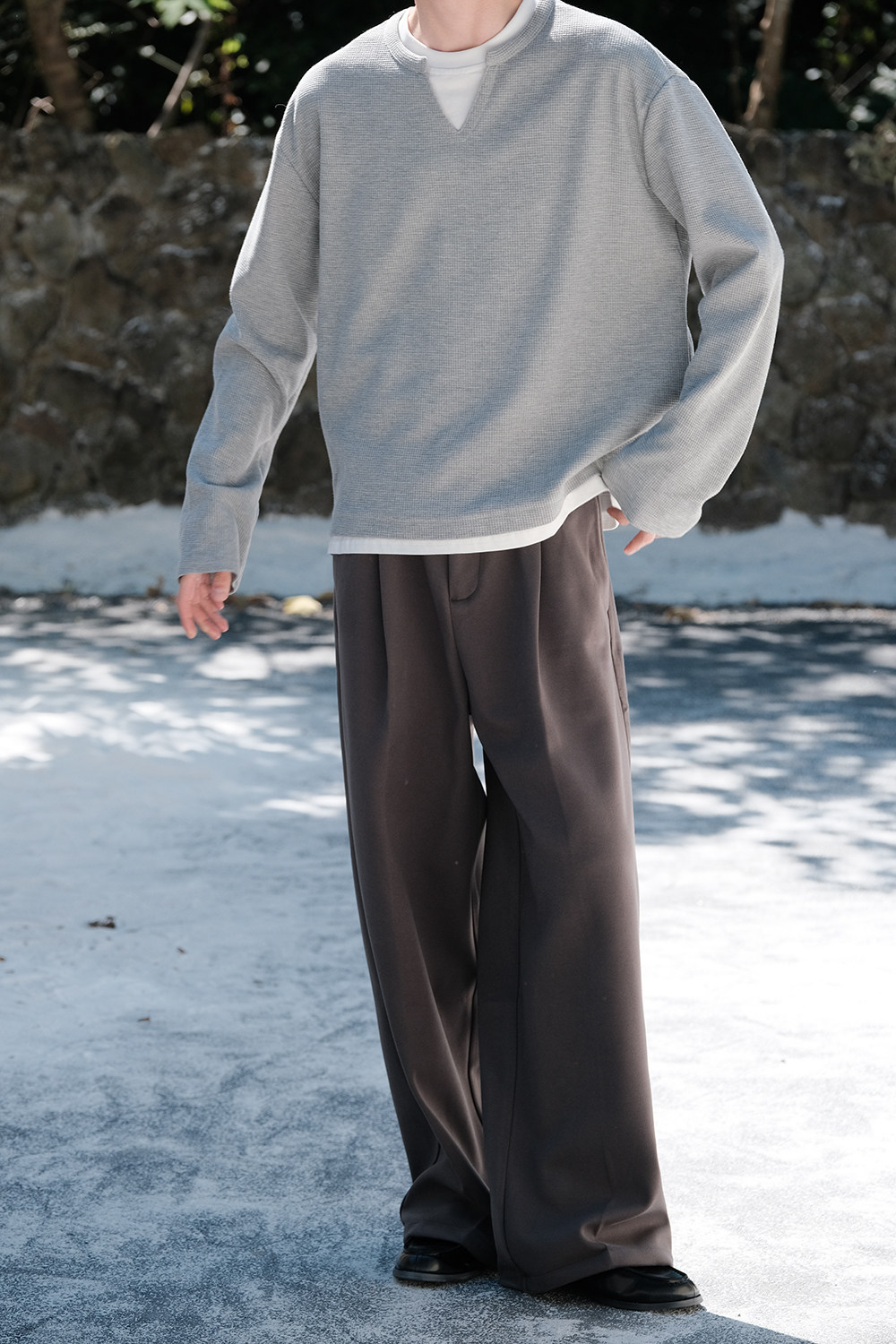 可樂生活自製 秋季慵嬾風華夫格假兩件日系寬鬆長袖打底T恤男女