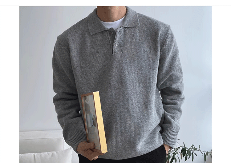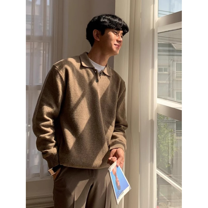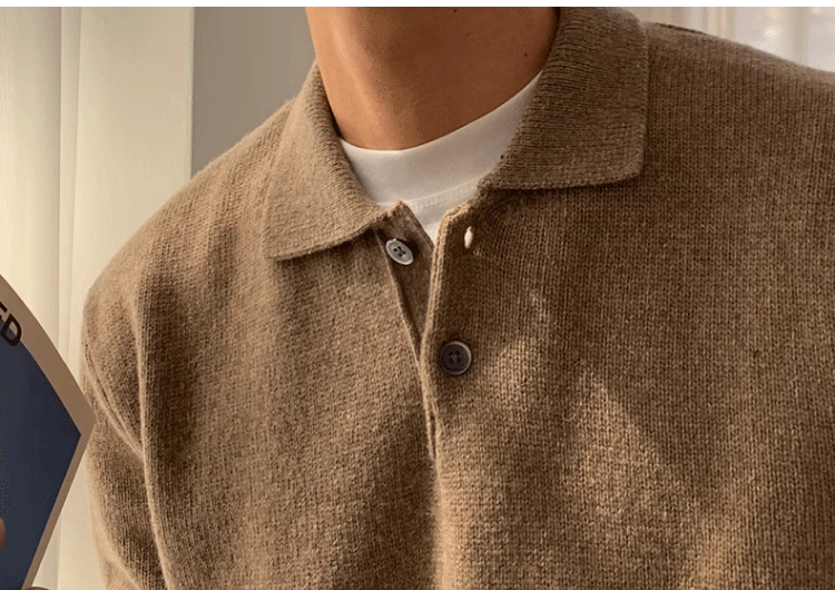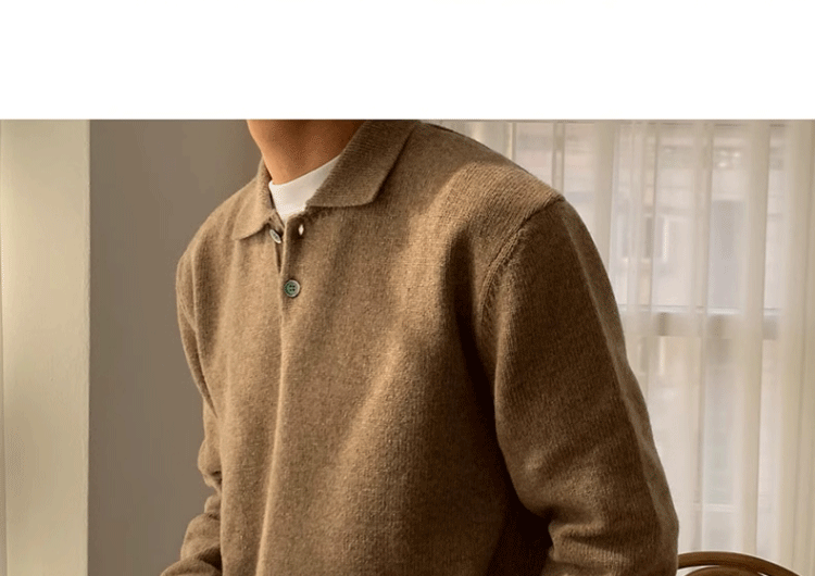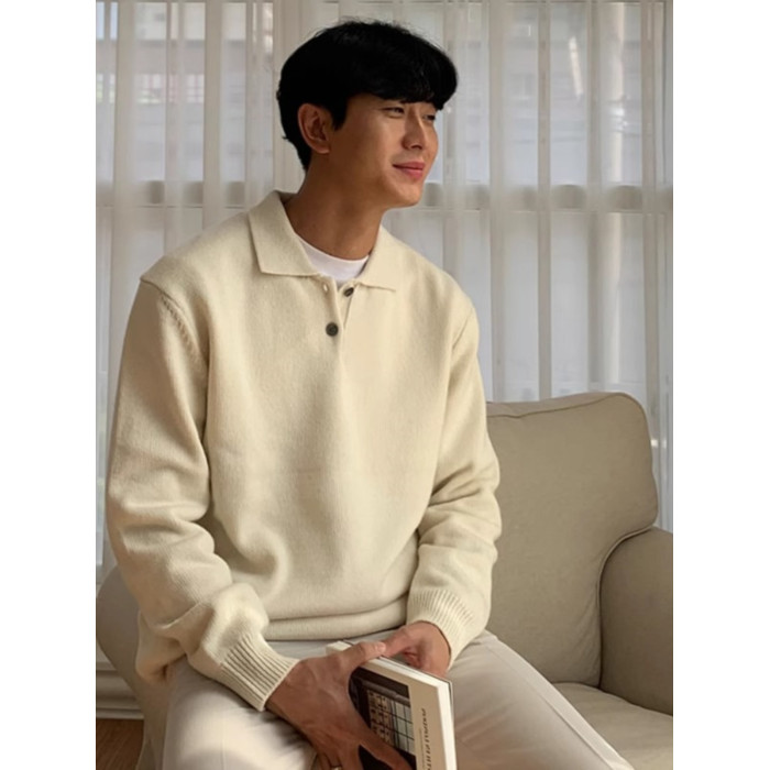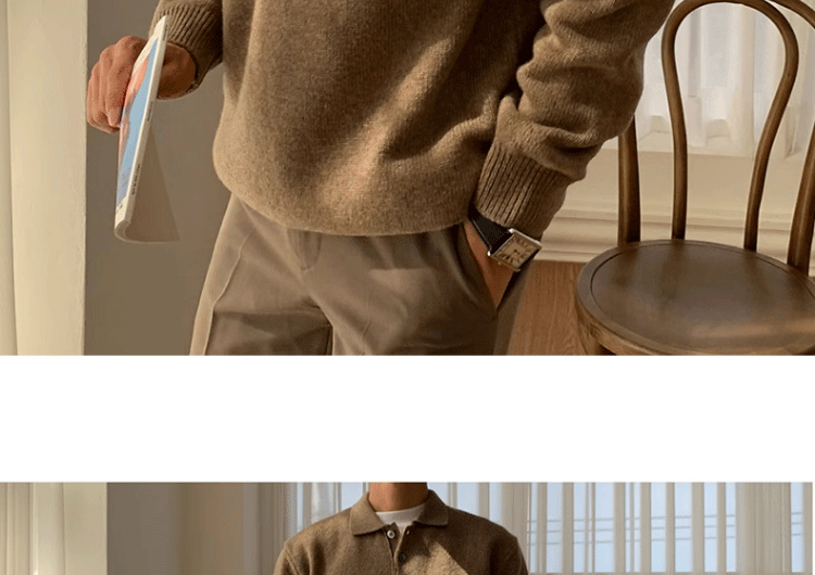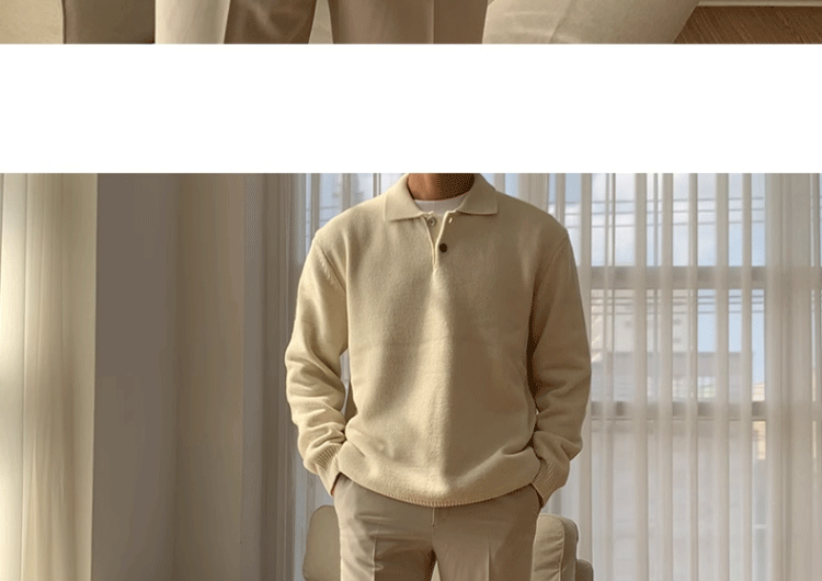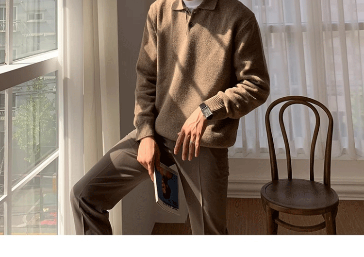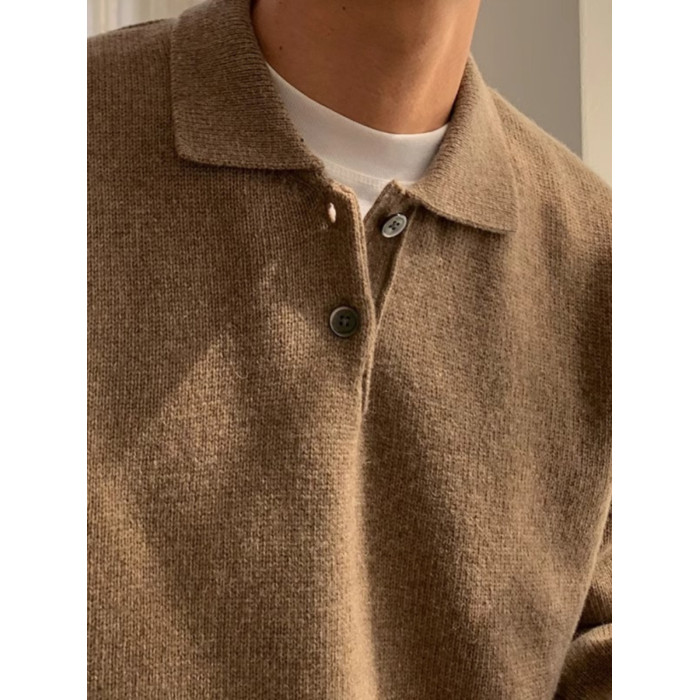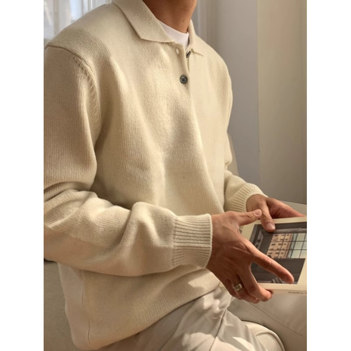 純色polo毛衣男士高級感韓版潮流休閒翻領針織衫秋季休閒寬松外套
