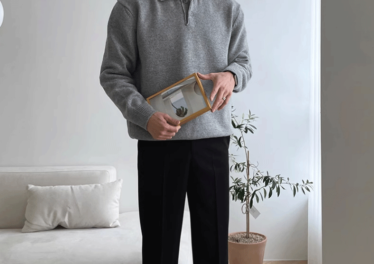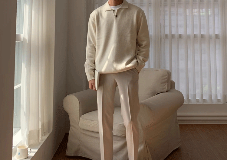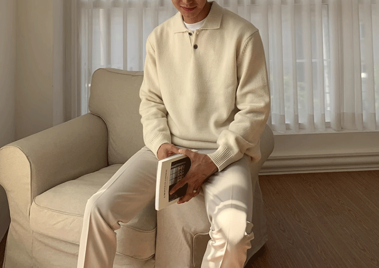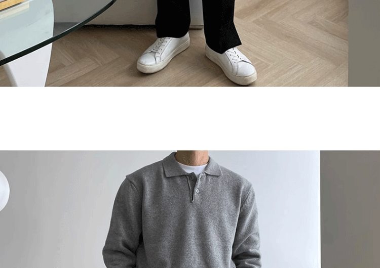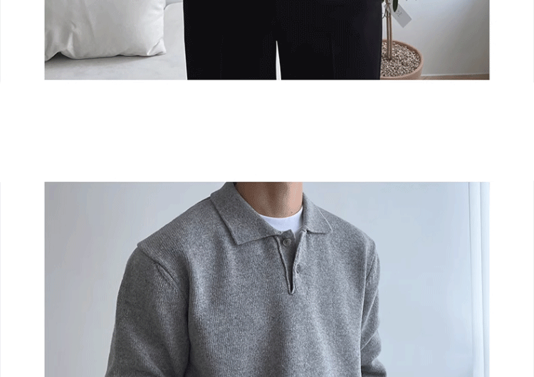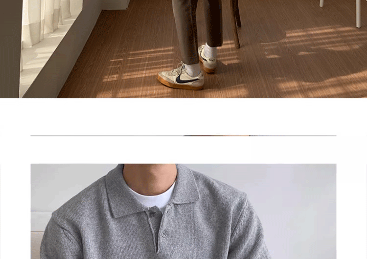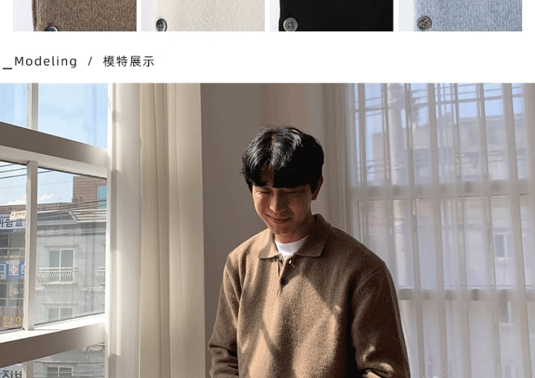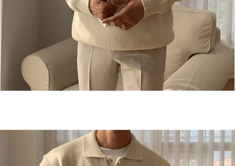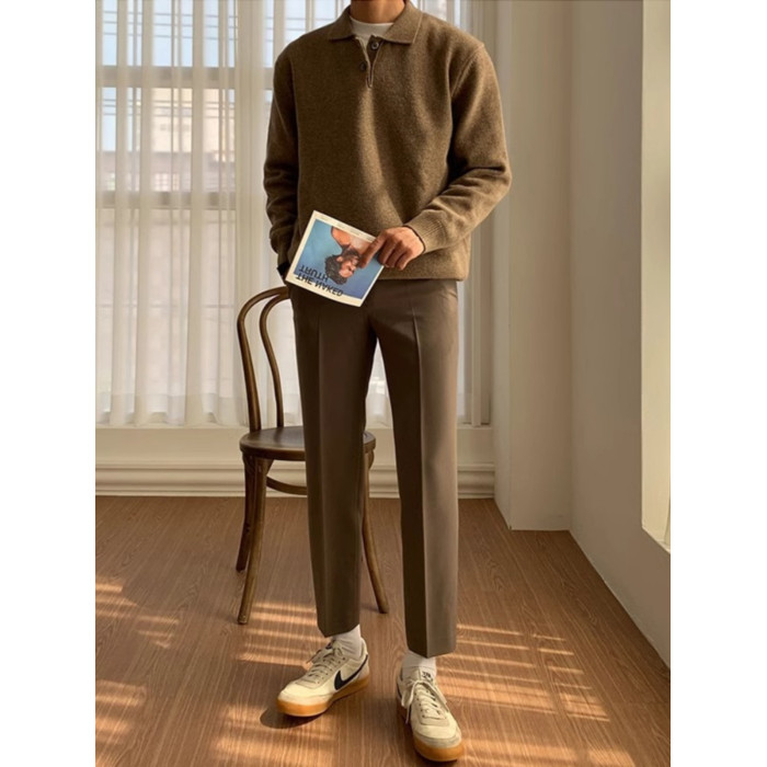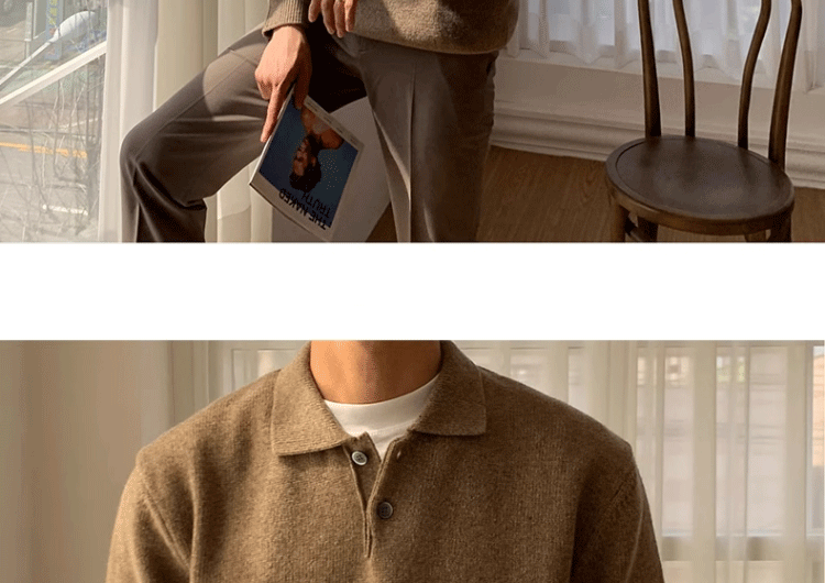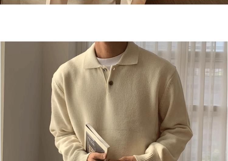 純色polo毛衣男士高級感韓版潮流休閒翻領針織衫秋季休閒寬松外套
