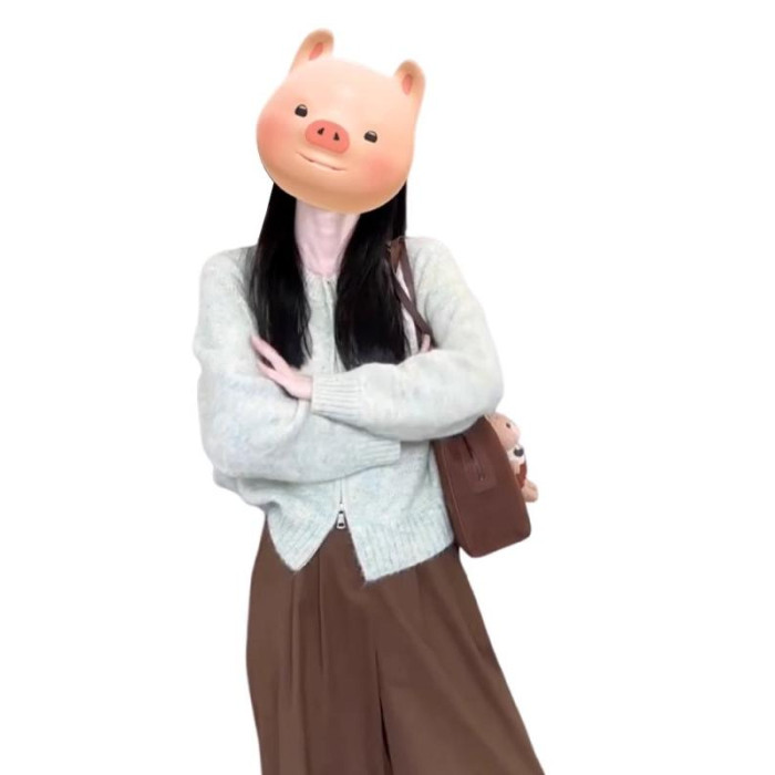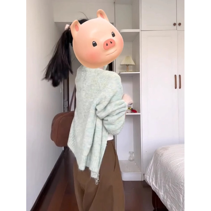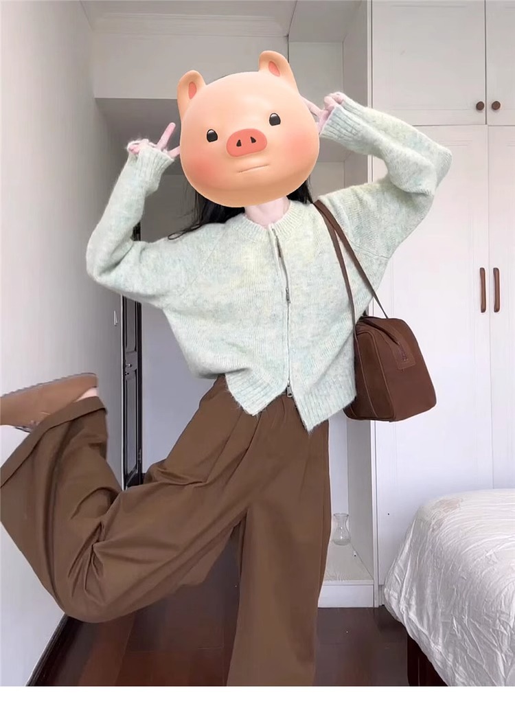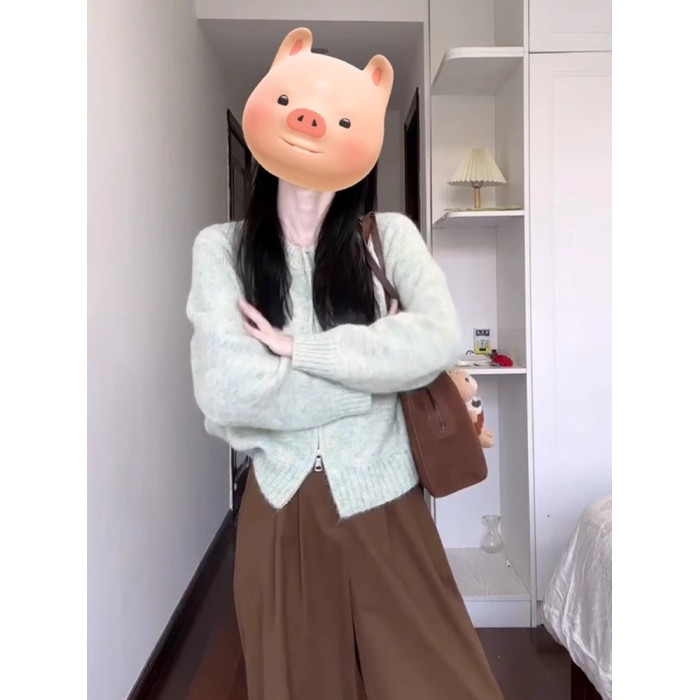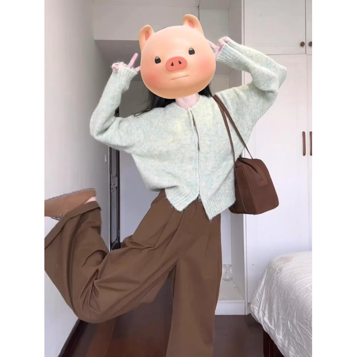 綠色毛衣開衫外套女秋冬季針織衫2025新款打底短上衣慵懶風高級感