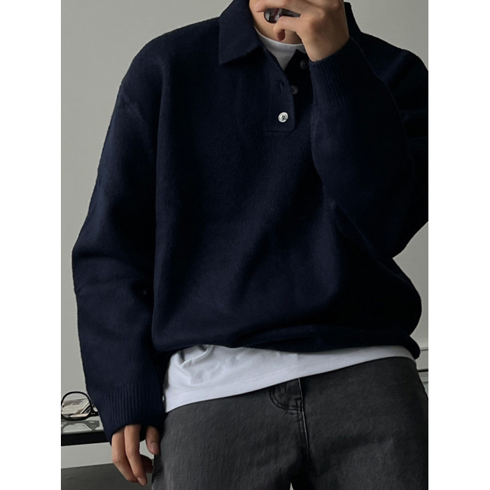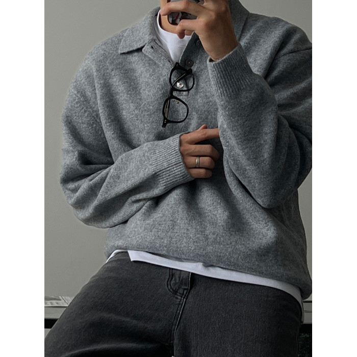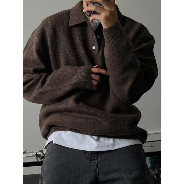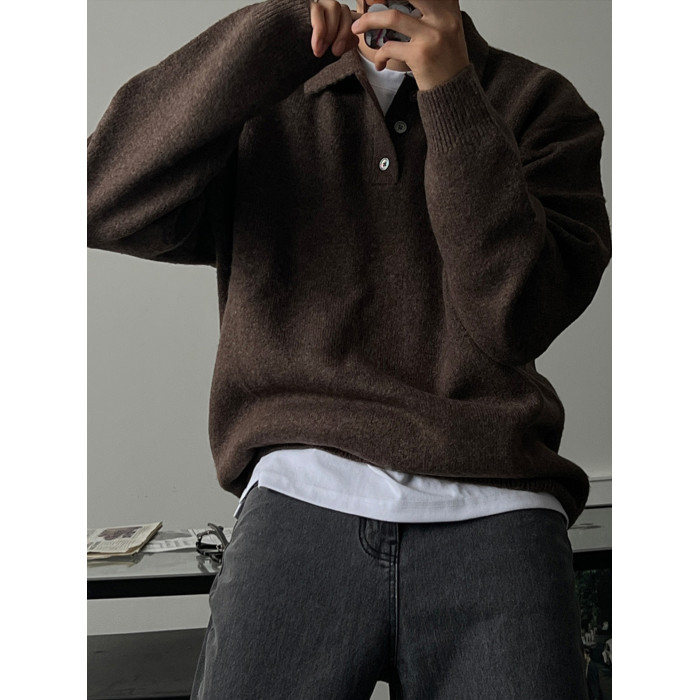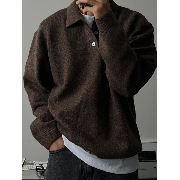 SSUMENAM「老錢 新貴」翻領POLO毛衣男秋季寬松休閒長袖針織衫