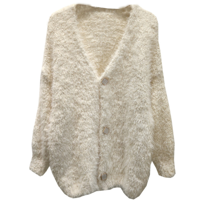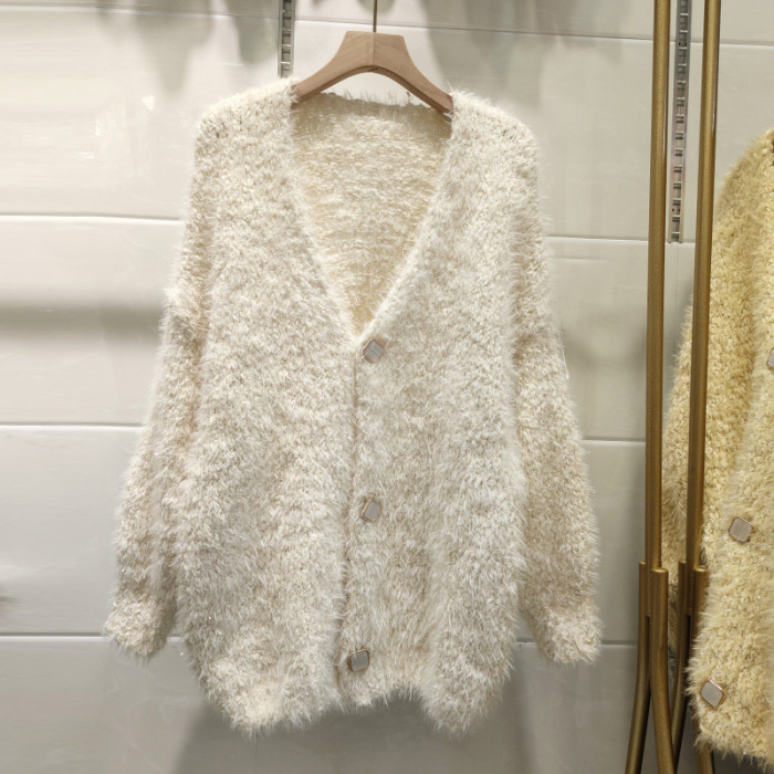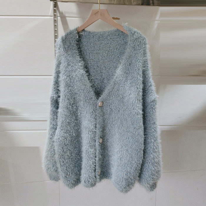 女士毛茸茸毛衣外套女秋款女裝2025年新款針織開衫秋冬慵懶外搭潮