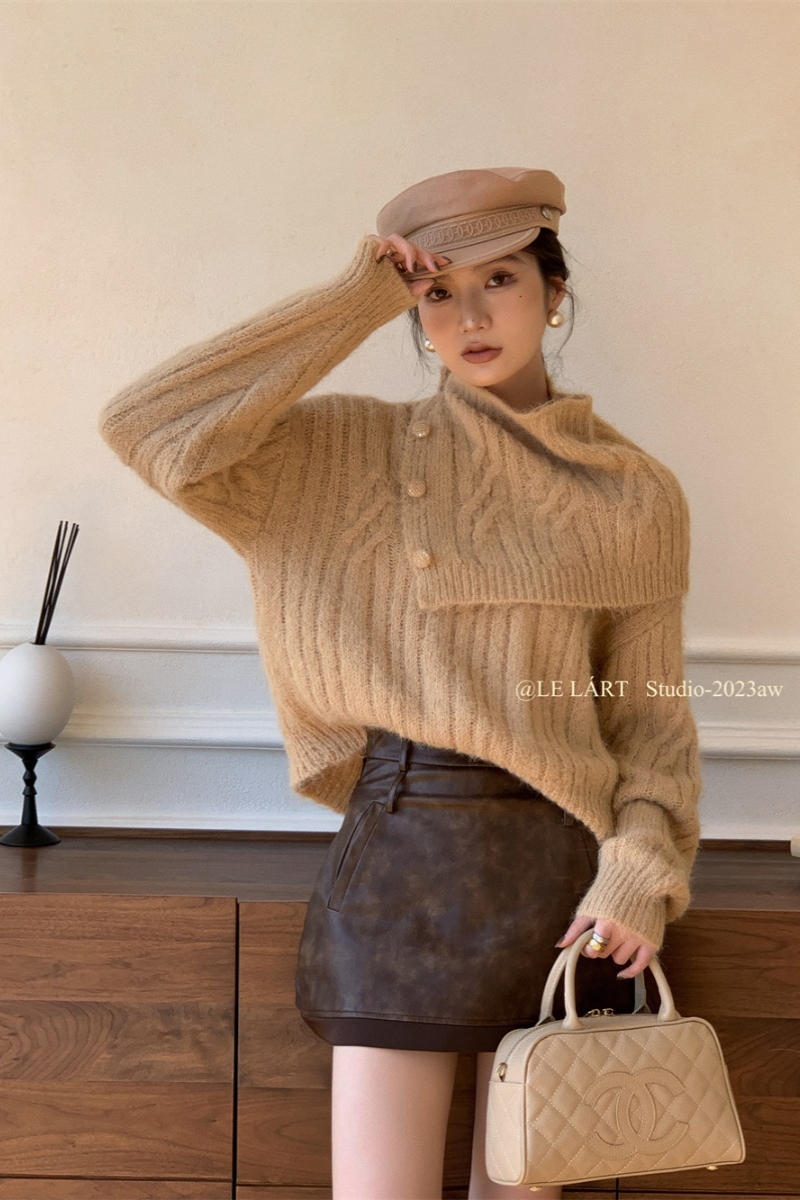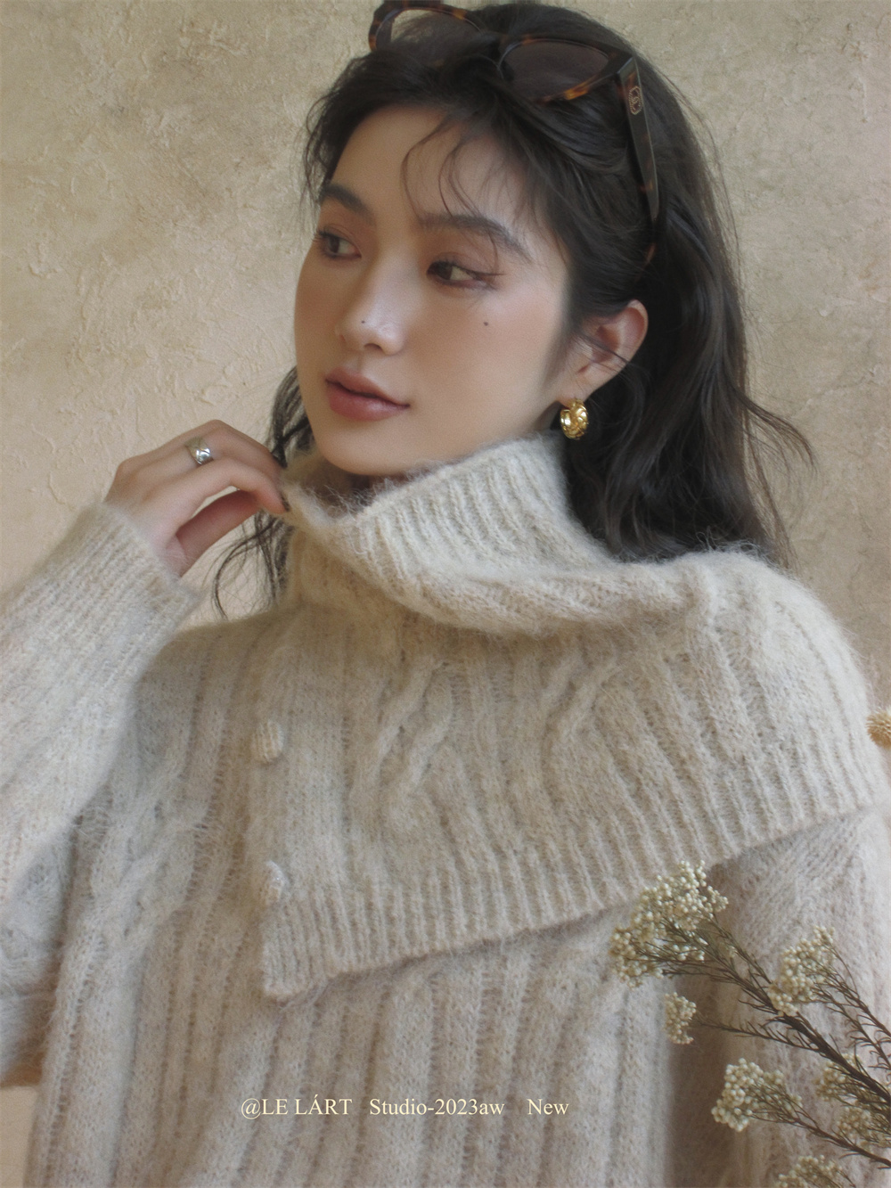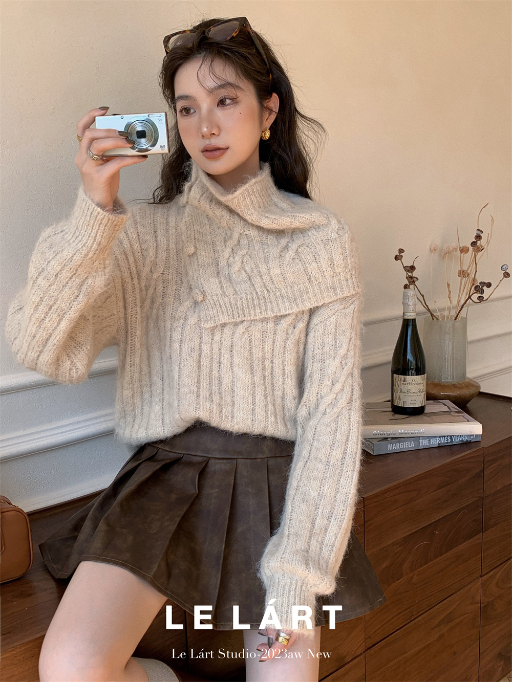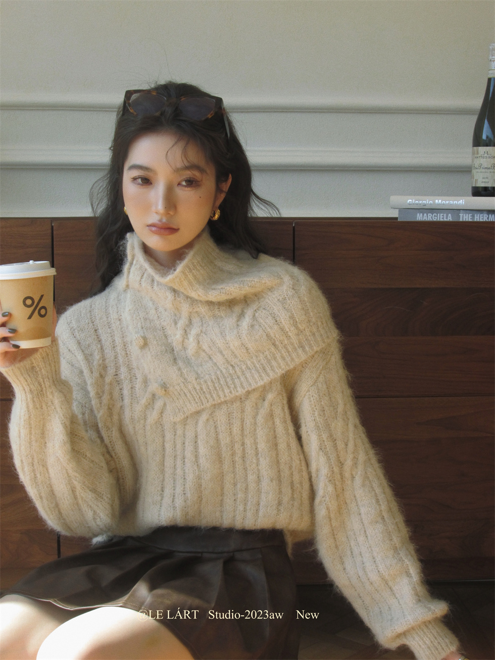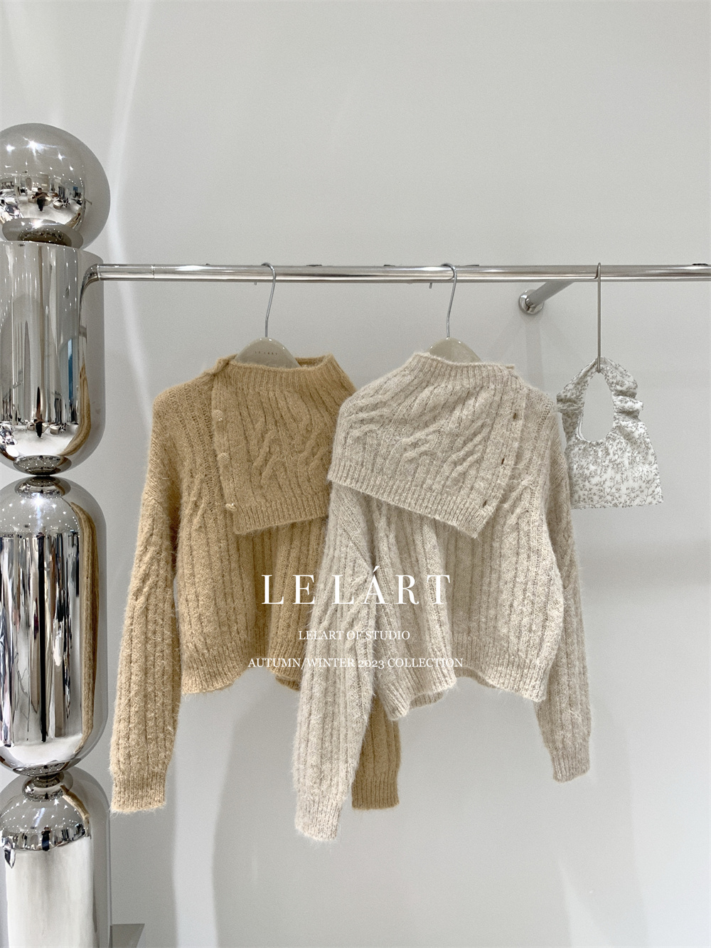2025冬季新款韓版設計感披肩兩件套高領毛衣小衆寬松麻花針織上衣