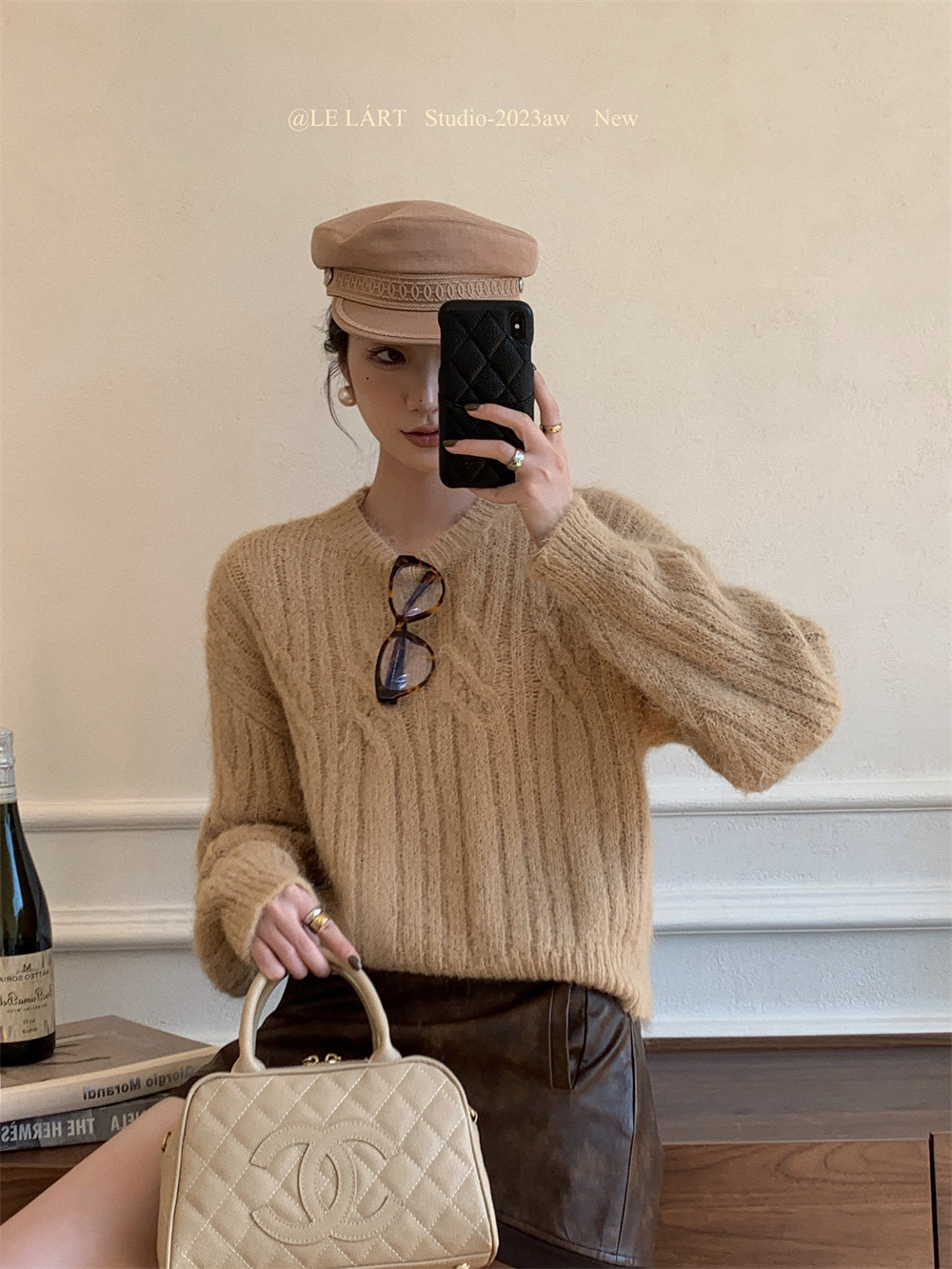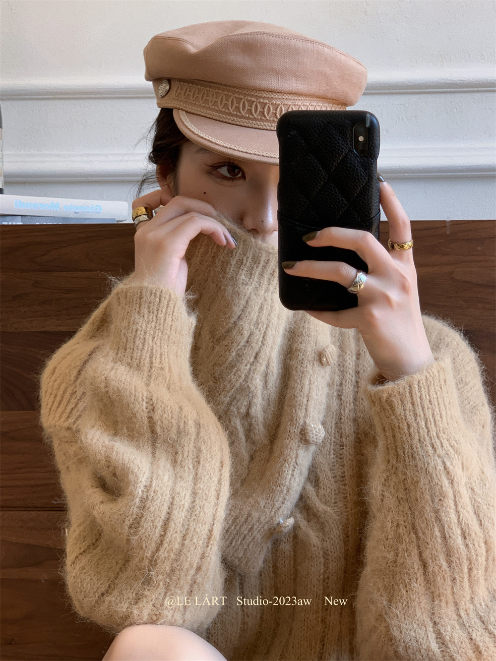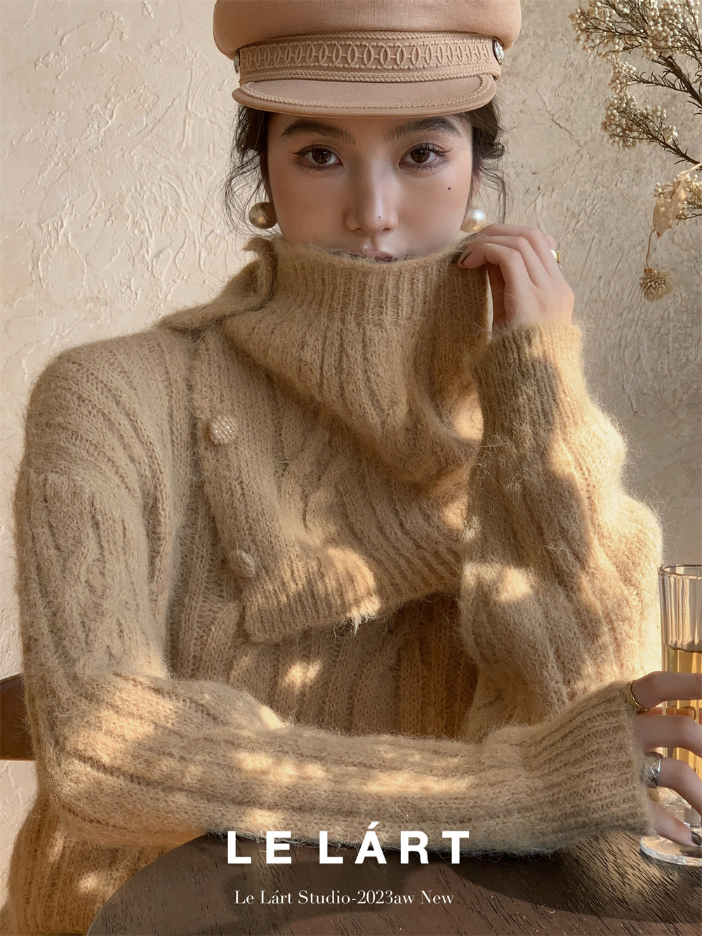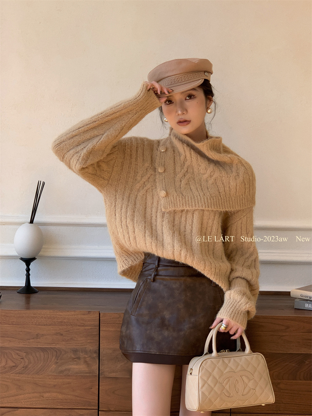 2025冬季新款韓版設計感披肩兩件套高領毛衣小衆寬松麻花針織上衣