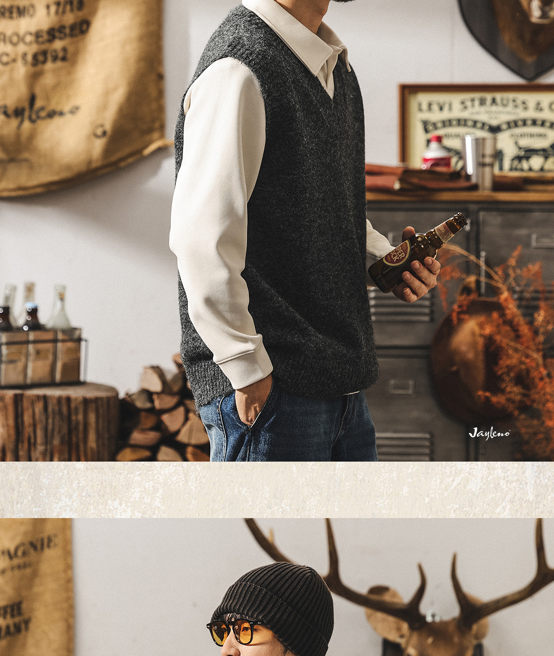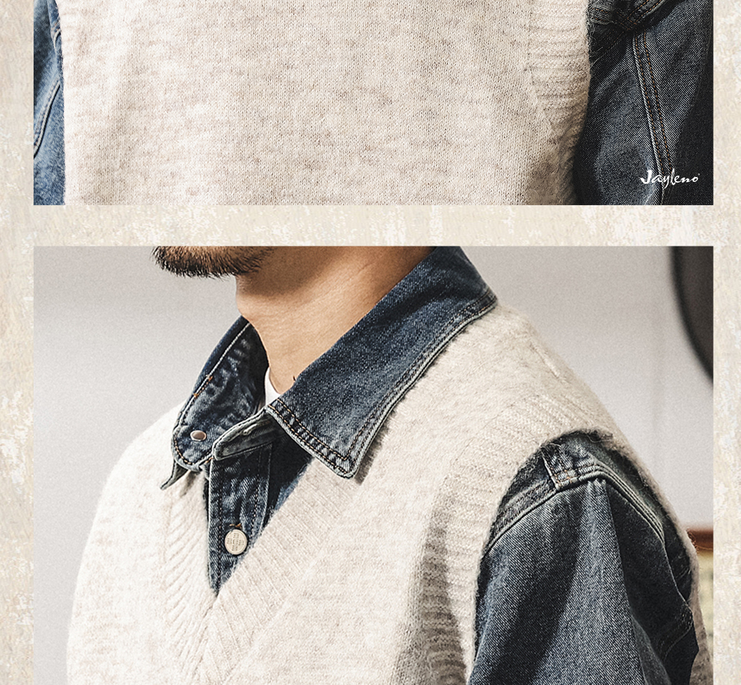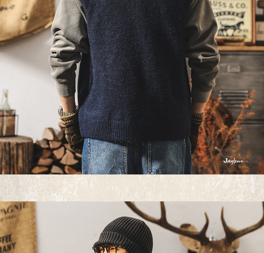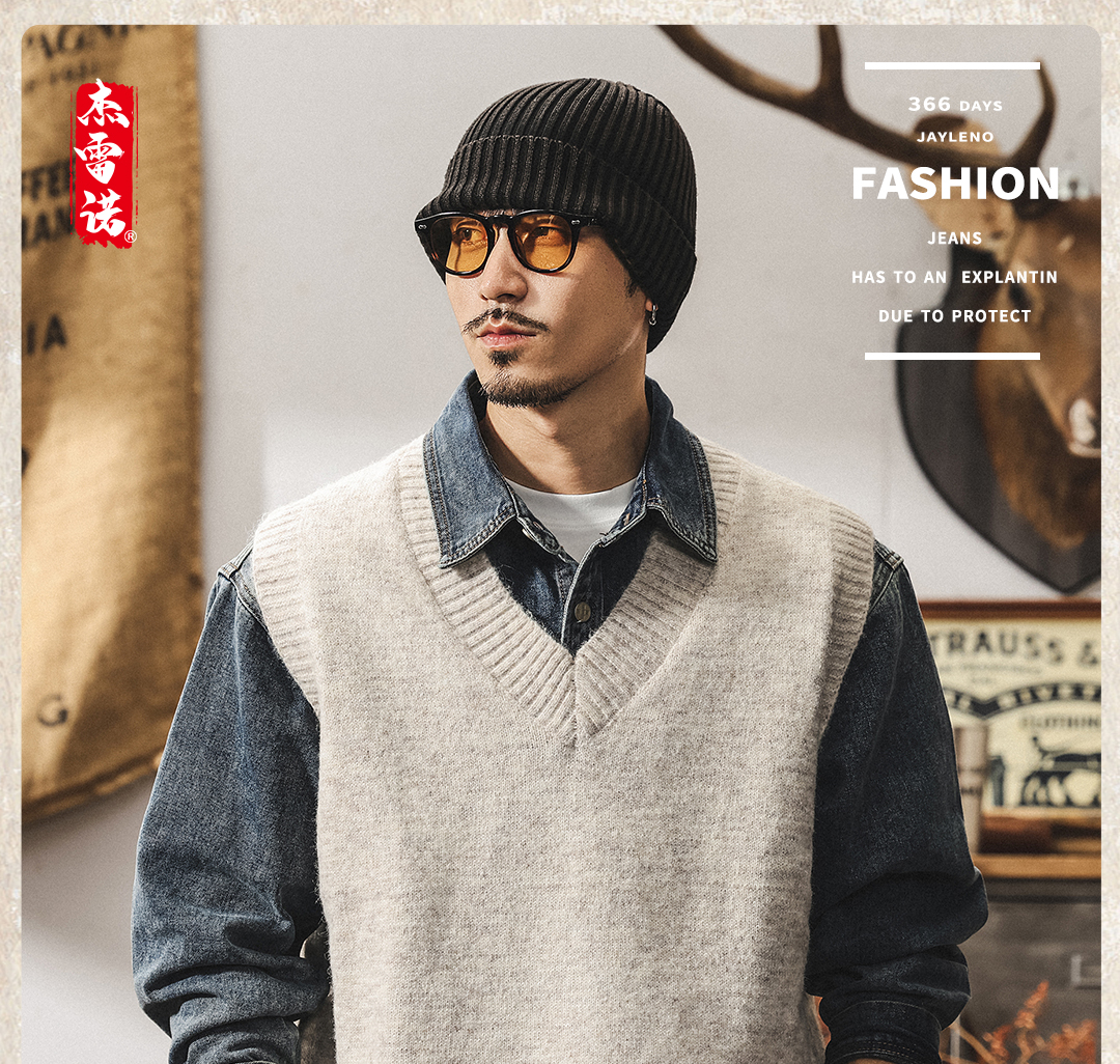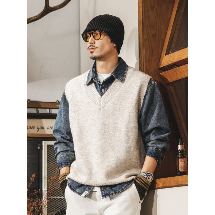 美式復古針織衫背心男冬季保暖羊毛衫寬松無袖毛衣內搭坎肩馬甲男
