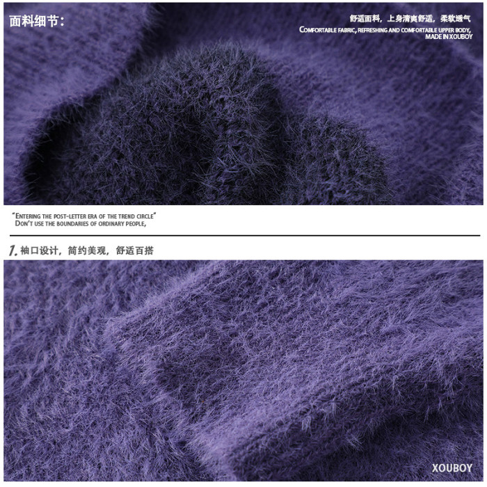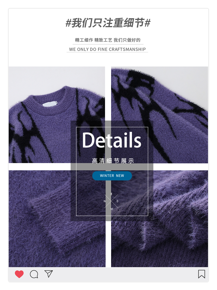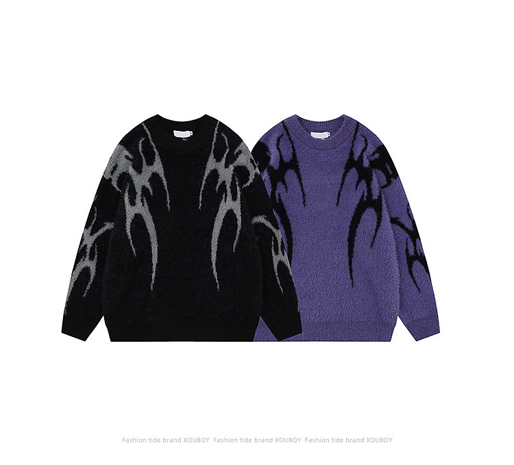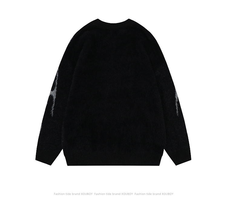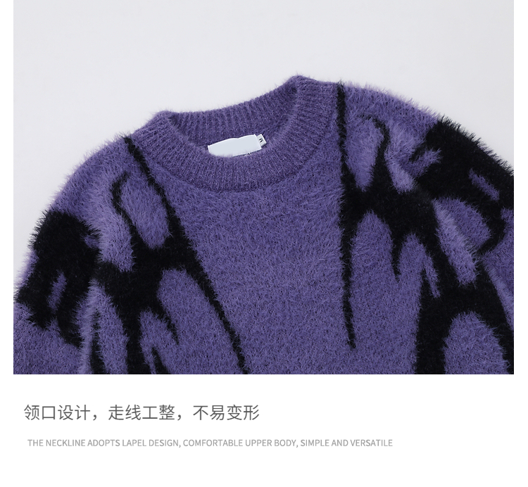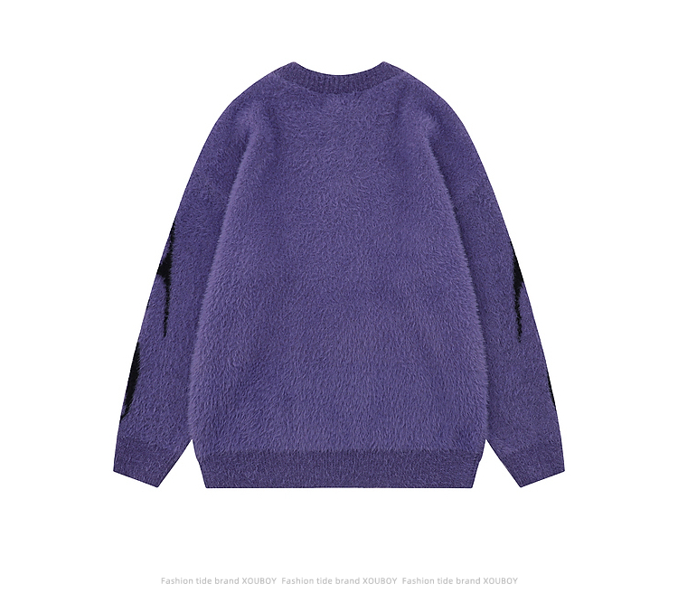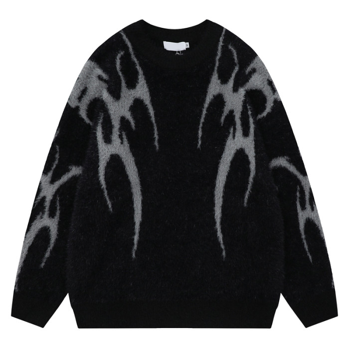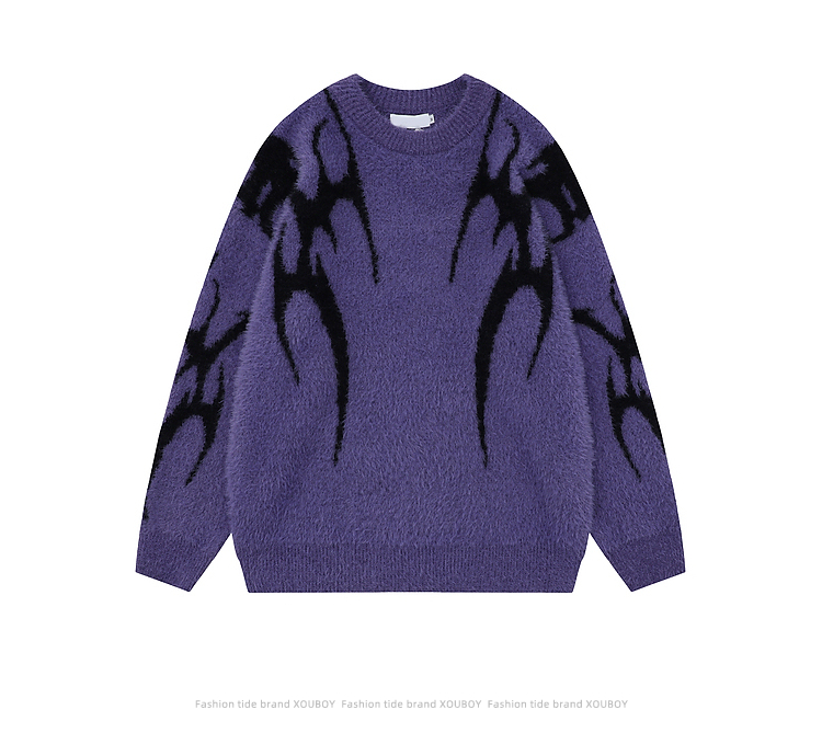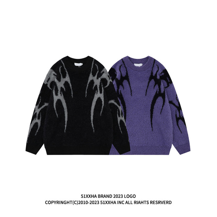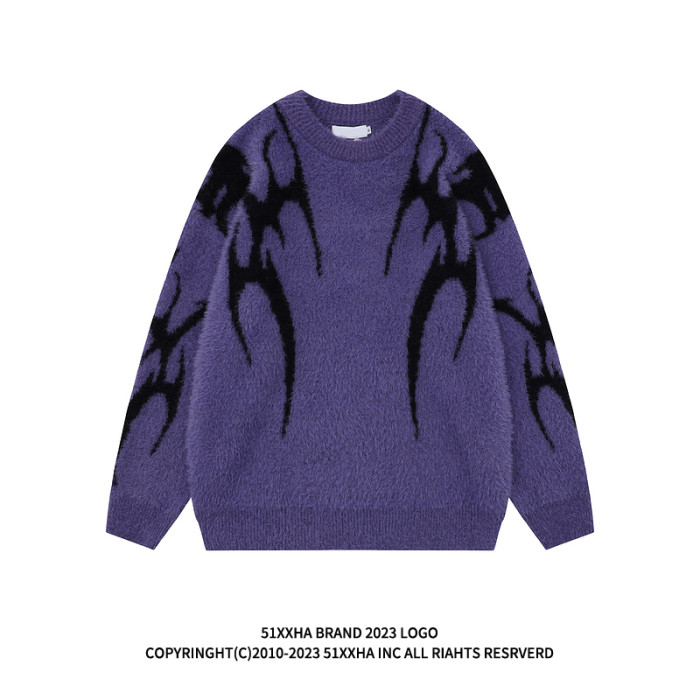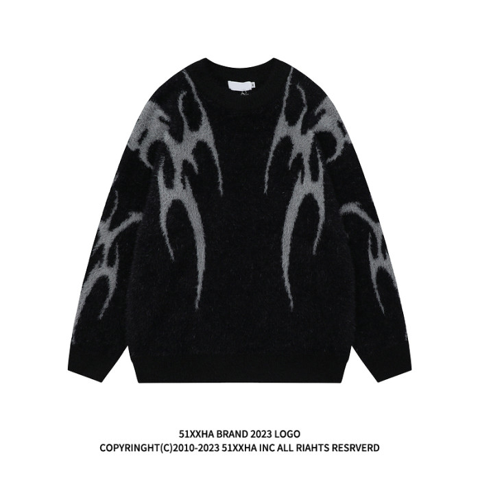 51嘻哈歐美vibe設計感提花馬海毛毛衣男秋冬痞帥炸街情侶針織毛衫