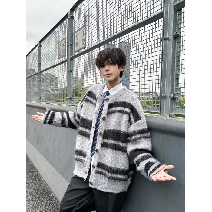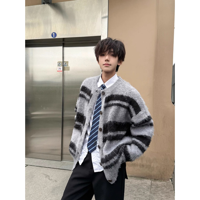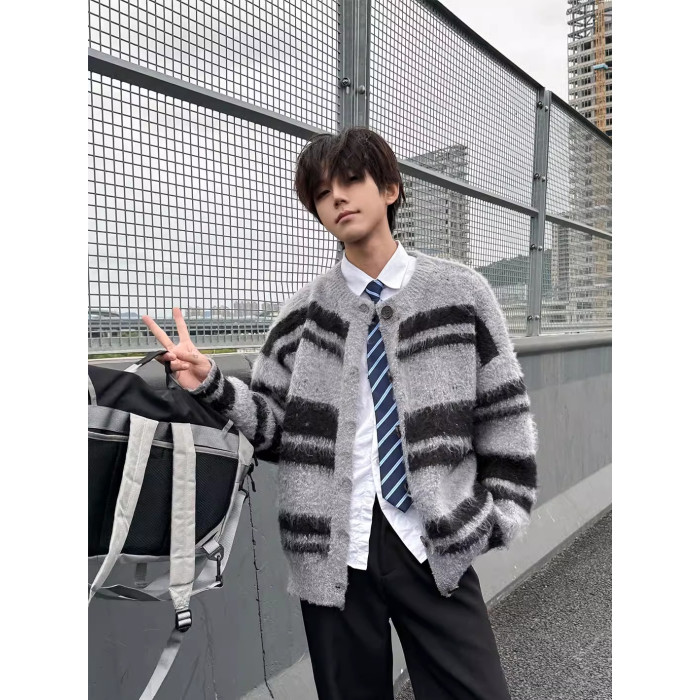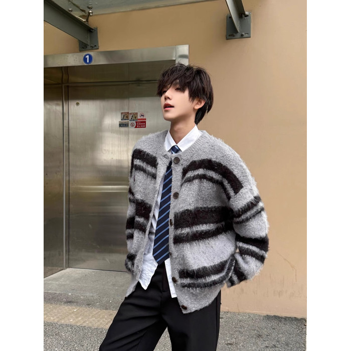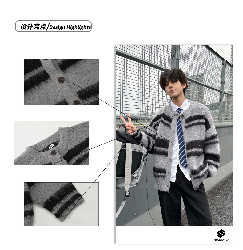 SHAKEYU美式復古軟糯仿貂毛針織衫外套男女秋冬季慵懶風開衫毛衣