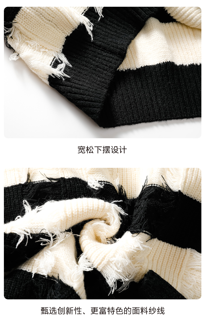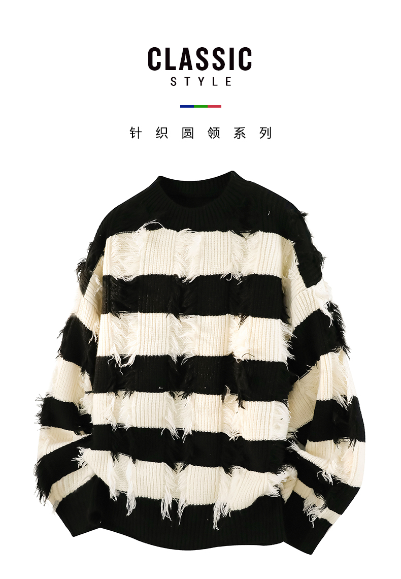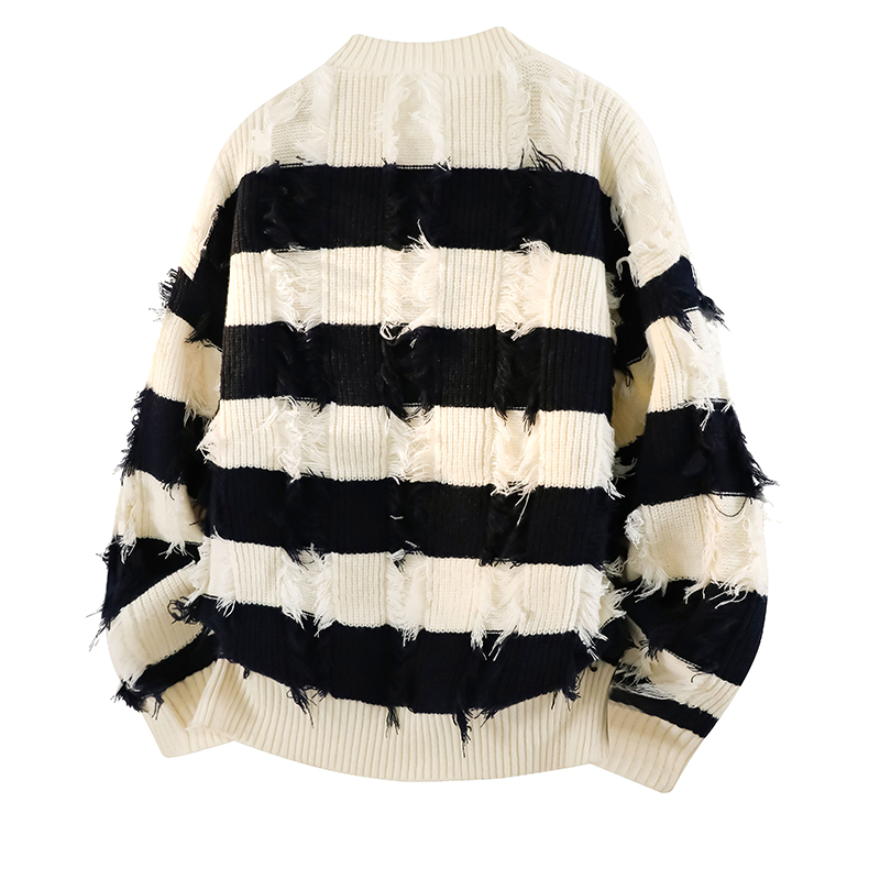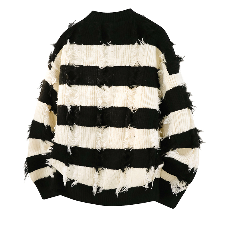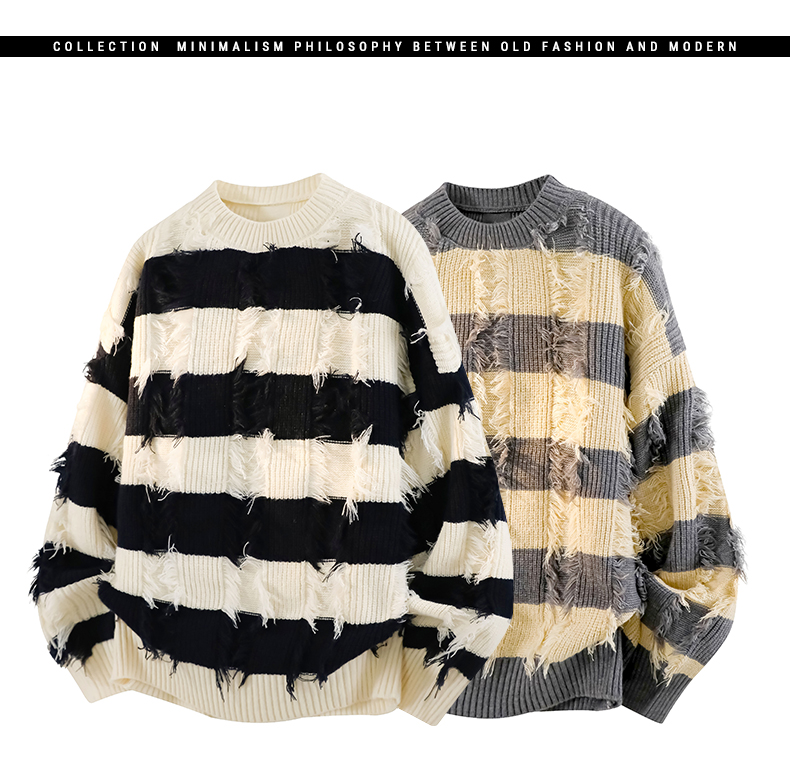 WASSUP ERIKA秋冬季潮流風新款毛衫男士條紋拼色流蘇設計感針織衫