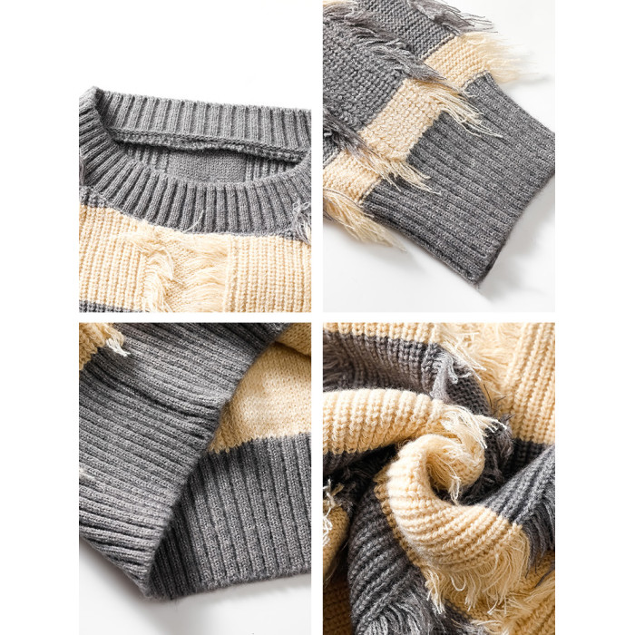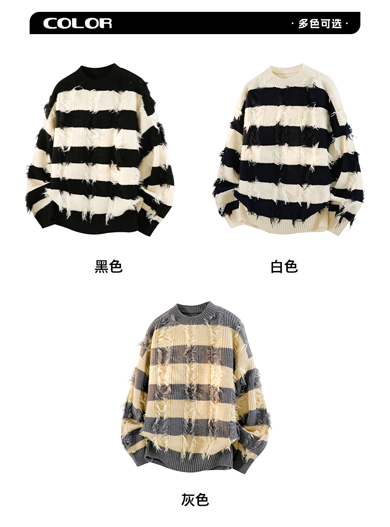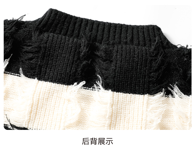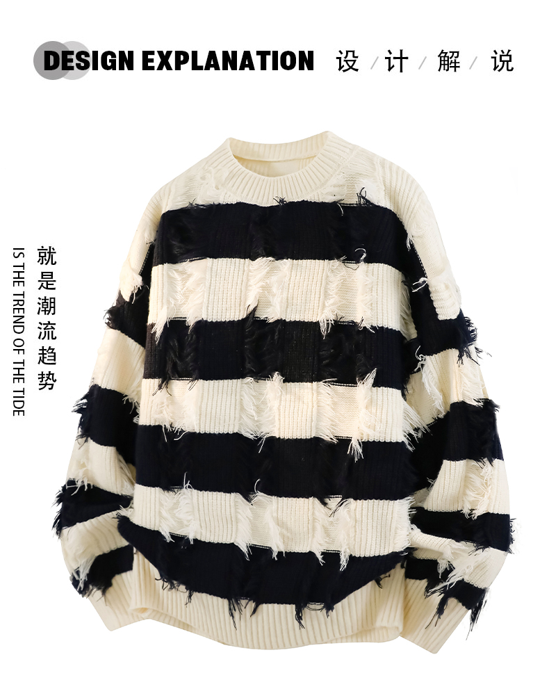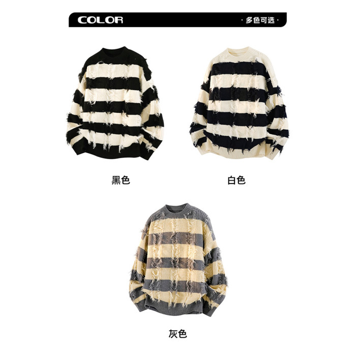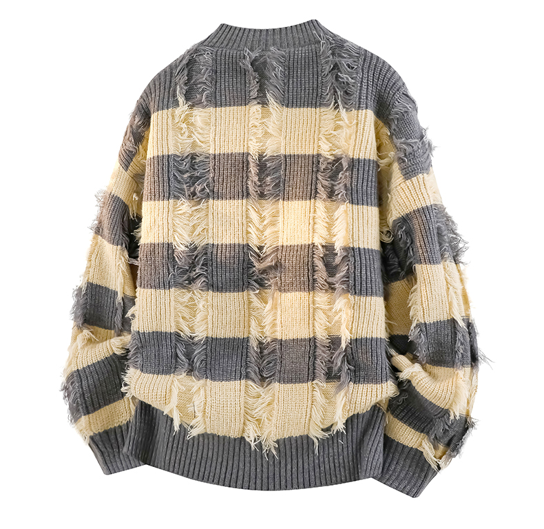 WASSUP ERIKA秋冬季潮流風新款毛衫男士條紋拼色流蘇設計感針織衫