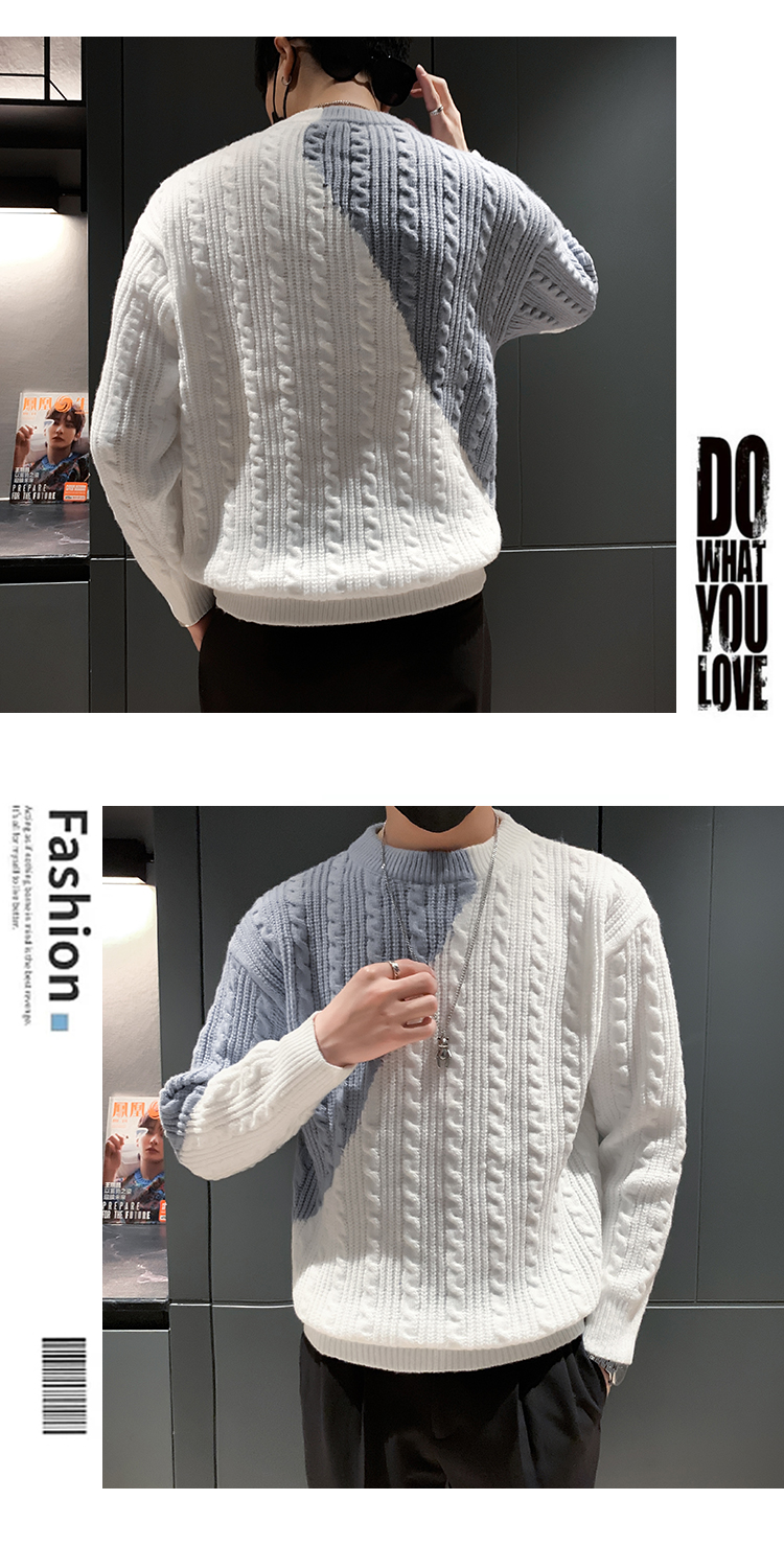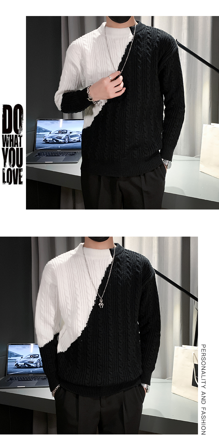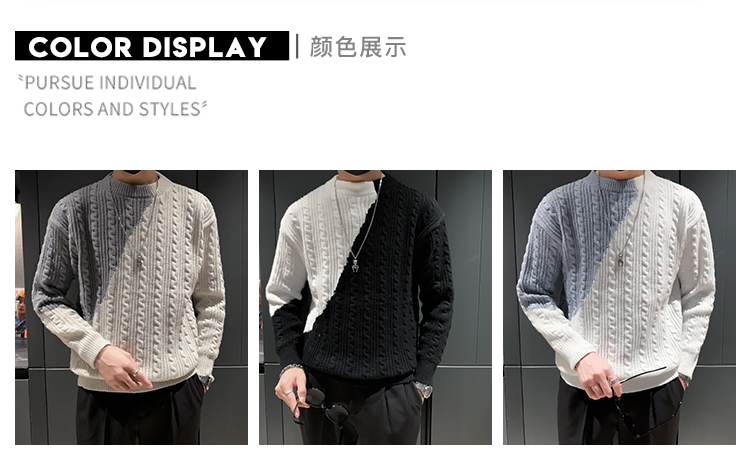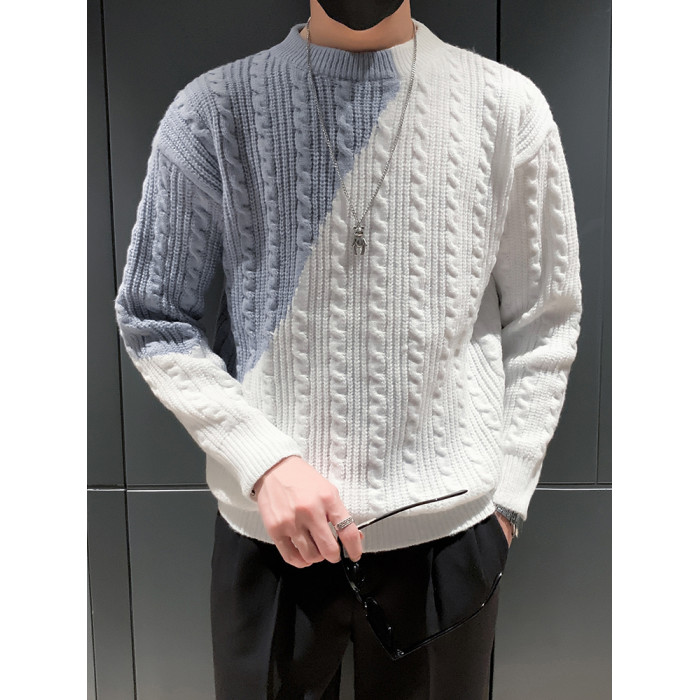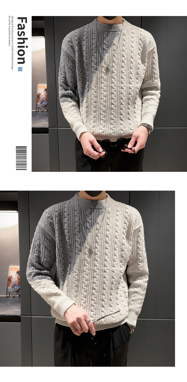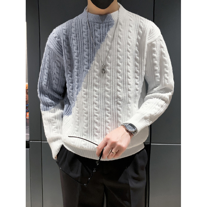 半高領毛衣男冬季慵懶風套頭線衣潮牌寬松韓版拼色打底圓領針織衫