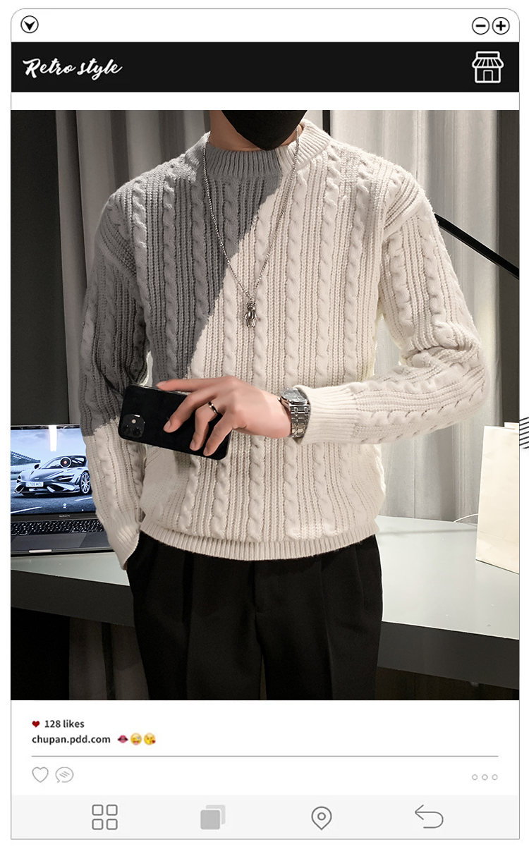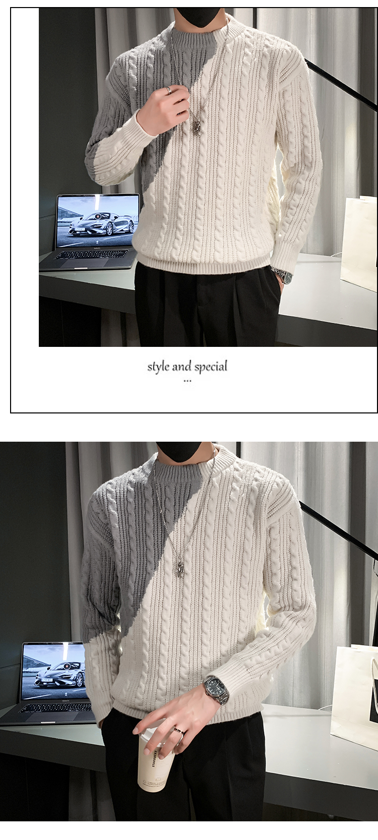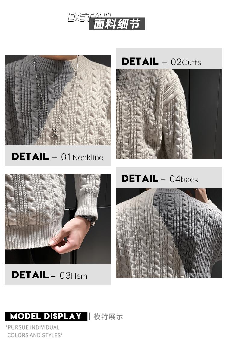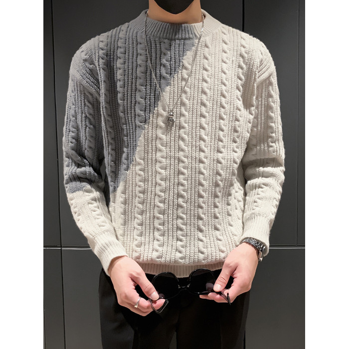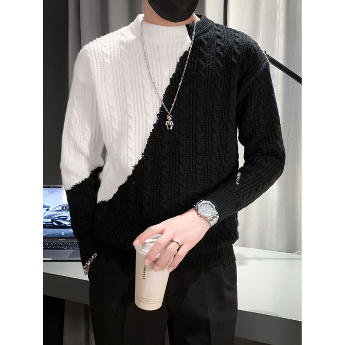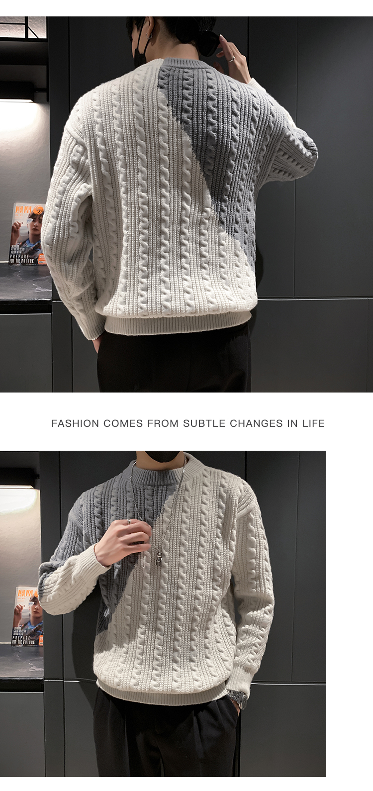 半高領毛衣男冬季慵懶風套頭線衣潮牌寬松韓版拼色打底圓領針織衫