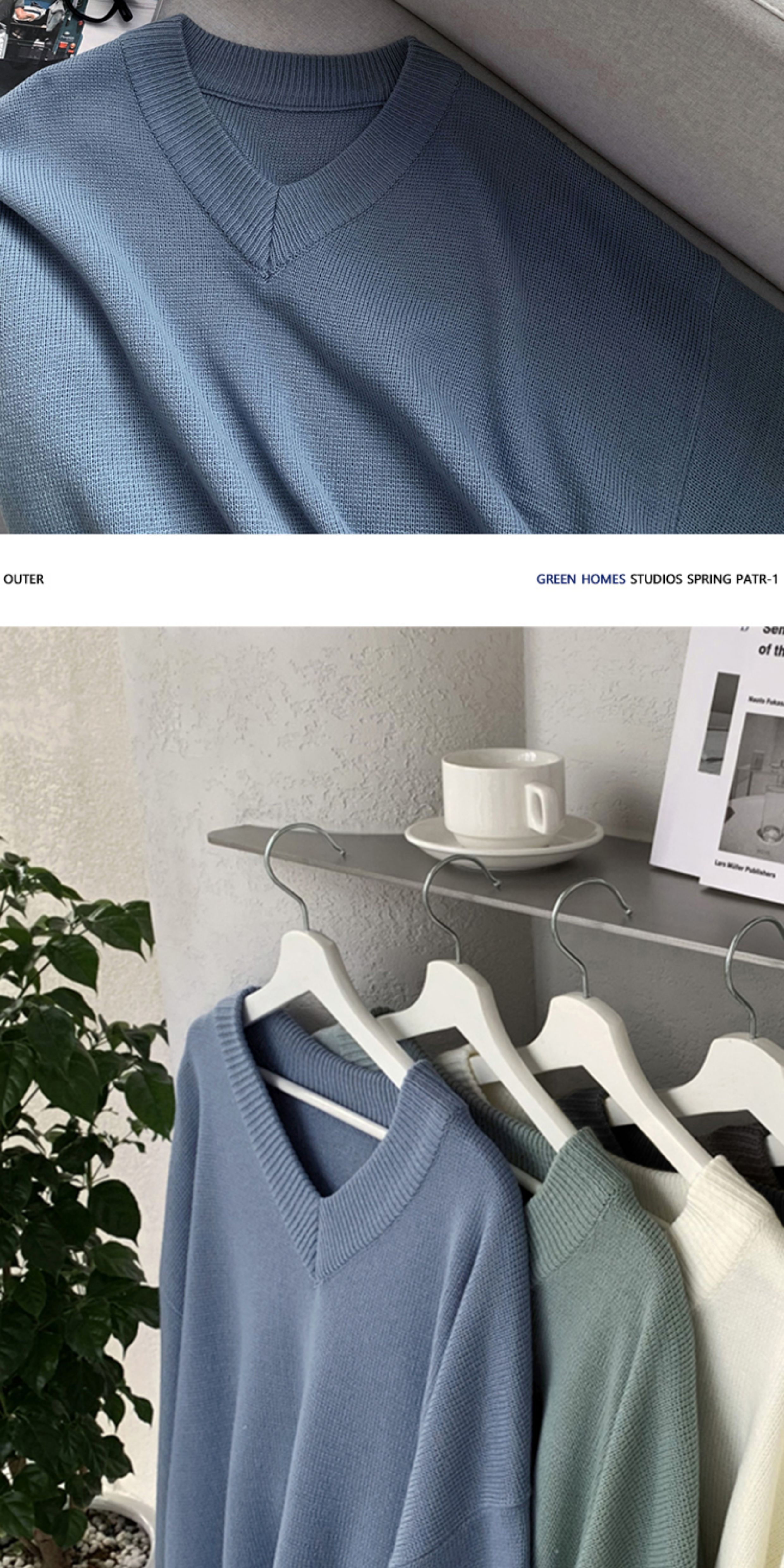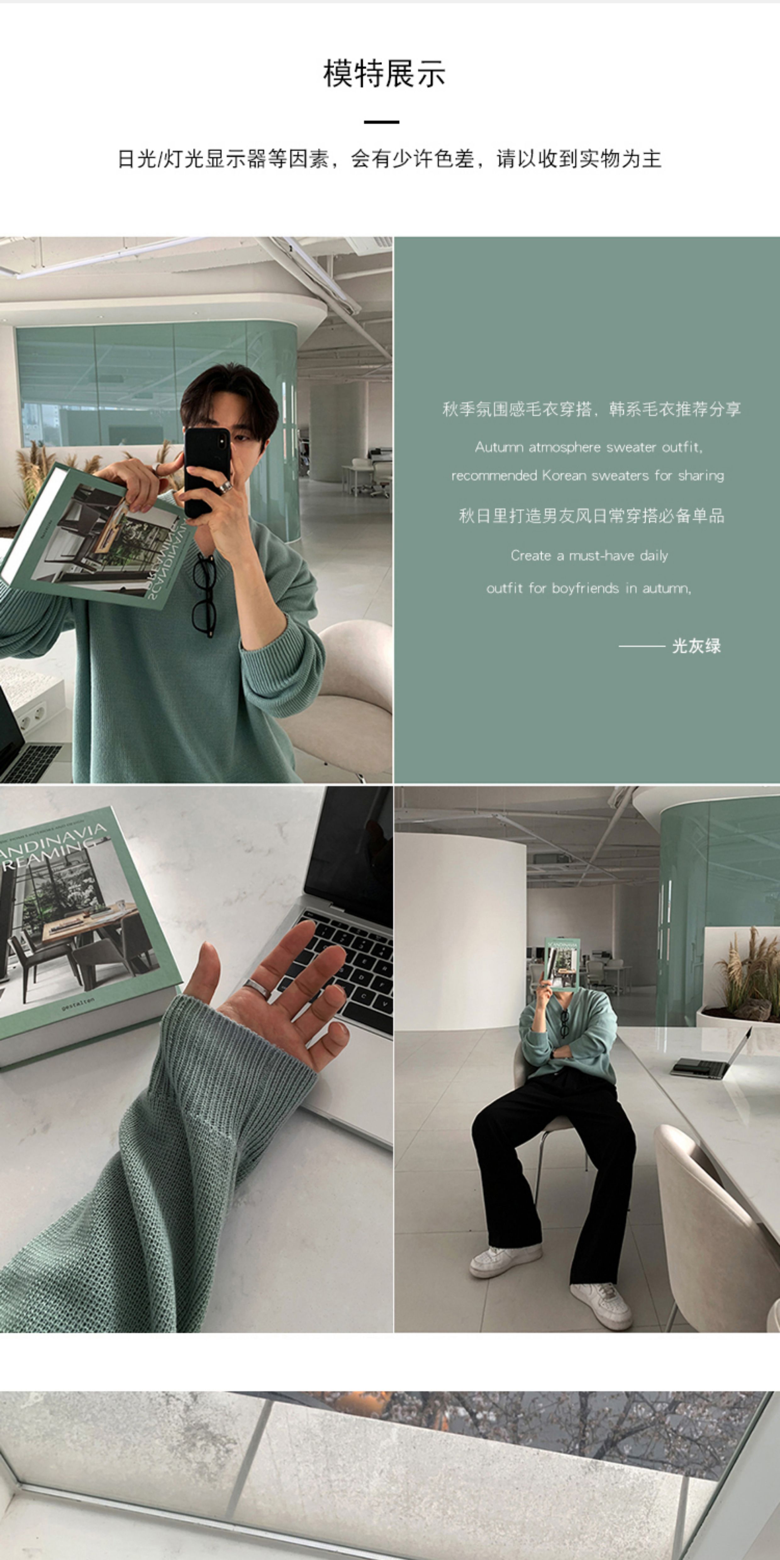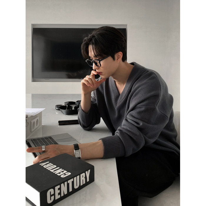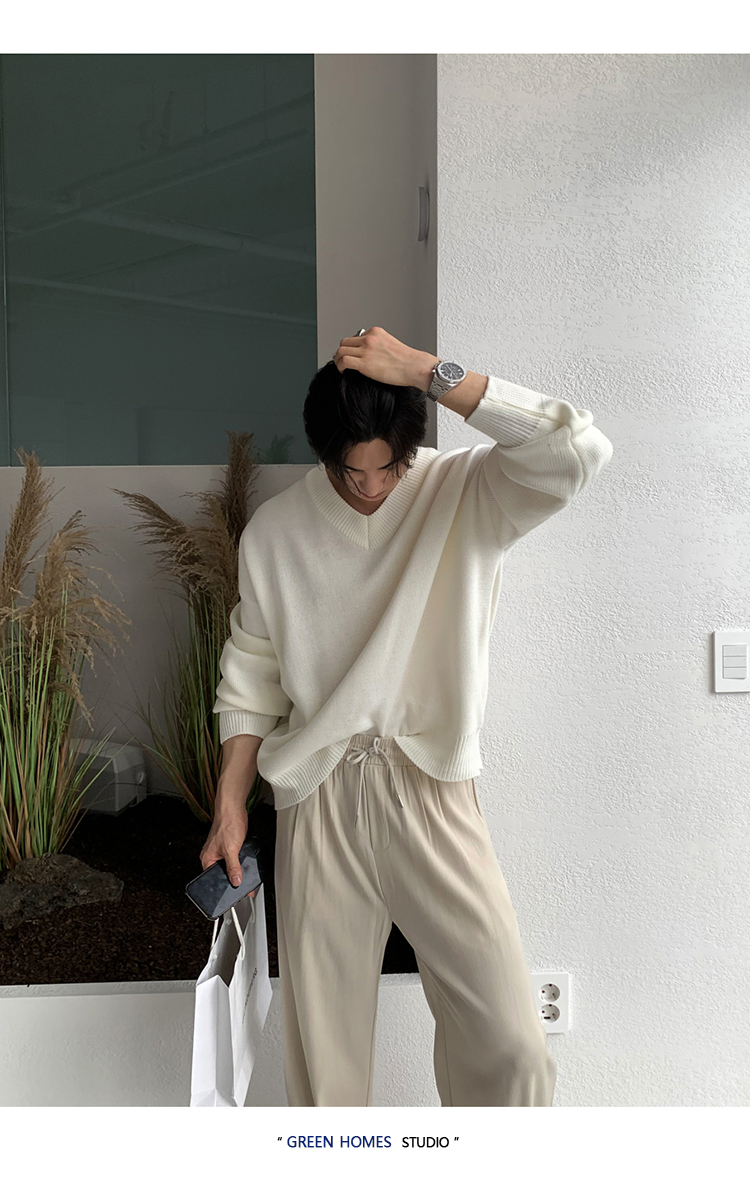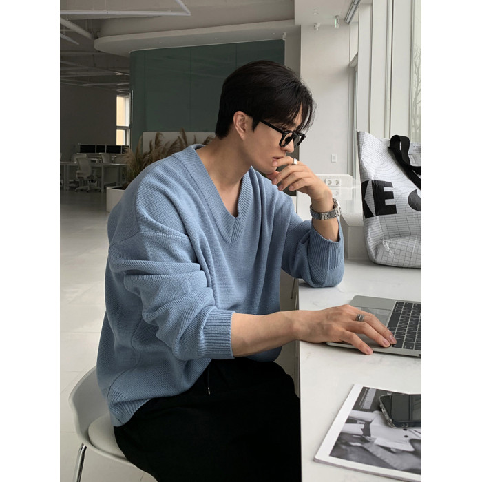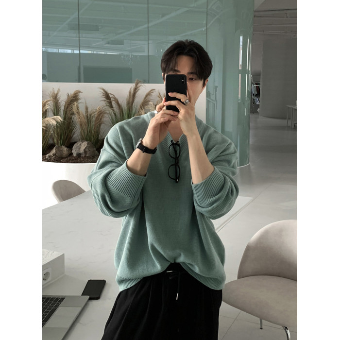 碧捨秋冬新款韓版潮流寬松INS多巴胺色毛衣V領設計感百搭針織衫男