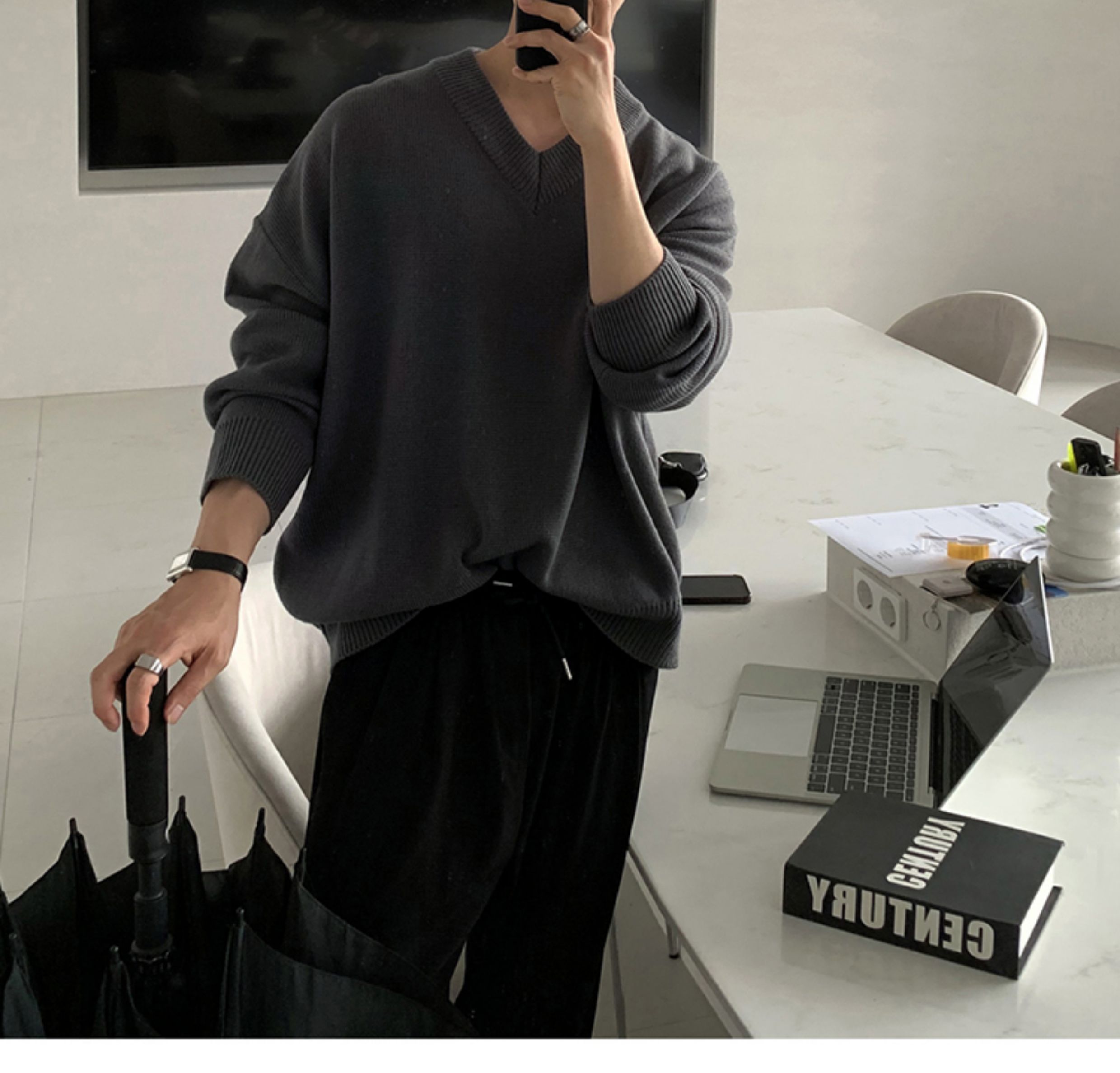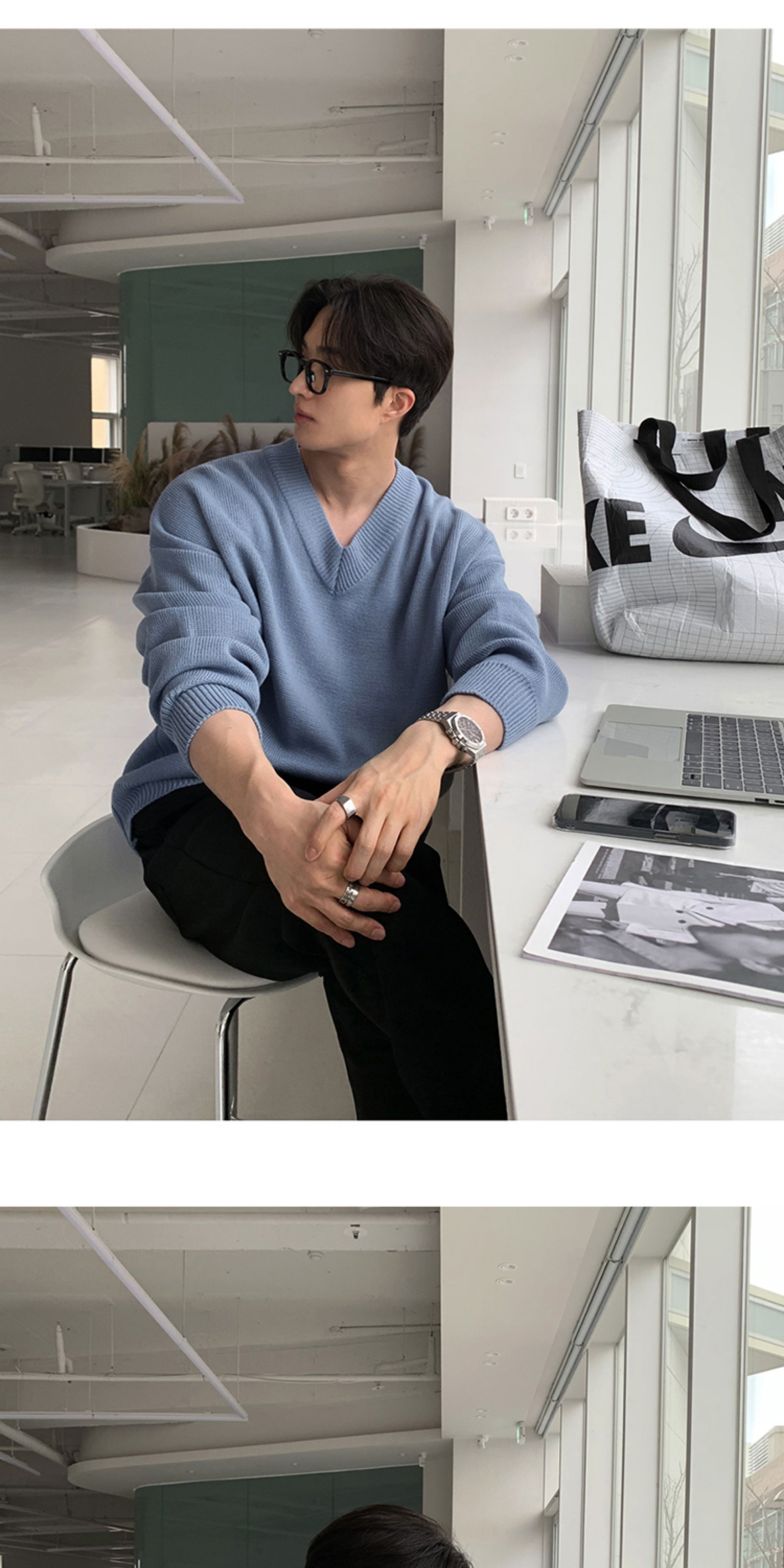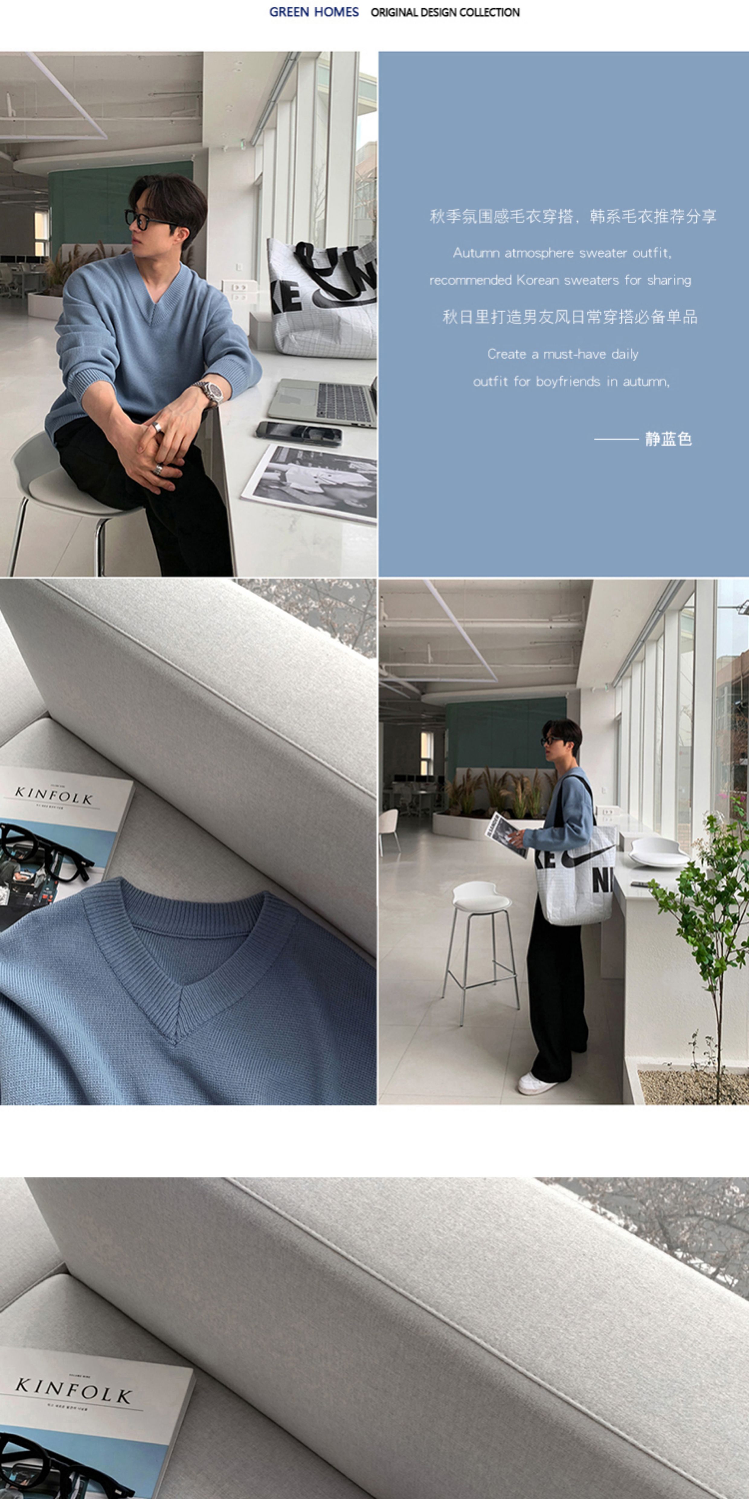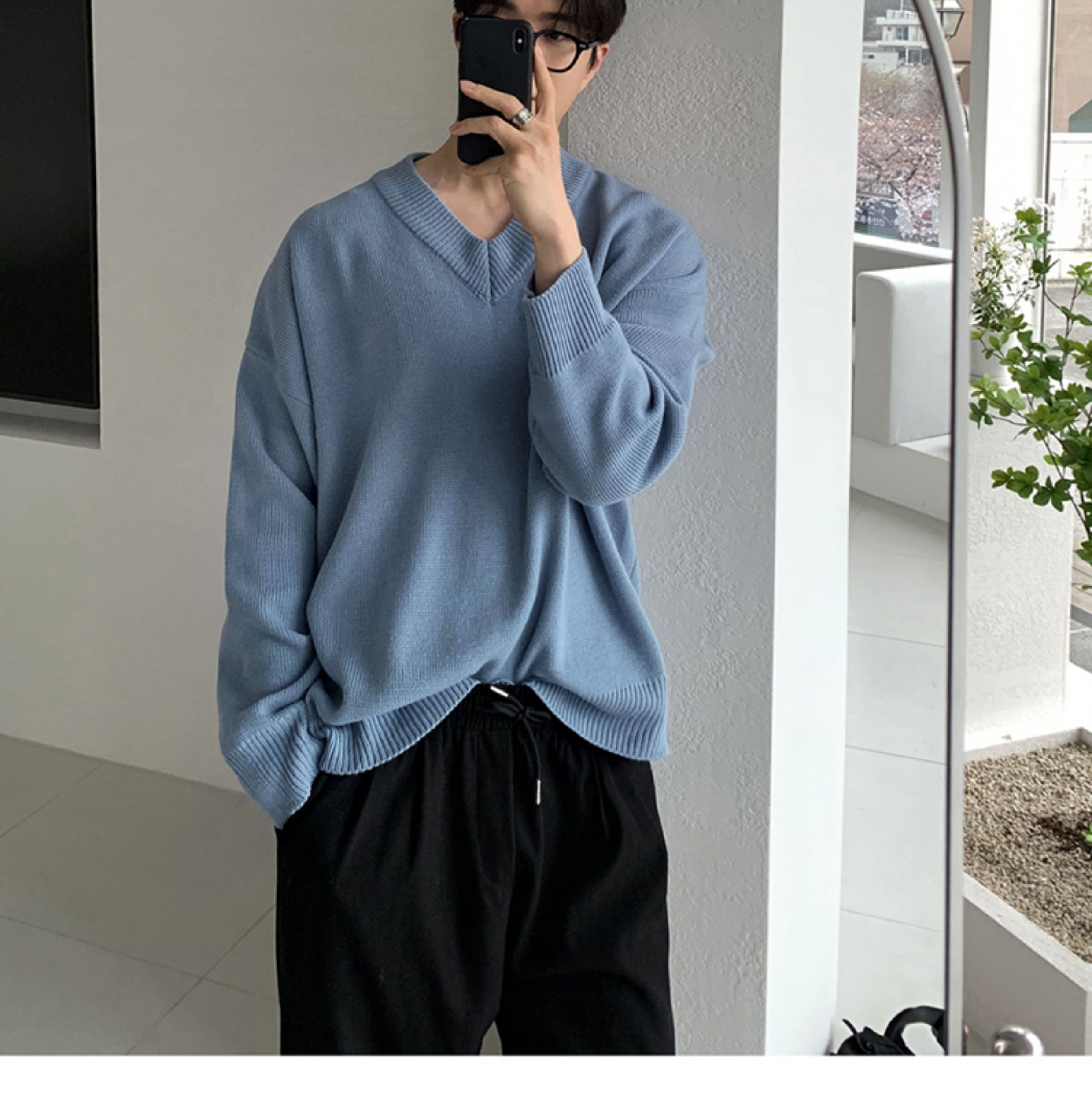 碧捨秋冬新款韓版潮流寬松INS多巴胺色毛衣V領設計感百搭針織衫男