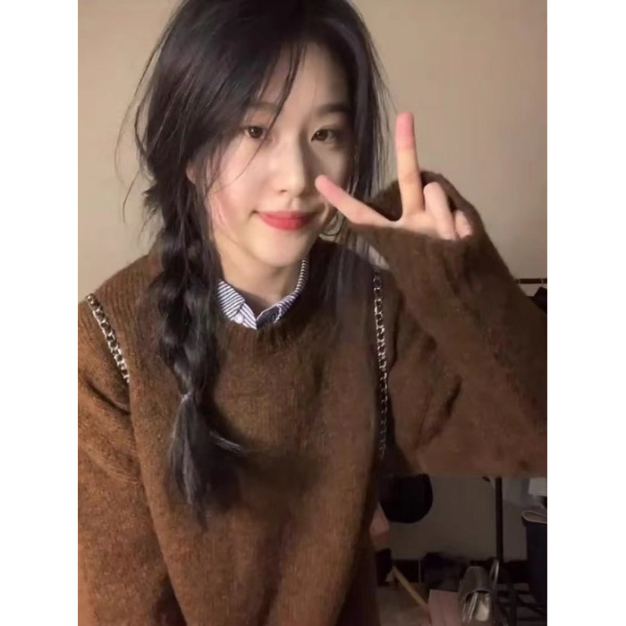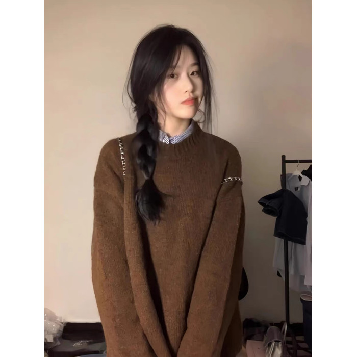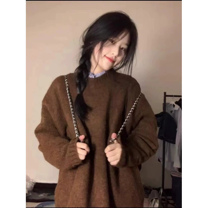咖色毛衣女款2025新款慵懶風軟糯寬松秋冬套頭復古日系針織上衣厚