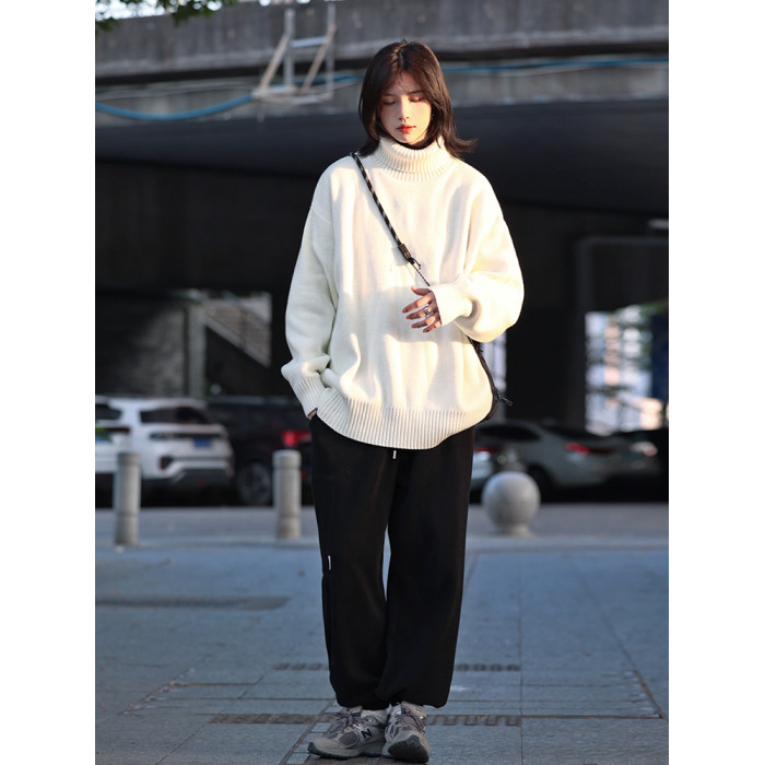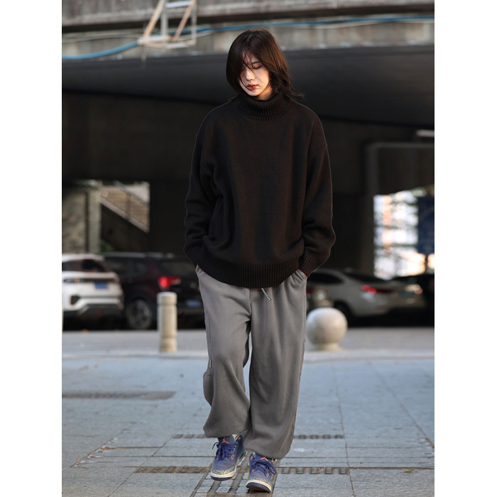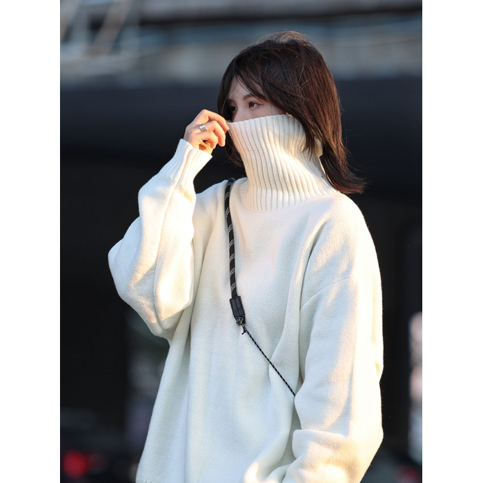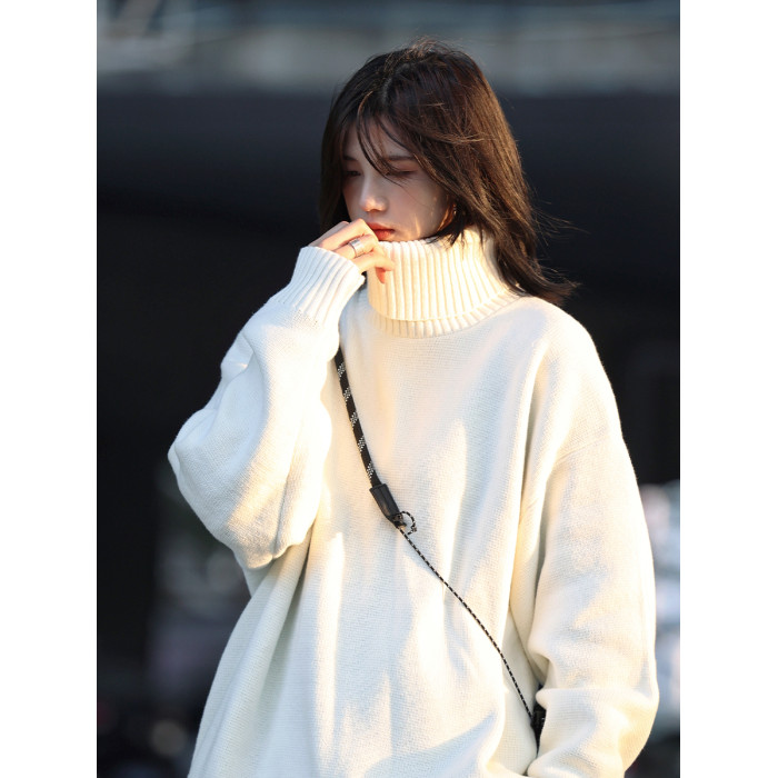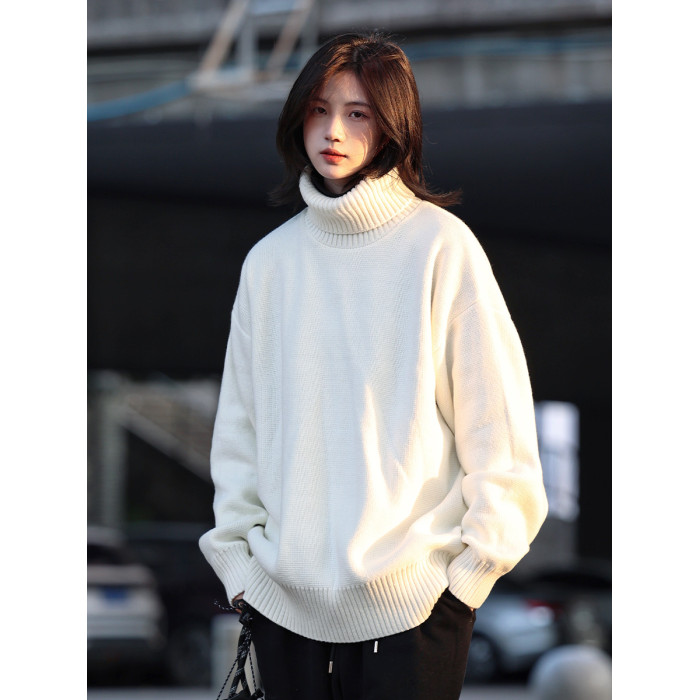 你初戀老王高領毛衣男針織打底衫長袖寬松復古純色百搭情侶同款女