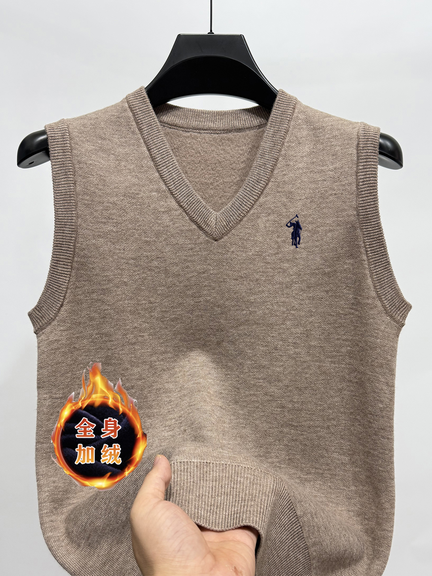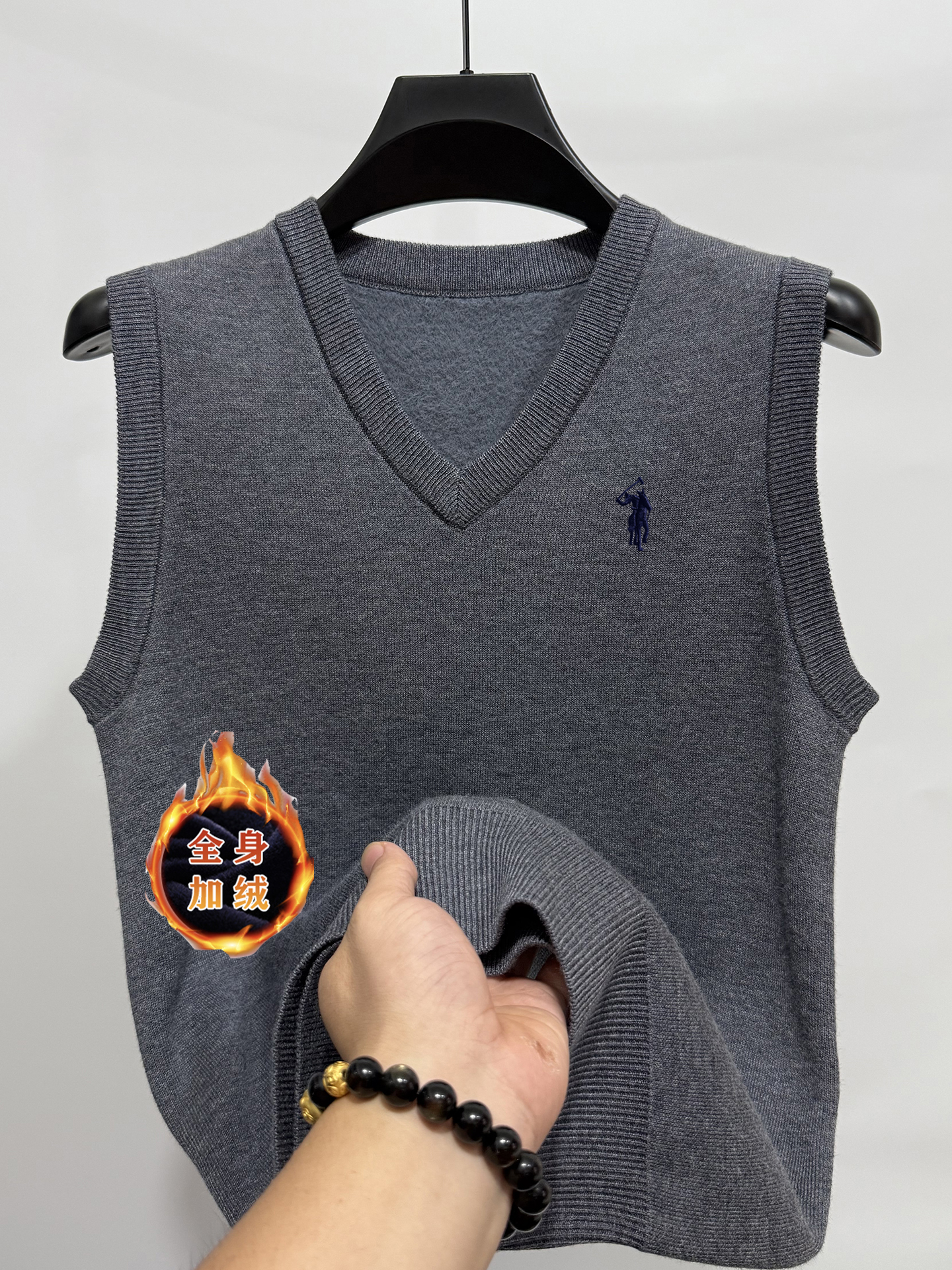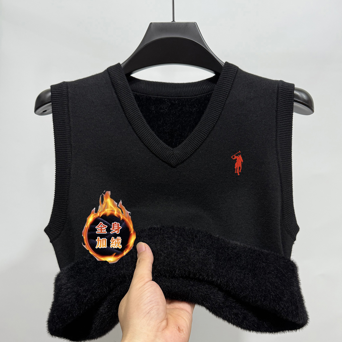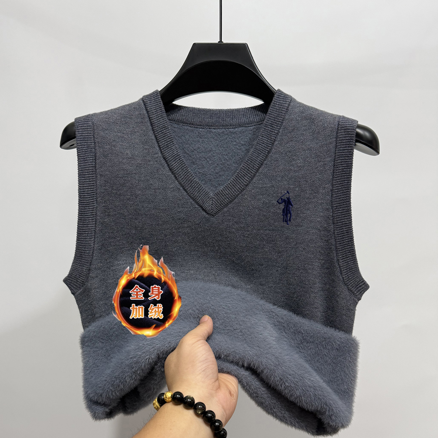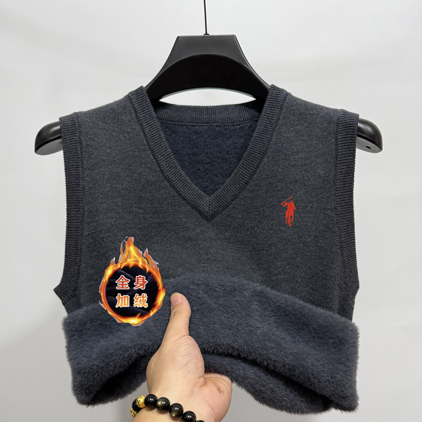 羊毛衫男加絨背心柏拉圖保羅秋冬馬甲中年V領無袖加厚羊絨針織衫