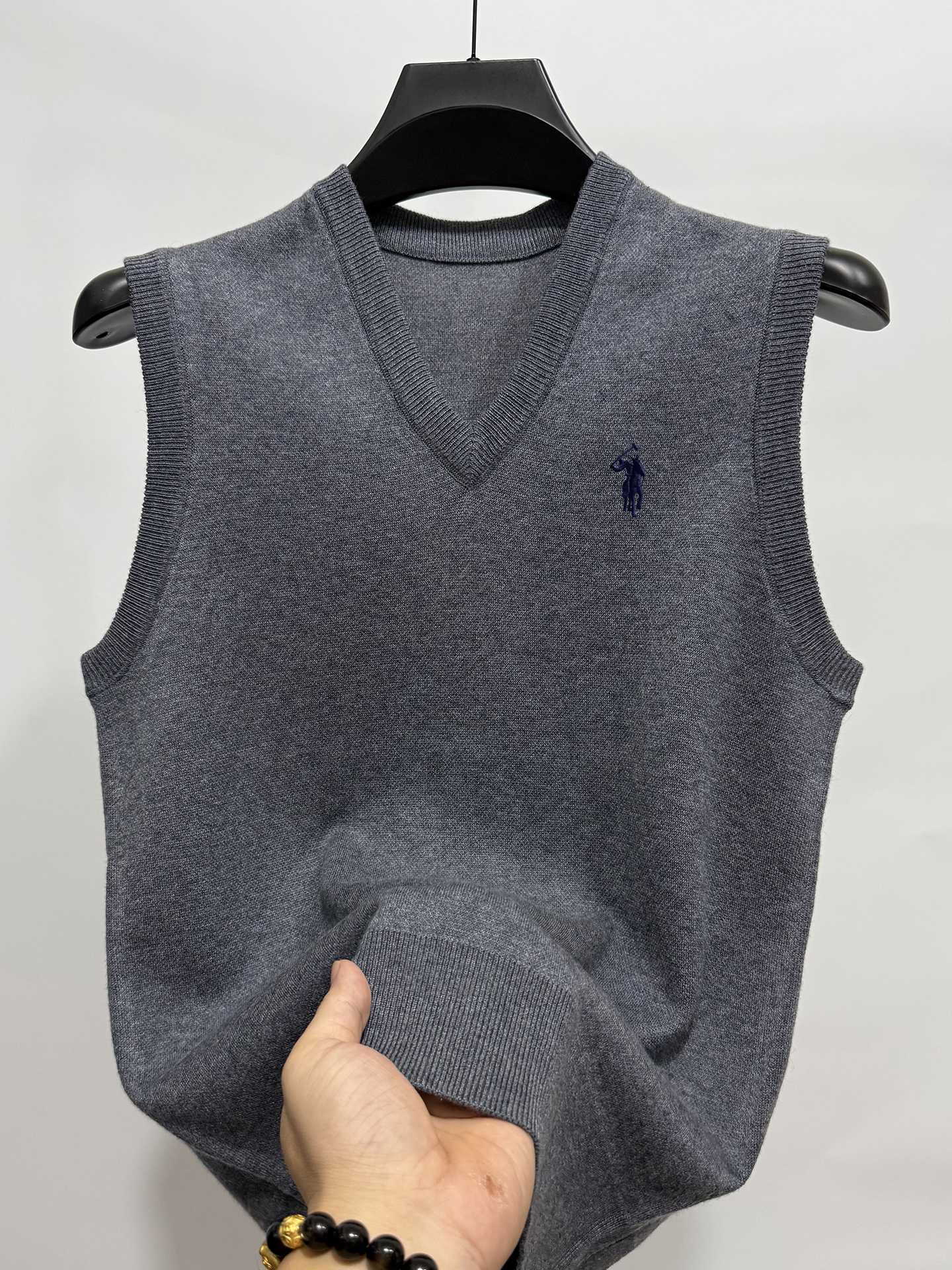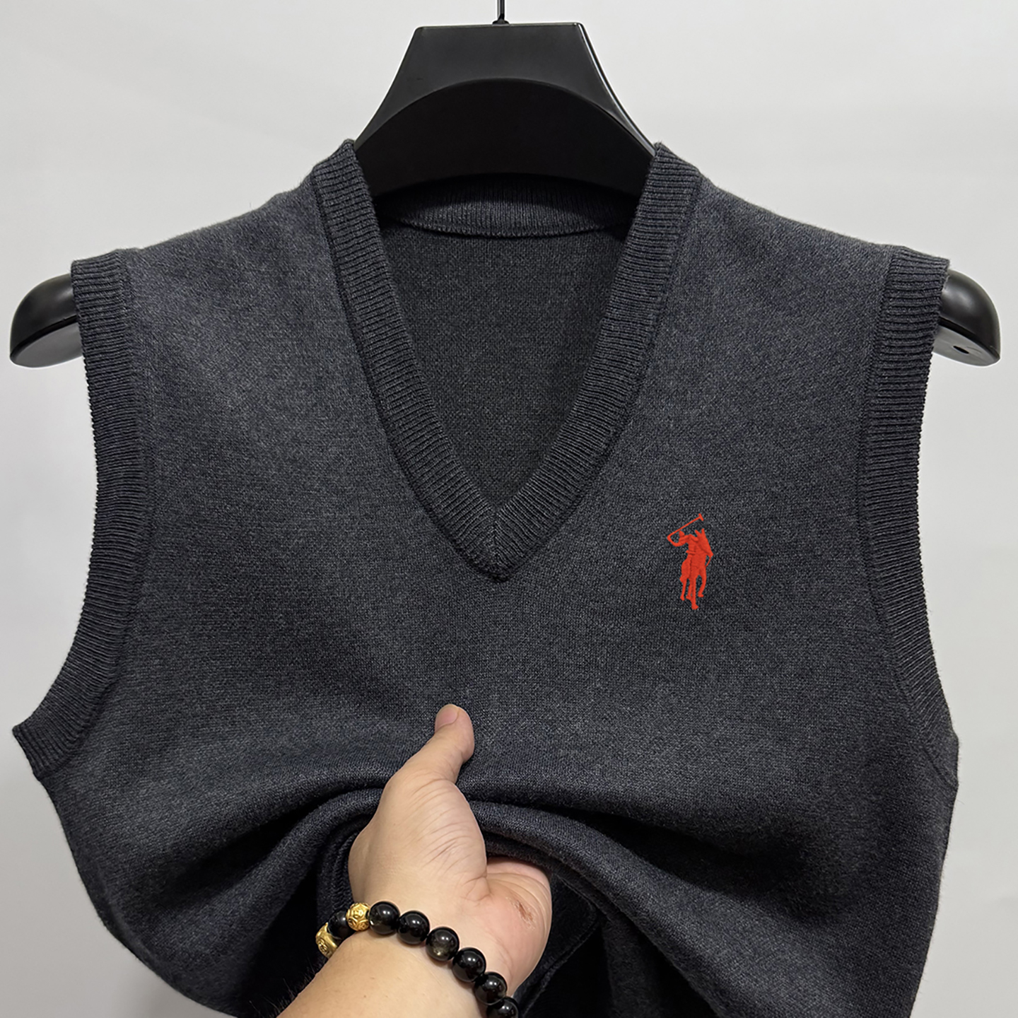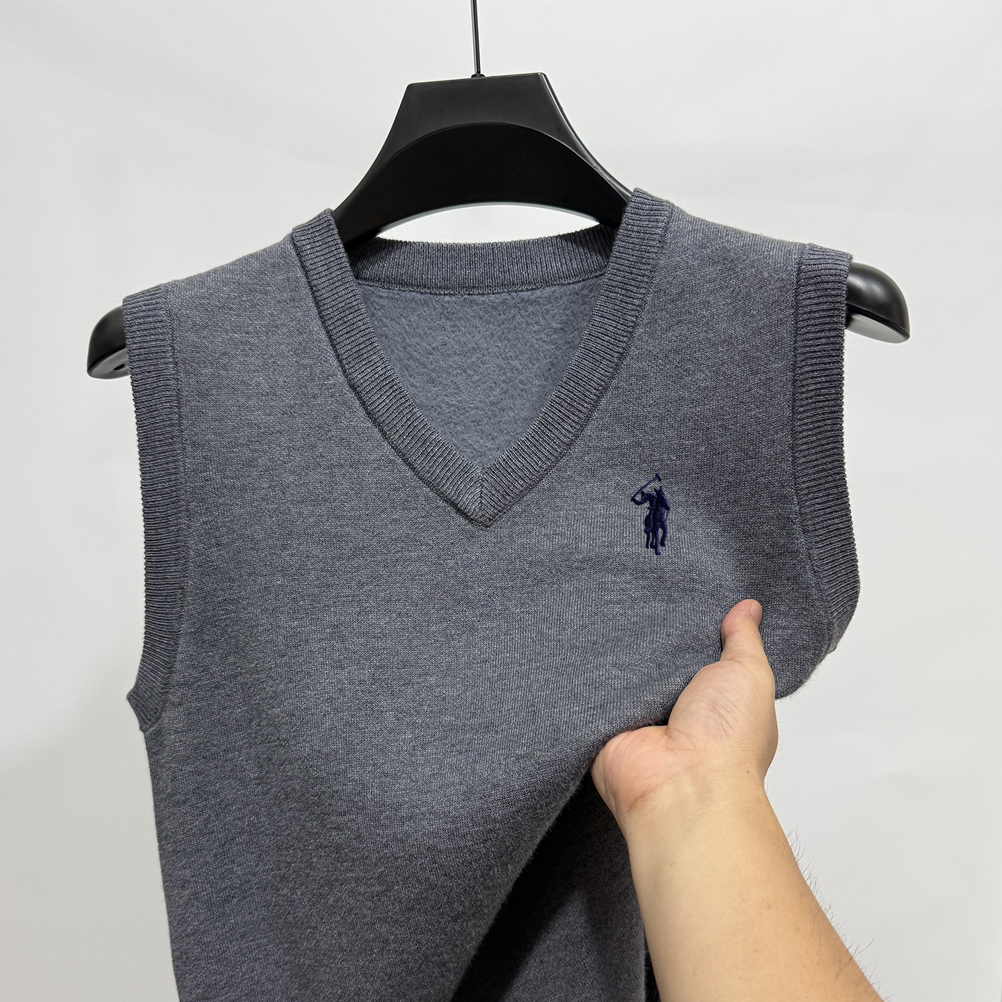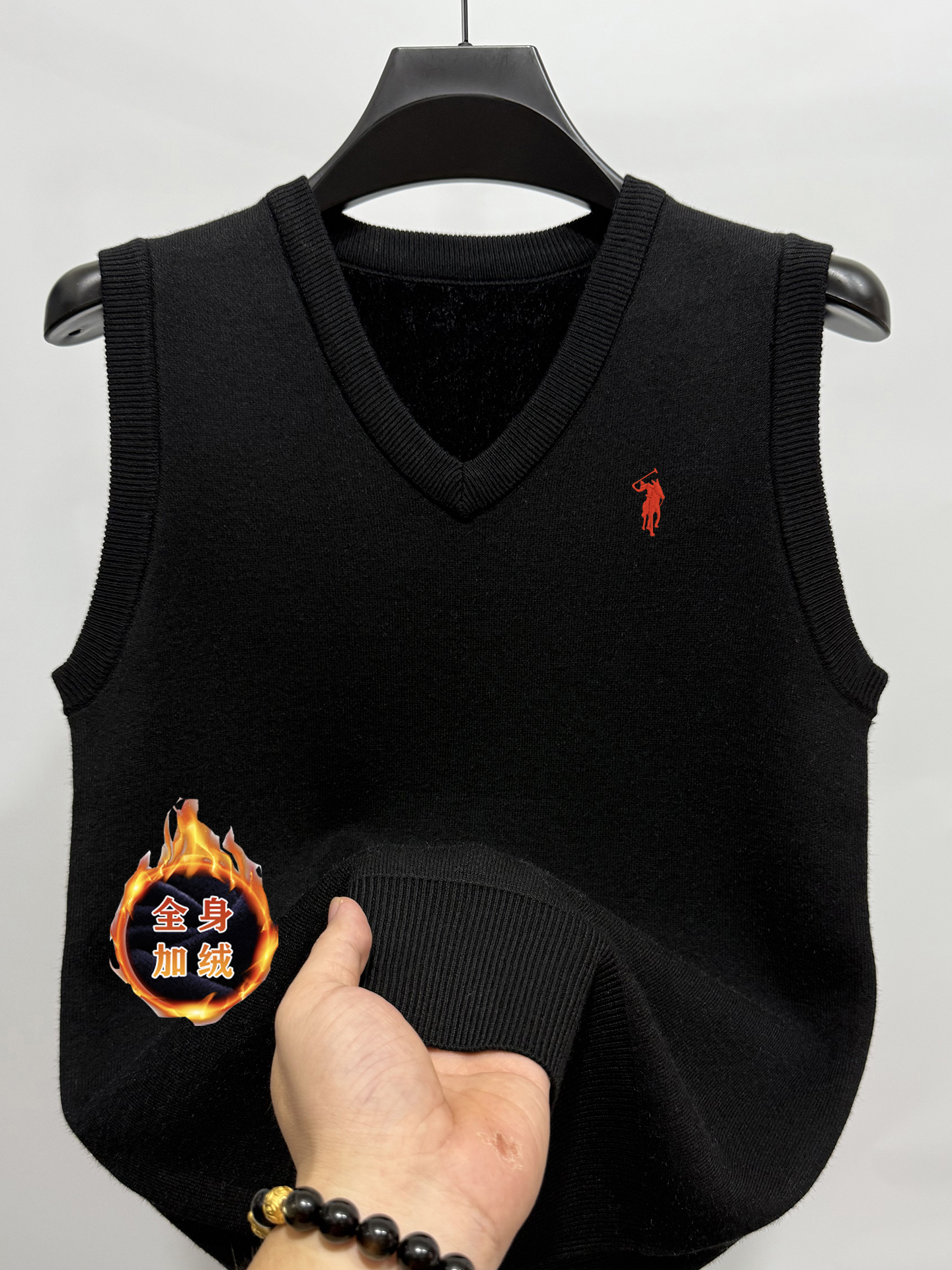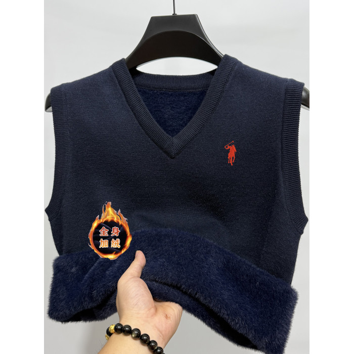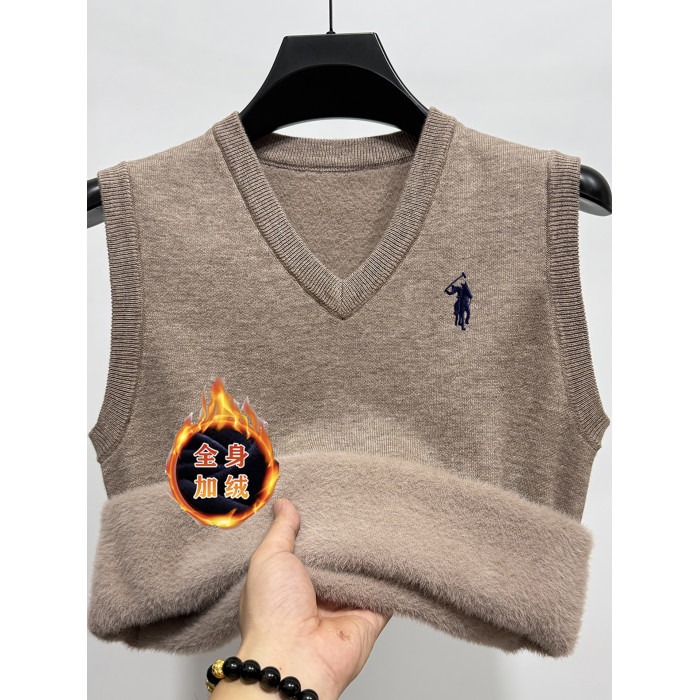 羊毛衫男加絨背心柏拉圖保羅秋冬馬甲中年V領無袖加厚羊絨針織衫