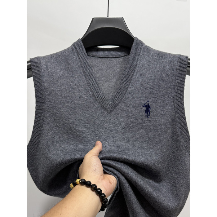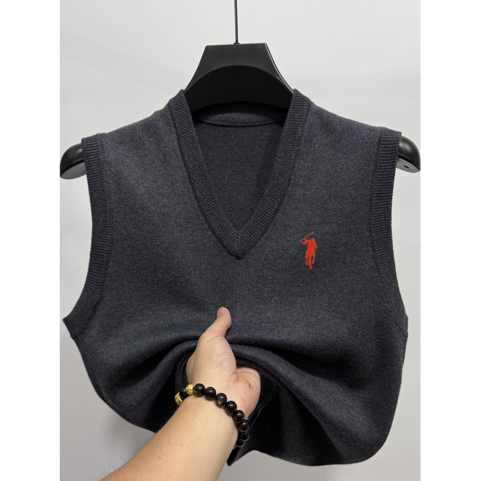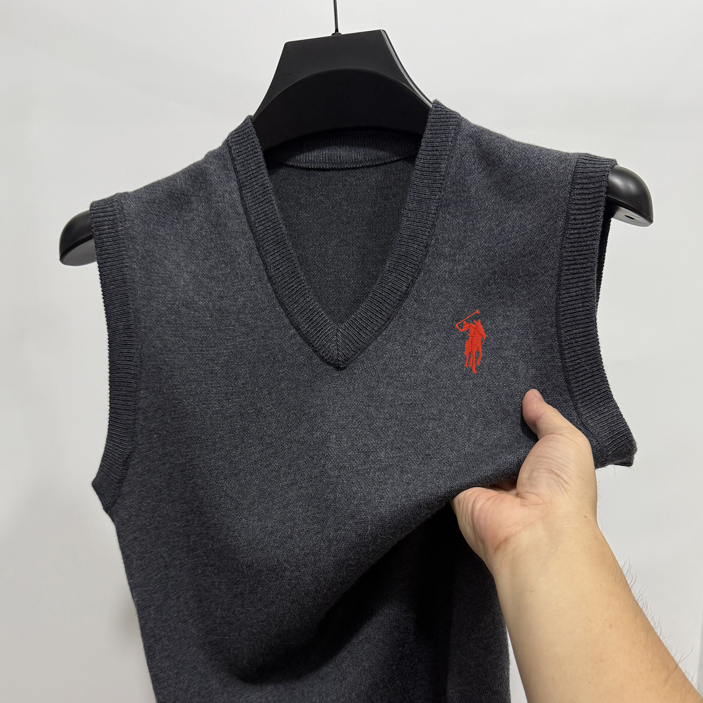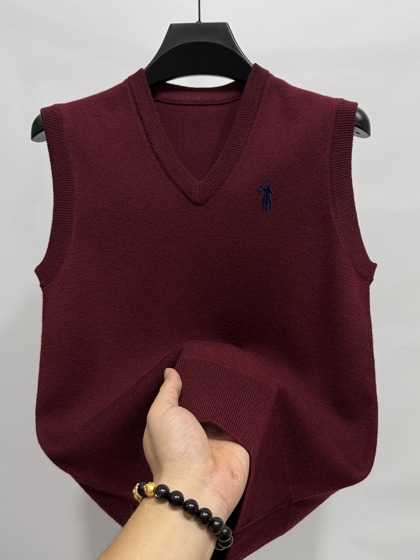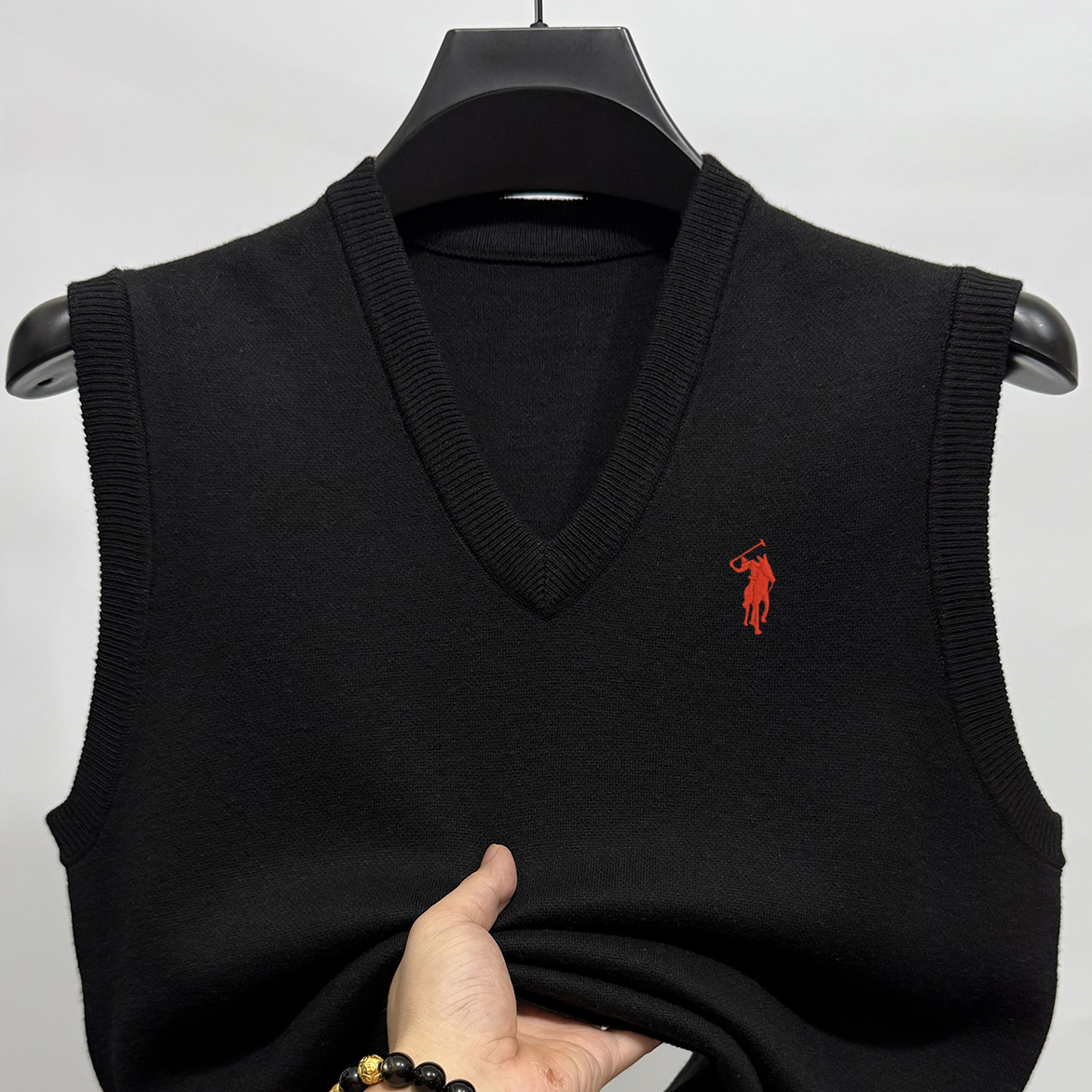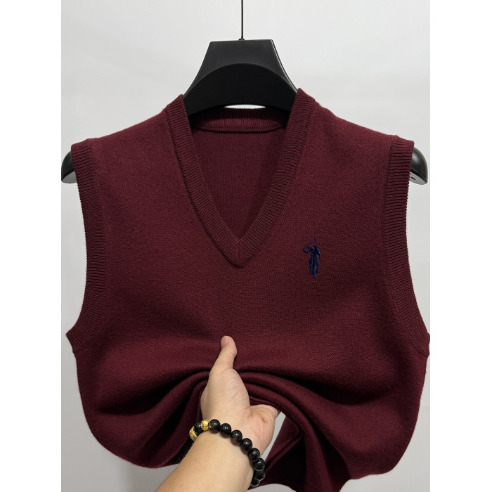 羊毛衫男加絨背心柏拉圖保羅秋冬馬甲中年V領無袖加厚羊絨針織衫