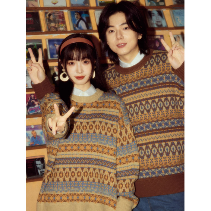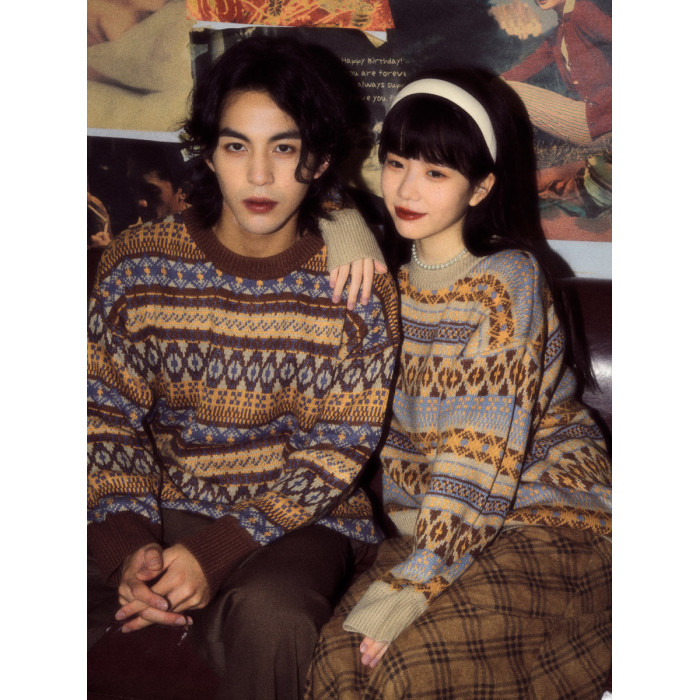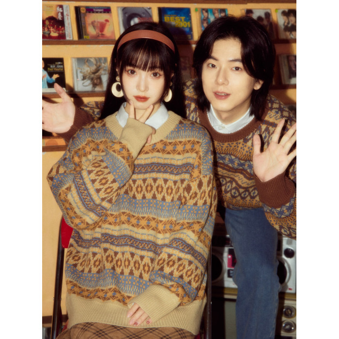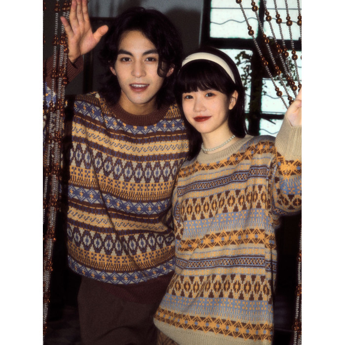 酒釀丸子ALOHA 復古港風小衆慵懶費爾島毛衣秋冬情侶裝條紋針織衫