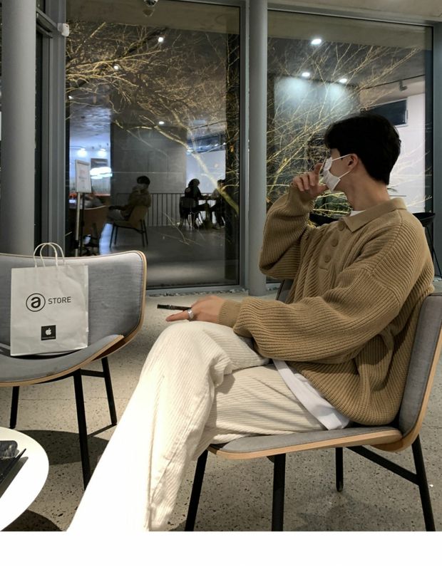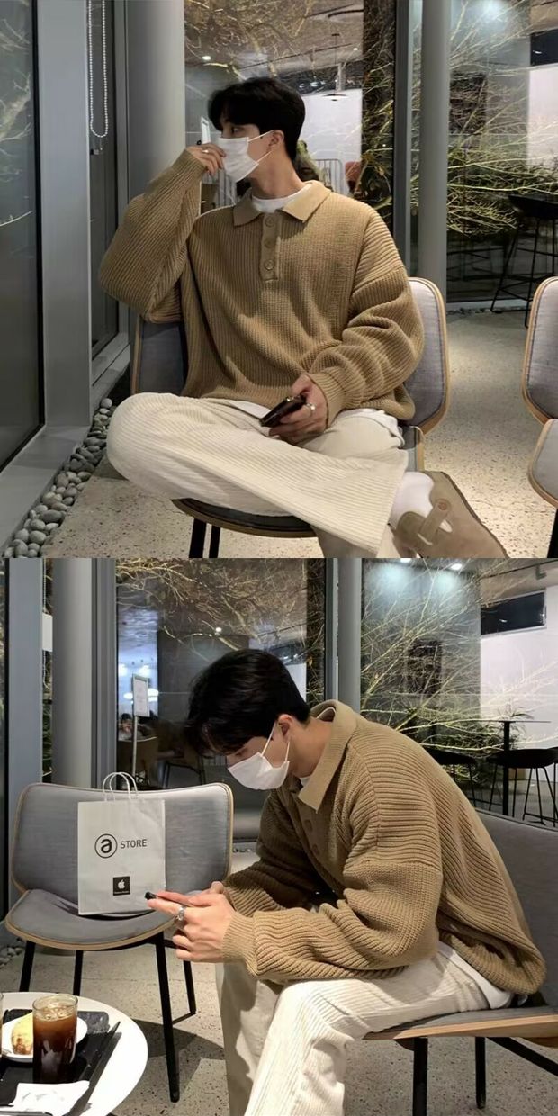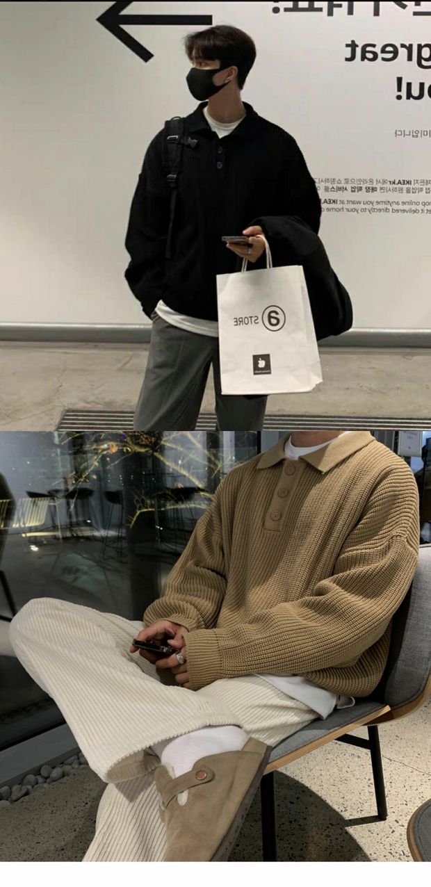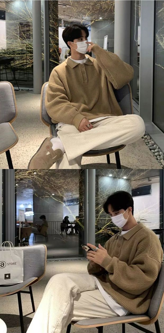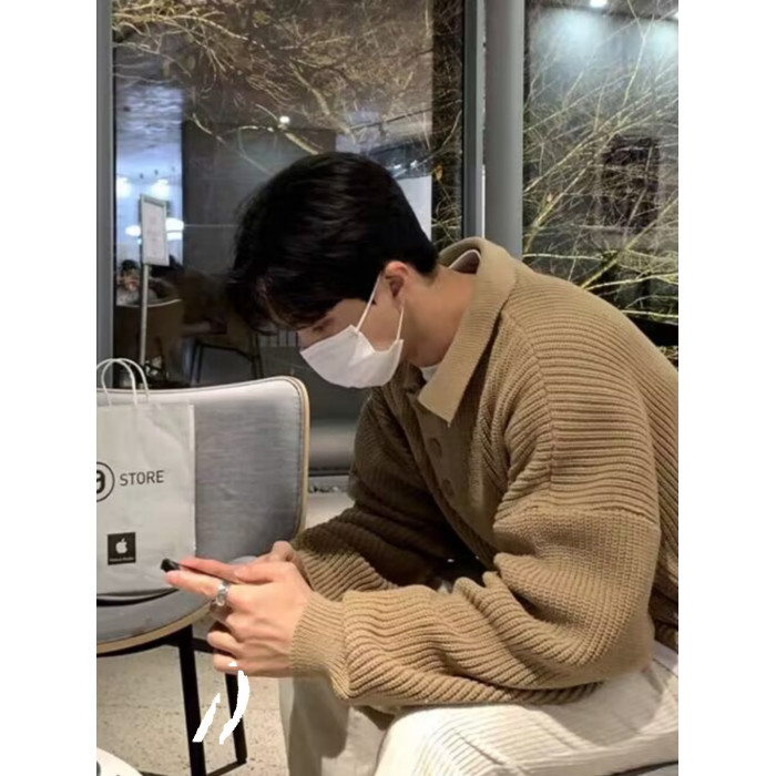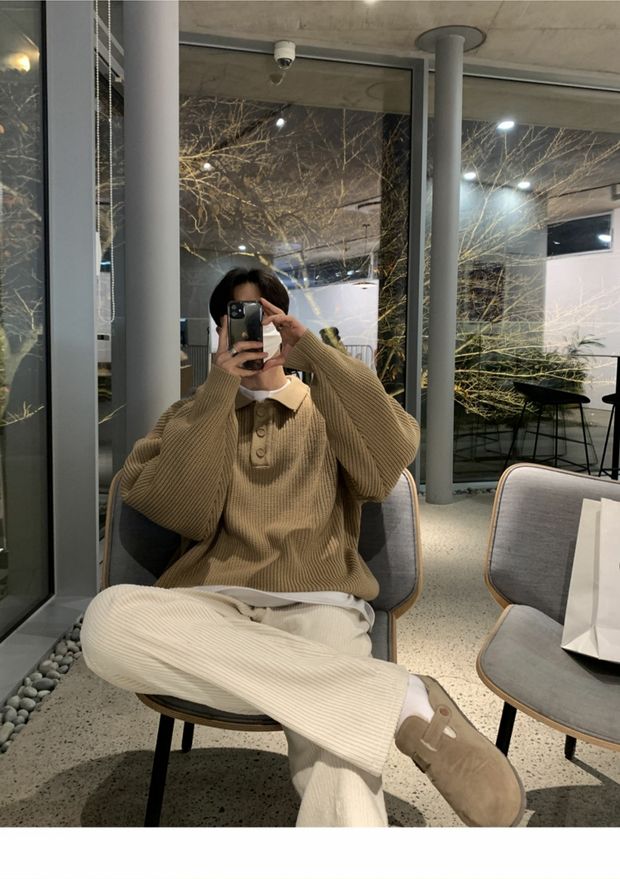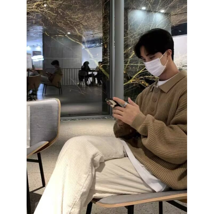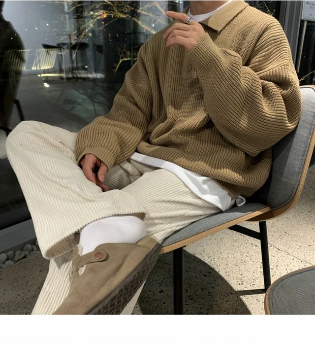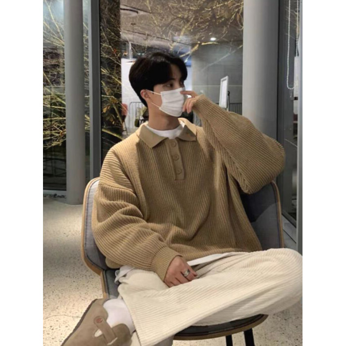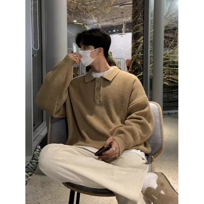 韓國ulzzang翻領毛衣男高級感寬松針織polo衫東大門潮牌線衣外套