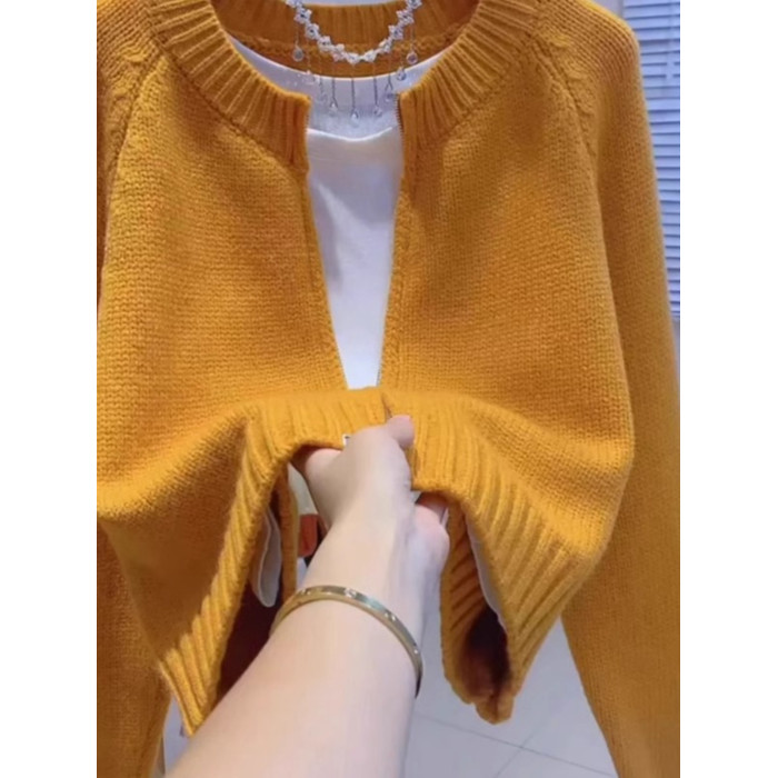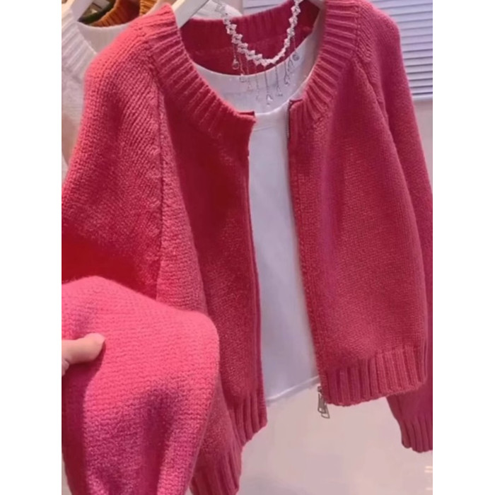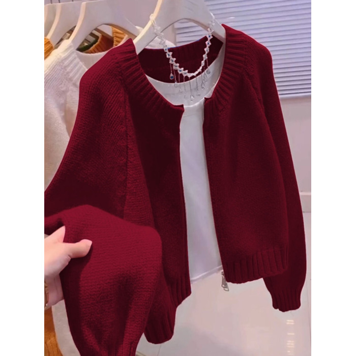 新年穿搭學院風紅色拉鍊毛衣外套女寬松外穿短款針織開衫百搭上衣