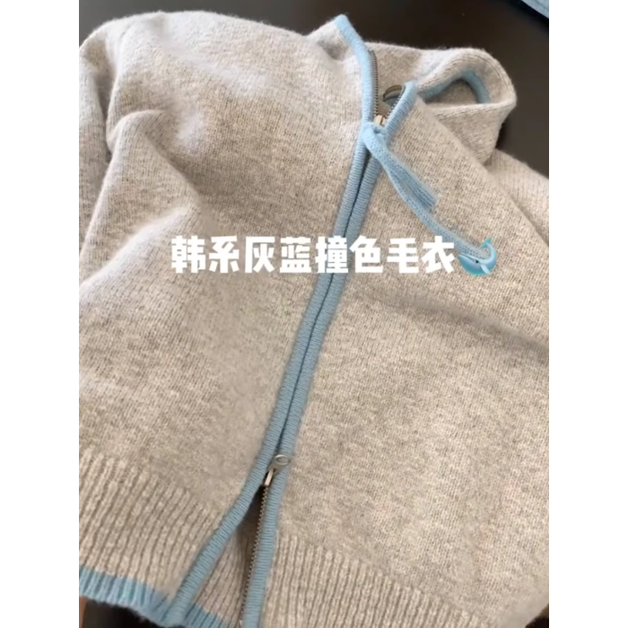 耐看又耐搭~設計感灰藍撞色拉鍊針織開衫外套女冬季寬松軟糯毛衣
