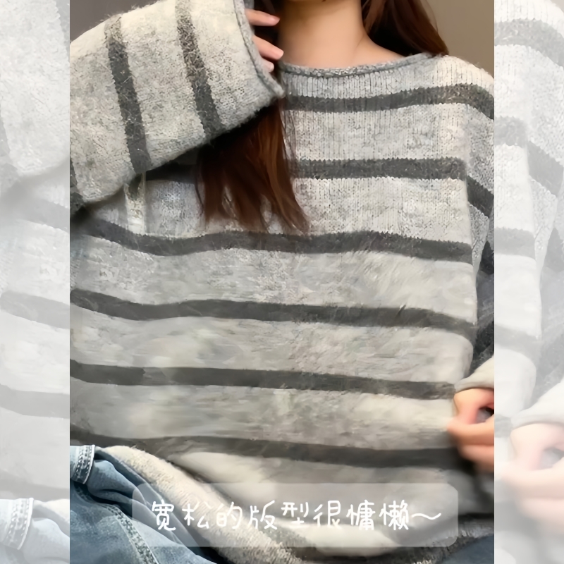 巨好看的條紋毛衣女秋冬寬松慵懶加厚早秋獨特漂亮超好看單穿上衣