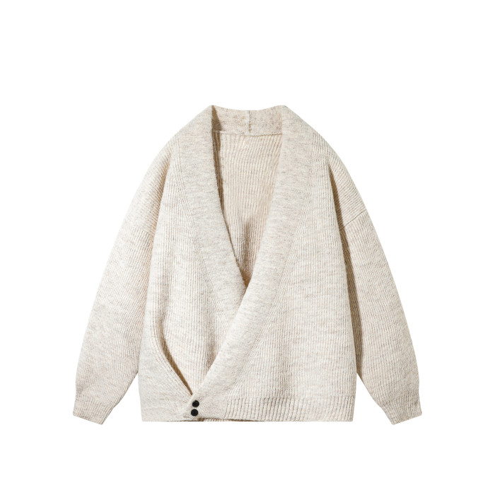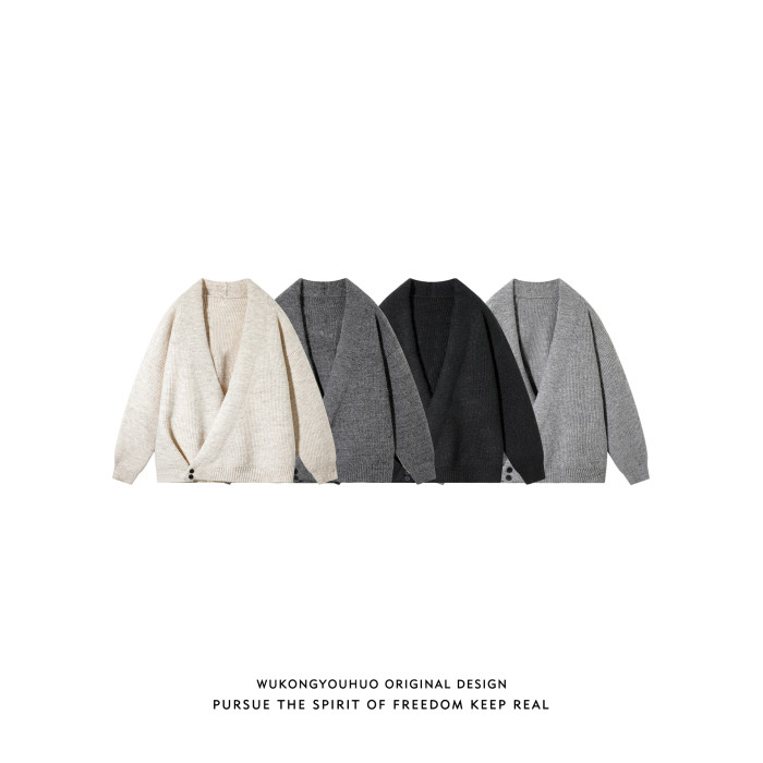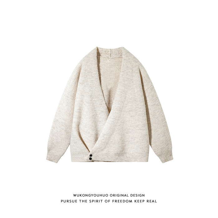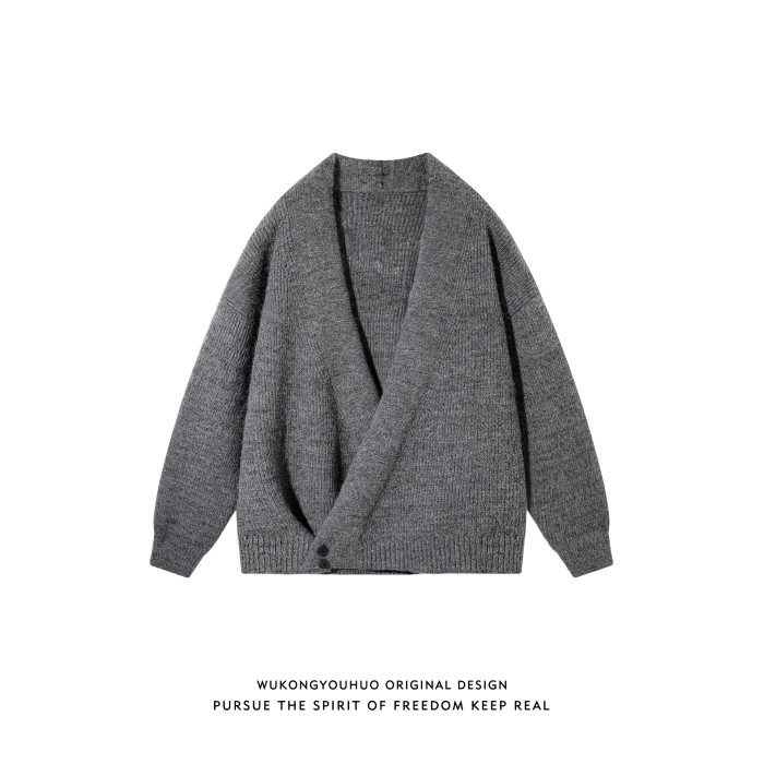 悟空有貨復古新中式不規則斜紐釦針織衫男女秋季情侶寬松毛衣外套