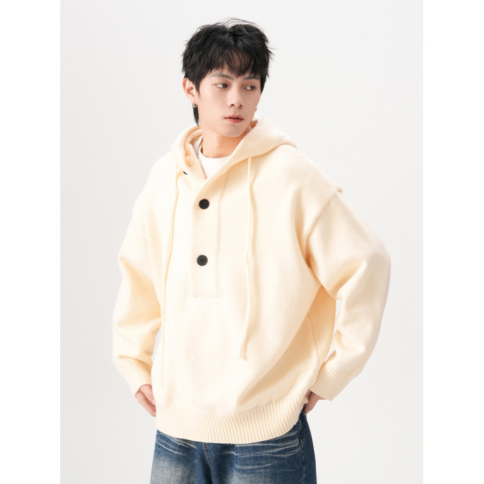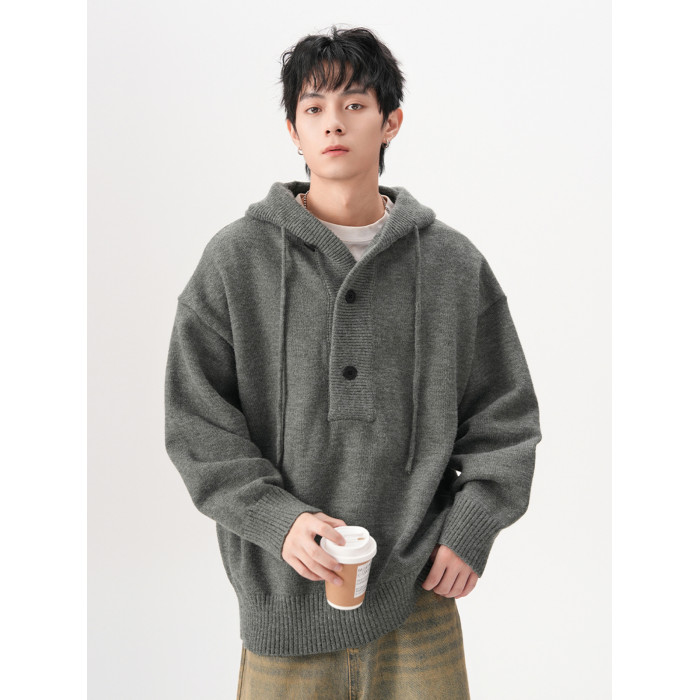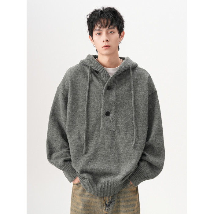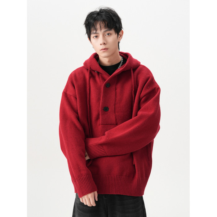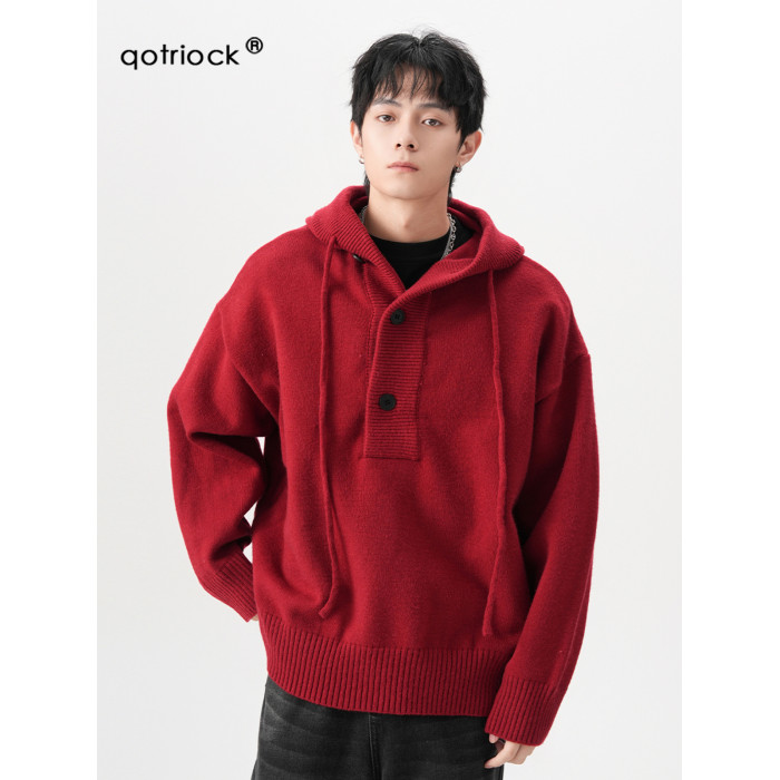 美式安可拉紅半開衫連帽毛衣男秋季潮牌慵懶風針織衫寬松情侶外套