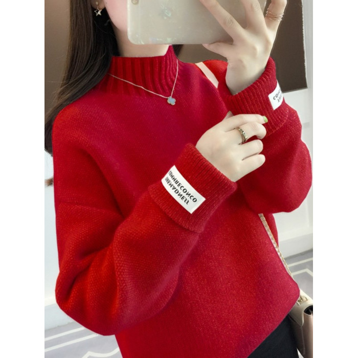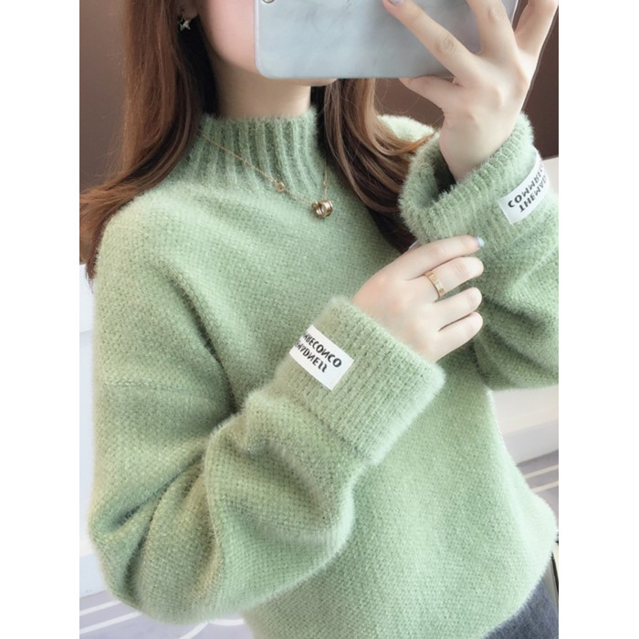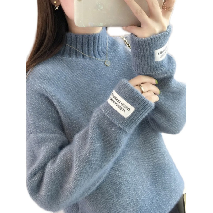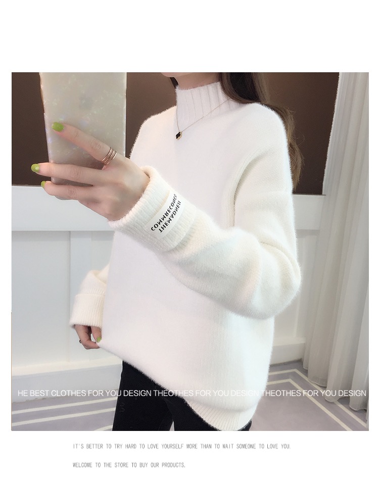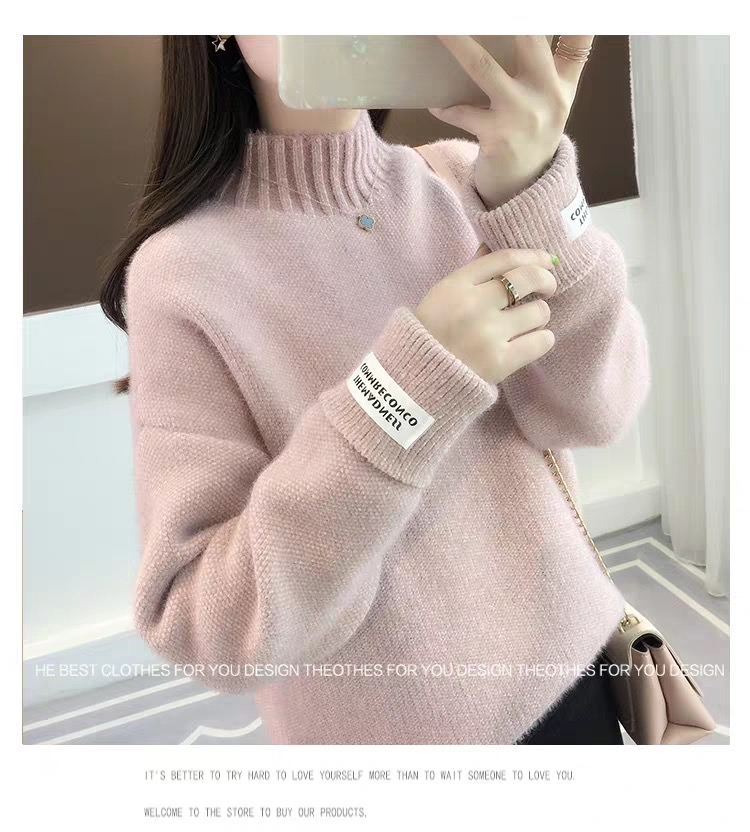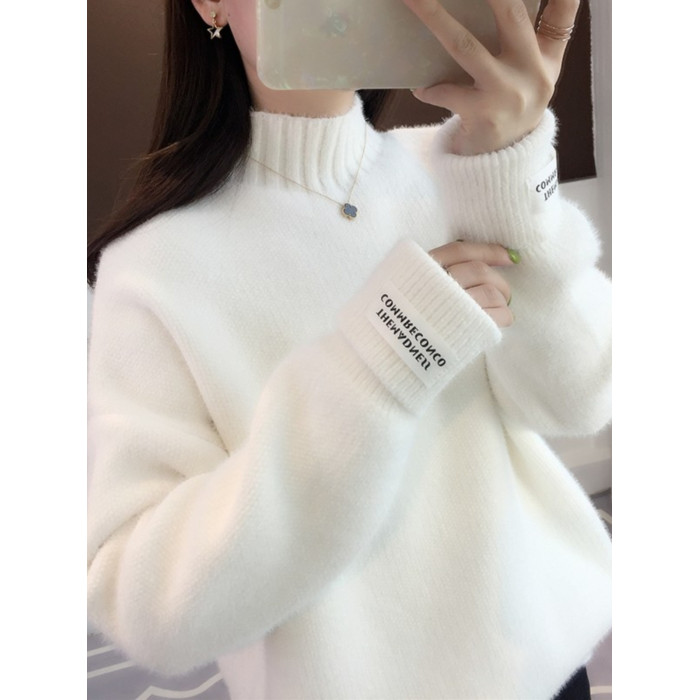 雪尼爾水貂絨加厚毛衣女套頭23秋冬新款純色寬松半高領針織打底衫