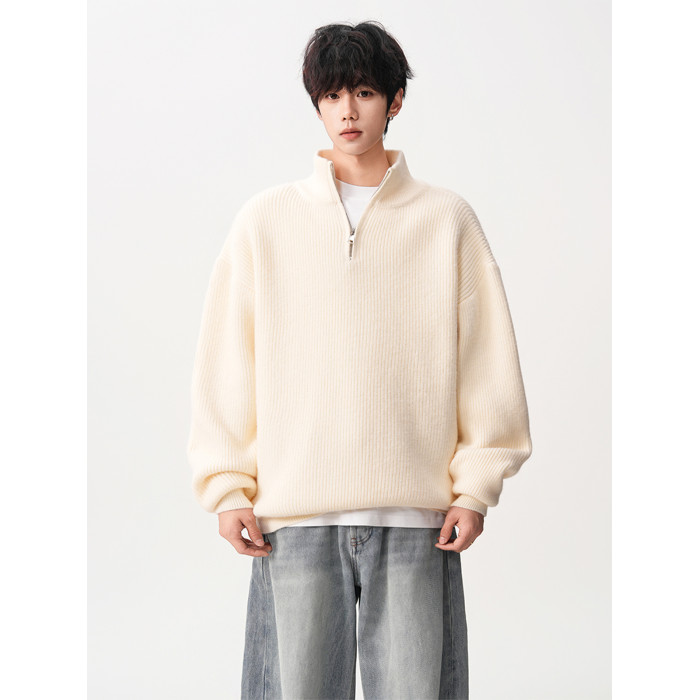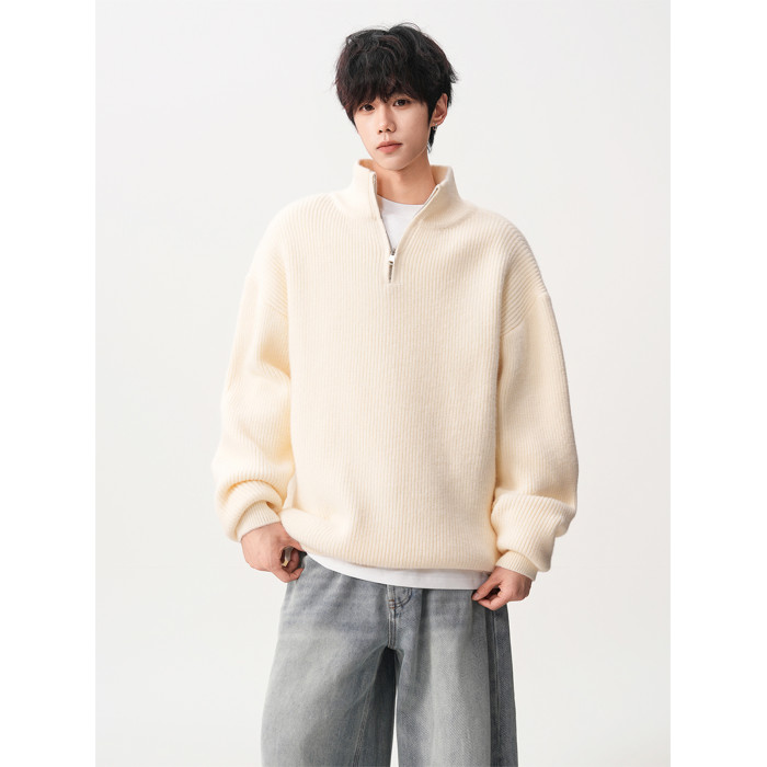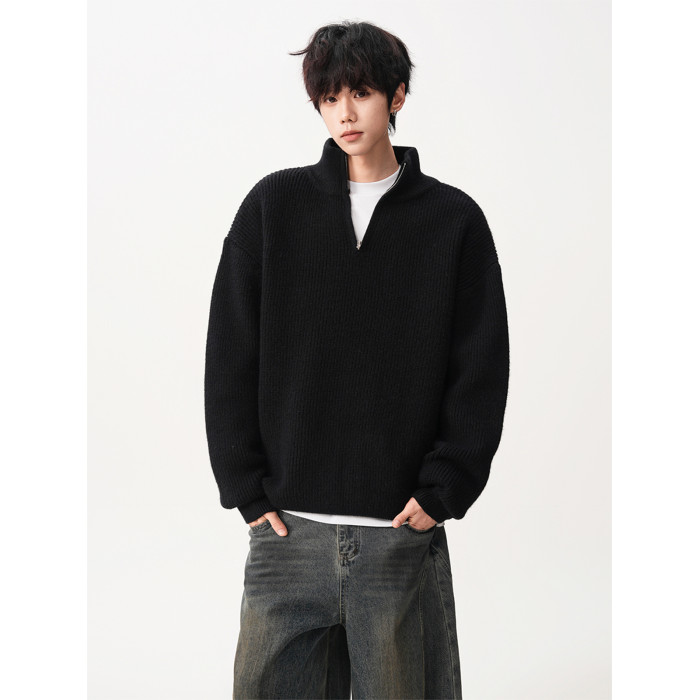 半拉鍊重磅立領毛衣男潮牌冬季寬松加厚慵懶風純色休閒百搭針織衫