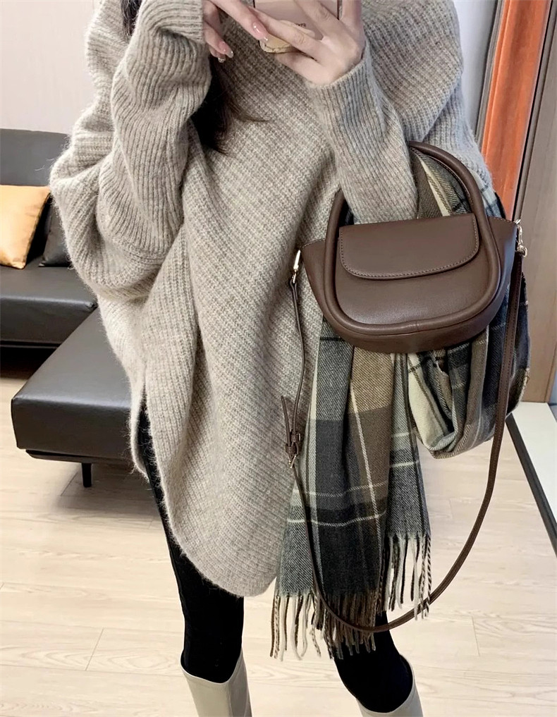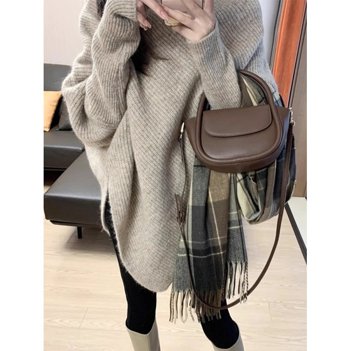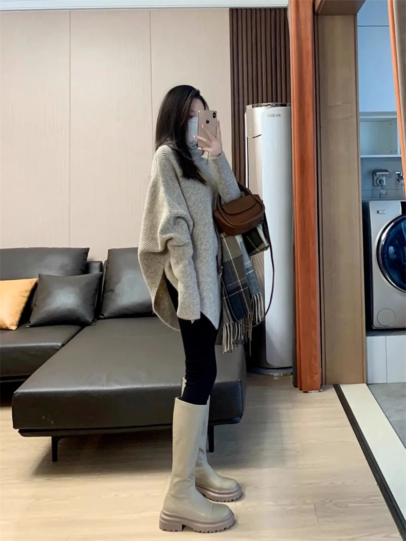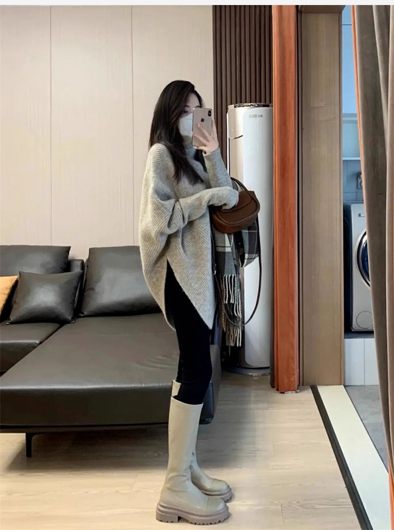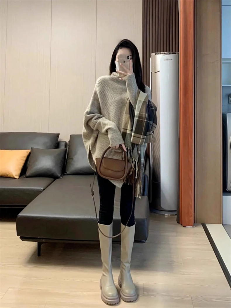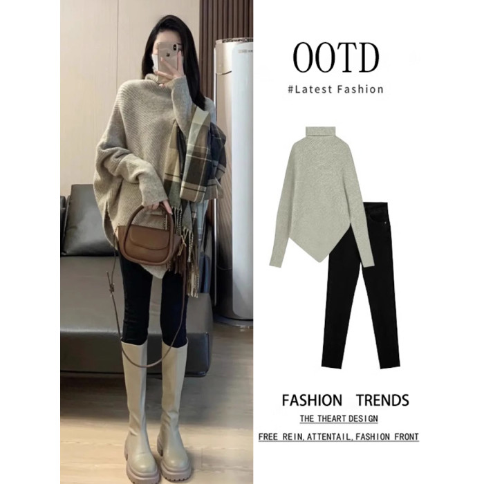 慵懶風高領毛衣女秋冬季2025新款爆款不規則針織衫上衣設計感小衆