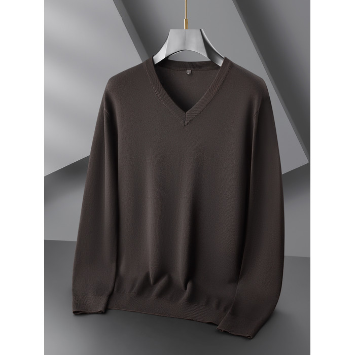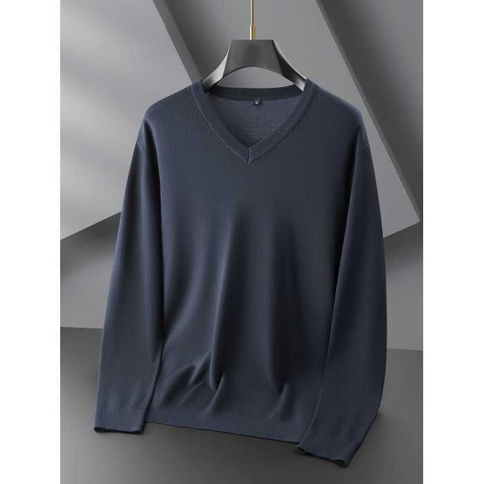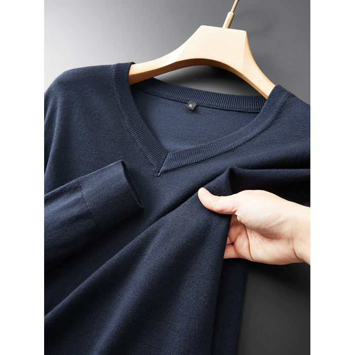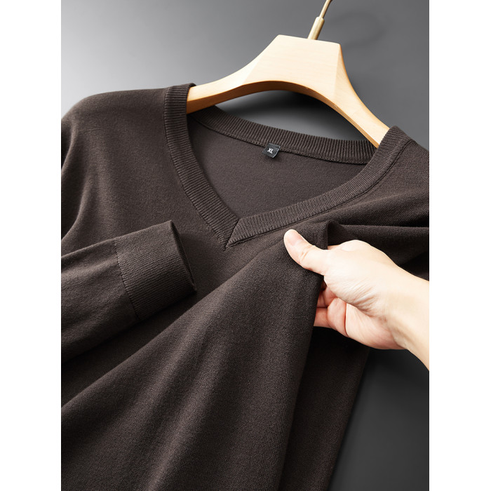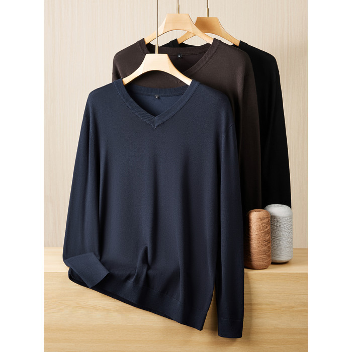 純色V領針織衫男秋冬季大碼毛衣胖子加肥加大打底衫寬松休閒內搭