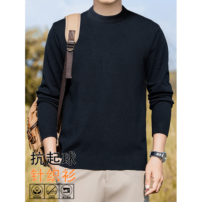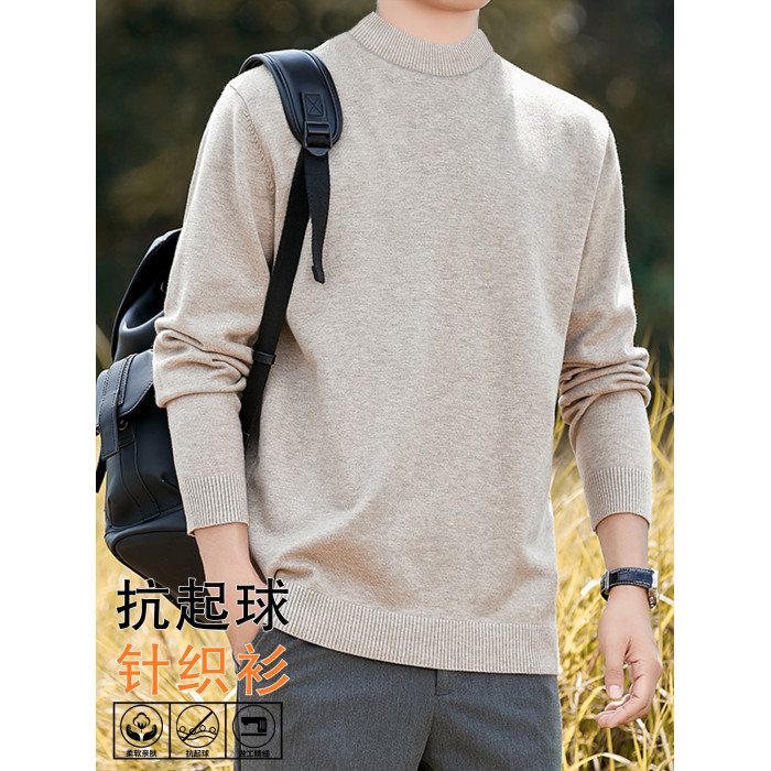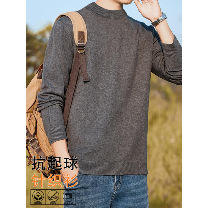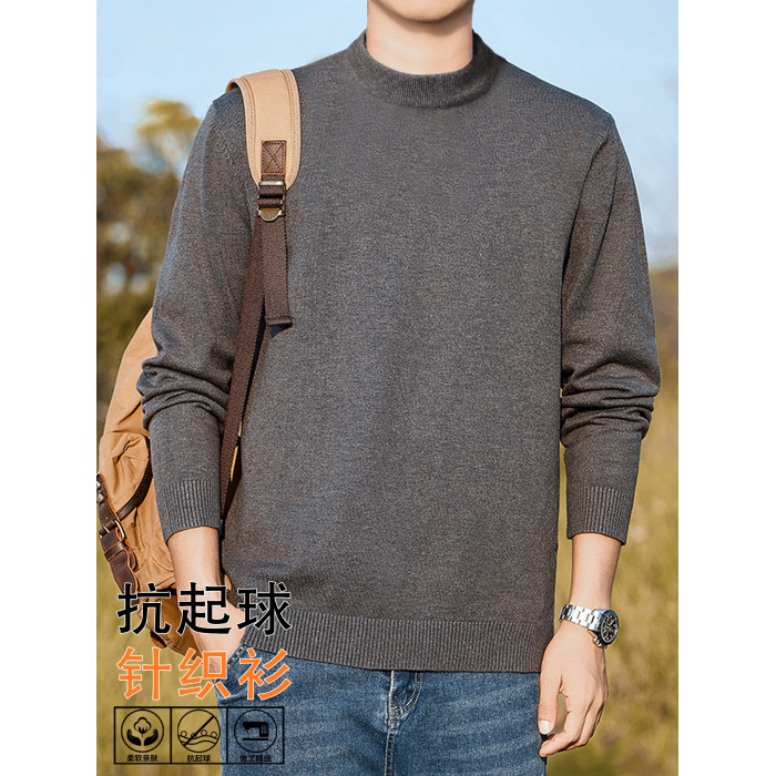 中青年男士保暖半高領毛衣秋冬季純色百搭日常打底休閒舒適針織衫