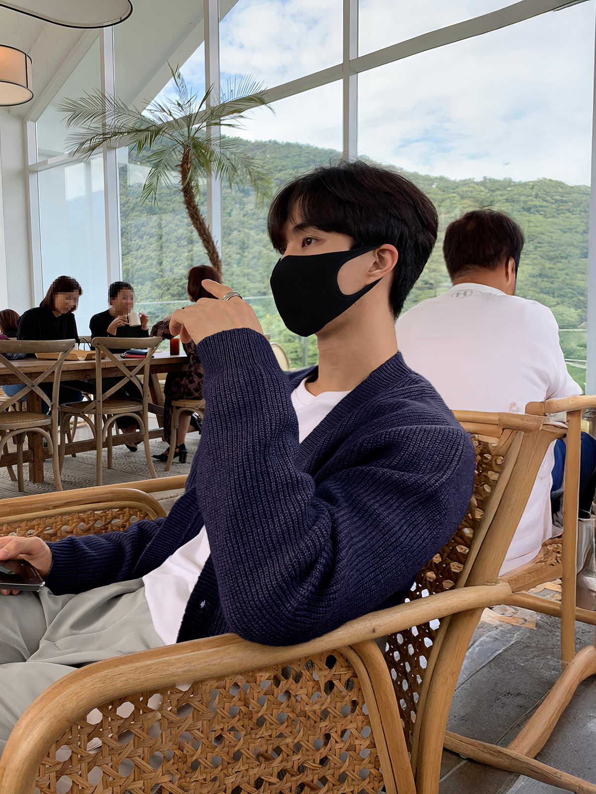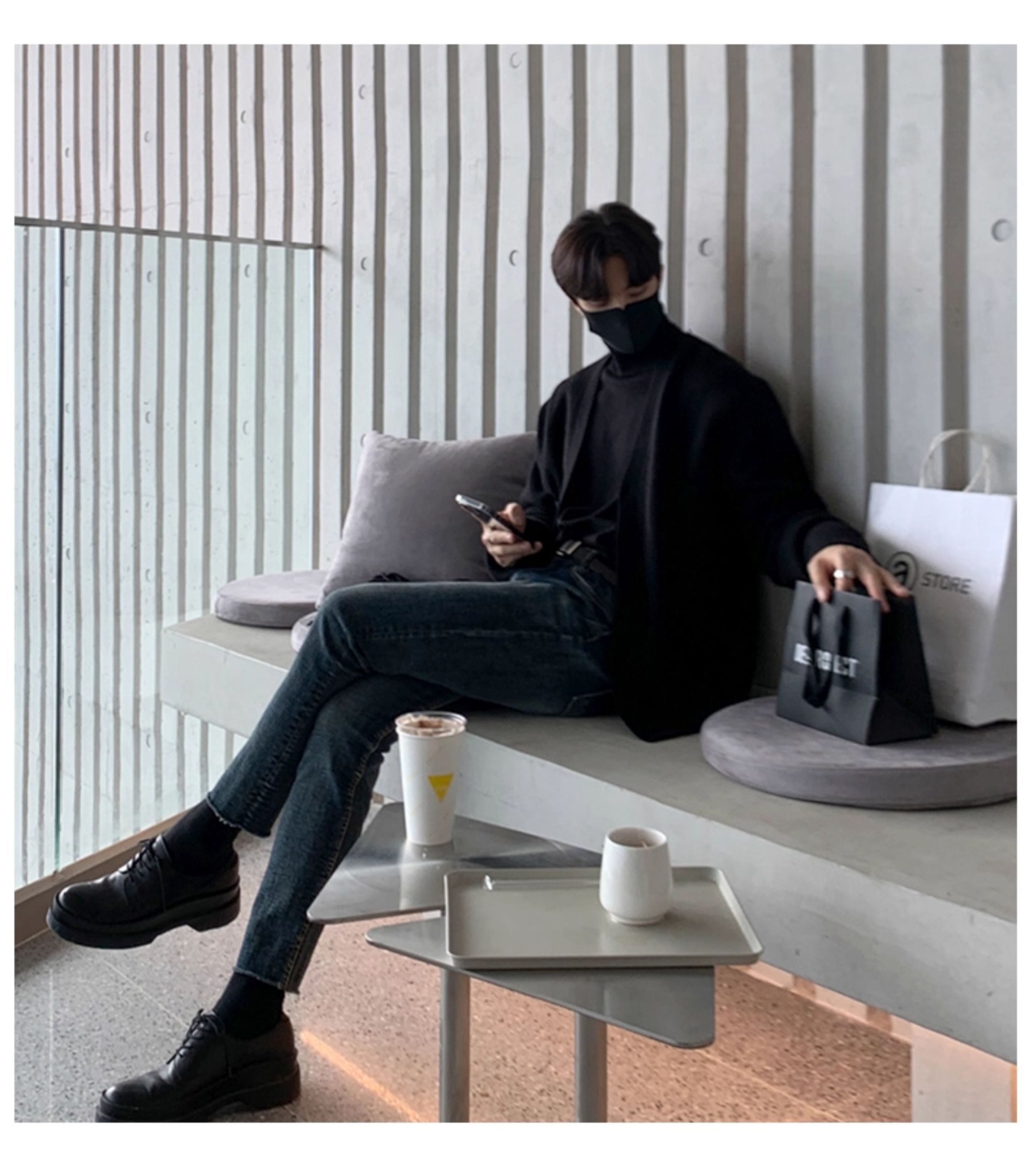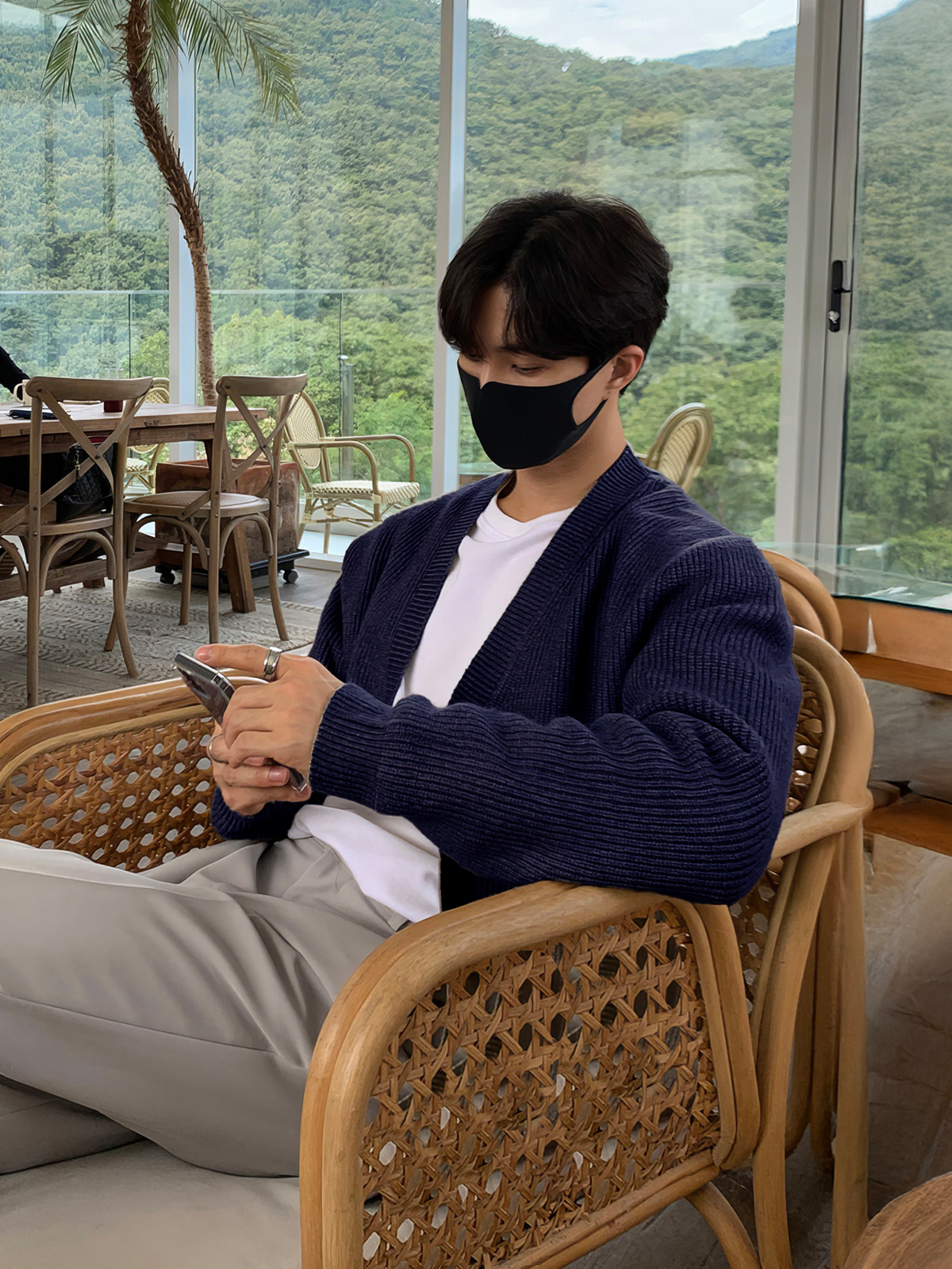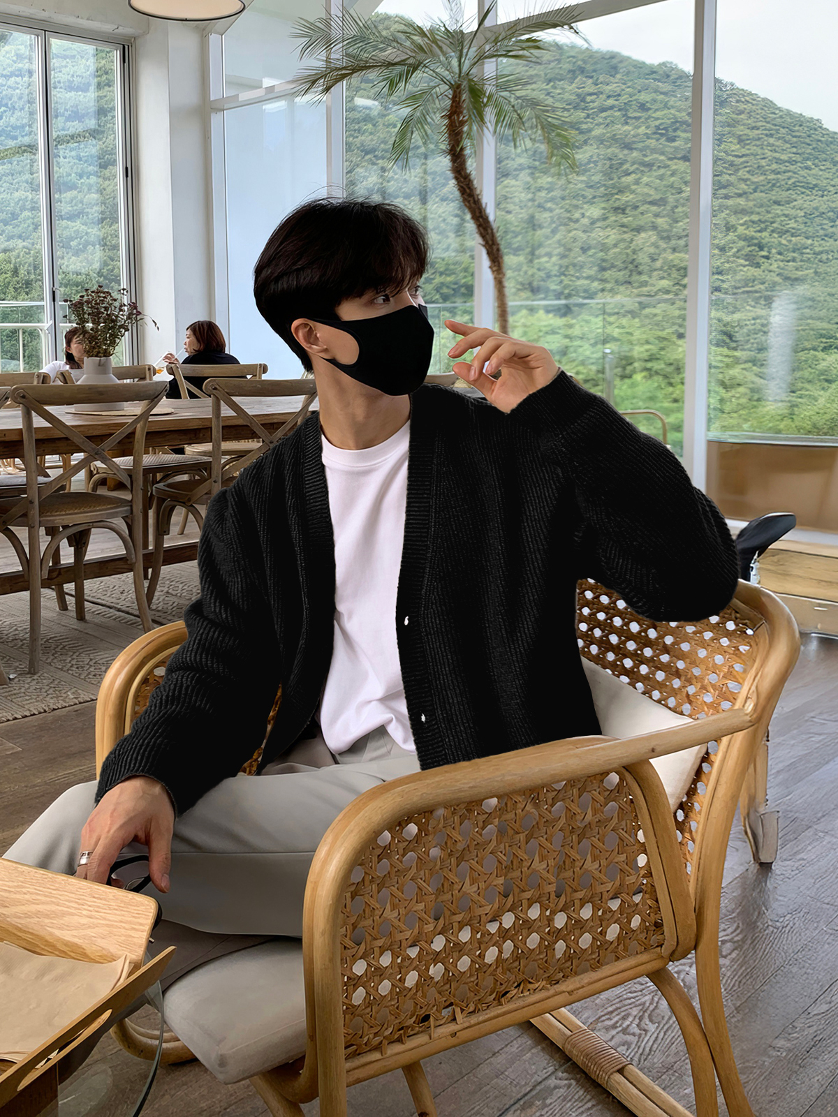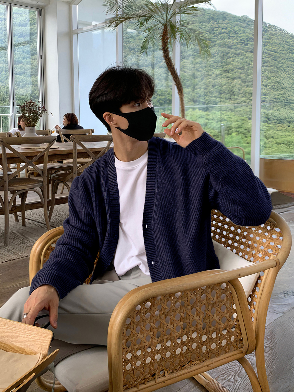 卡其色v領針織開衫男士秋冬高級慵懶風休閒寬松百搭純色毛衣外套
