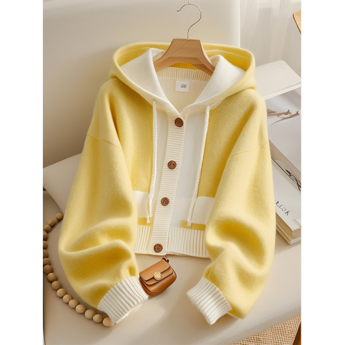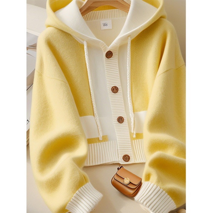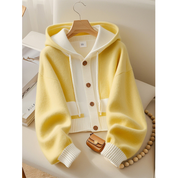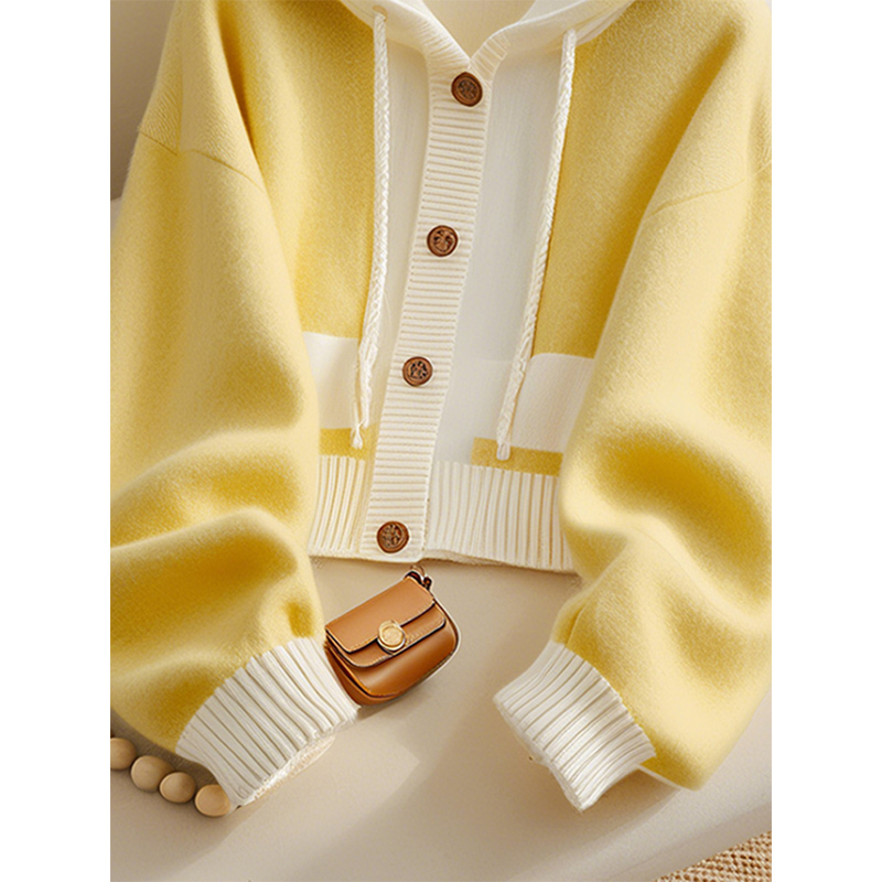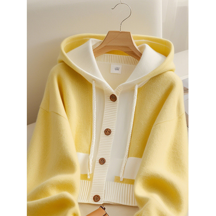 早秋穿搭寬松慵懶高級感上衣女新款獨特絕美超好看黃色連帽毛衣女